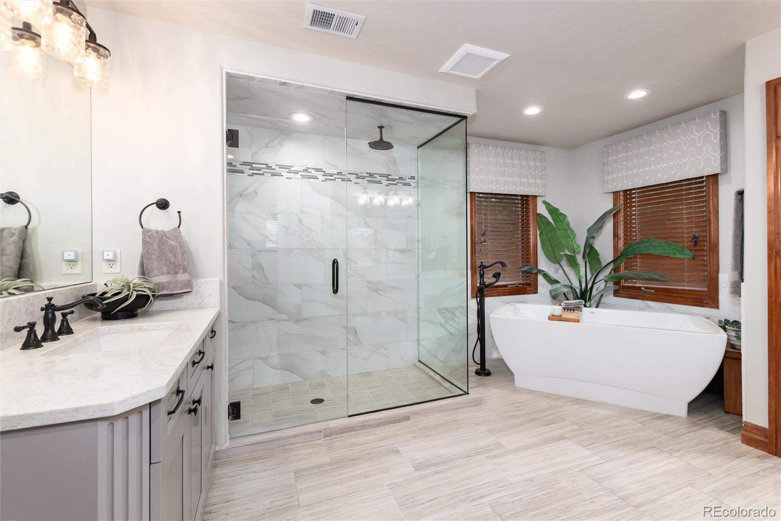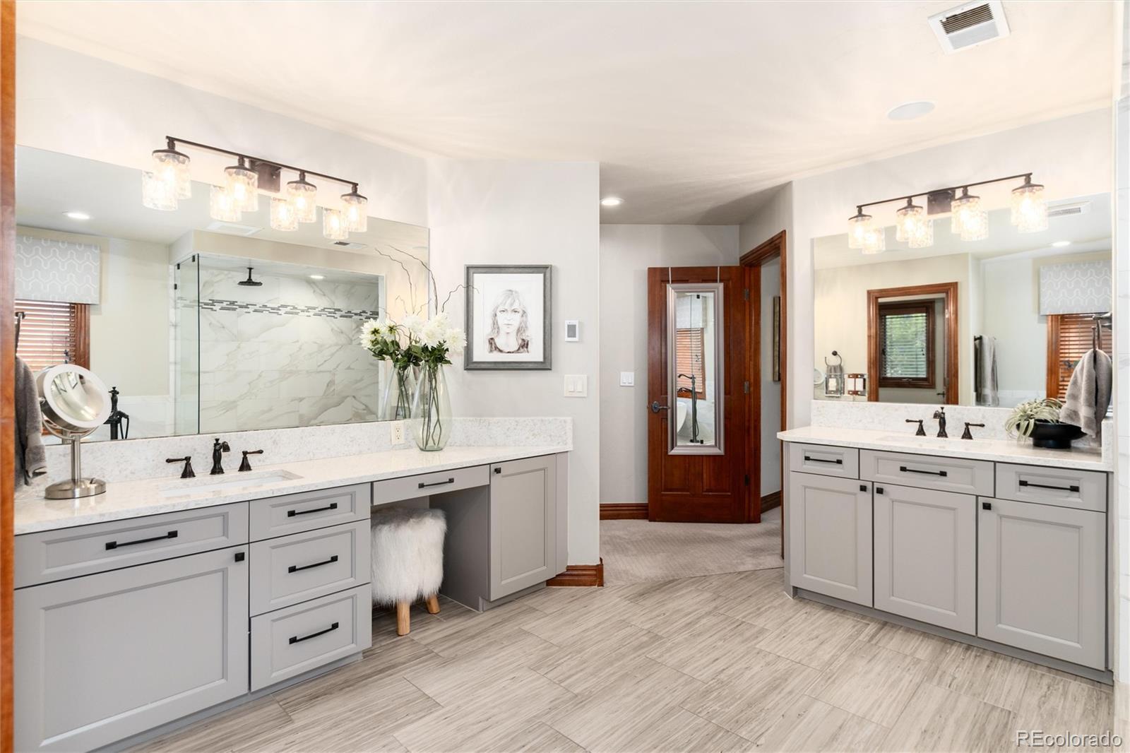HOMEOWNER MADE RECENT UPDATES: REPLACED CARPET IN BASEMENT, ADDED LPV IN GYM AND BASEMENT BEDROOM. ALSO, PAINTED UPSTAIRS SECONDARY BEDROOMS AND CHANGED HARDWARE IN SECONDARY BATHROOMS. This Exquisite and Updated Custom Home in The Estates at Foxhaven. Welcome to this gated and quiet community that only has 28 homes on TWO Cul-de-Sacs. Attention to Detail, Seller has spent almost $500k on Remodeling, including a $130k Hail-Resistant Tile Roof (w/Warranty), Completley New Kitchen w/Upgraded Kitchen-Aid Appliances w/quartz countertops, New Cabinetry embraces the custom tile. New Fixtures, Paint, Refinished Wood Flooring and the Primary Bathroom SPA! Dual head large shower or Large Soaking Tub, Double Vaniity, Heated Flooring and His/Her Closets. If you enjoy solitude, you’ll Love the meticulous yard. Invisible Fence for your favorite pet, Child PlaySet, Newer Hot Tub, New Awning and Newer Speakers will give you the feeling of rest and enjoyment. Oversized 3 Car Garage with built-in cabinets, new garage doors and openers, AND golf cart will be able to fit. Many neighbors belong to Columbine Country Club, ride your cart to the club. In addition a few houses away to the Normandy Gate so that you could get a very reasonable membership to swim and play tennis. Next to Normandy is an Equestrian Facility if you enjoy the equestrian lifestyle. 5 Minutes to Downtown Littleton and 20 minutes to Downtown. Don’t miss out on this opportunity, you won’t be disappointed. HOMEOWNER MADE RECENT UPDATES: REPLACED CARPET IN BASEMENT, ADDED LPV IN GYM AND BASEMENT BATHROOM. ALSO, PAINTED UPSTAIRS SECONDARY BEDROOMS AND CHANGED HARDWARE IN SECONDARY BATHROOMS.