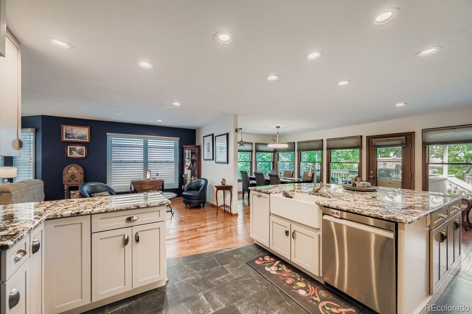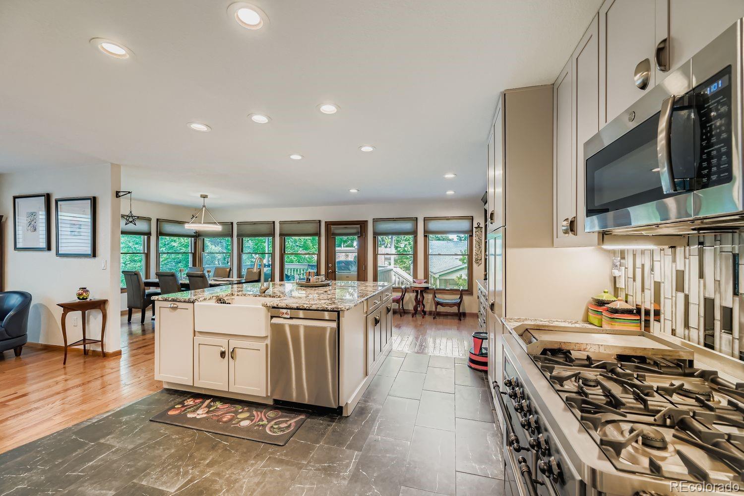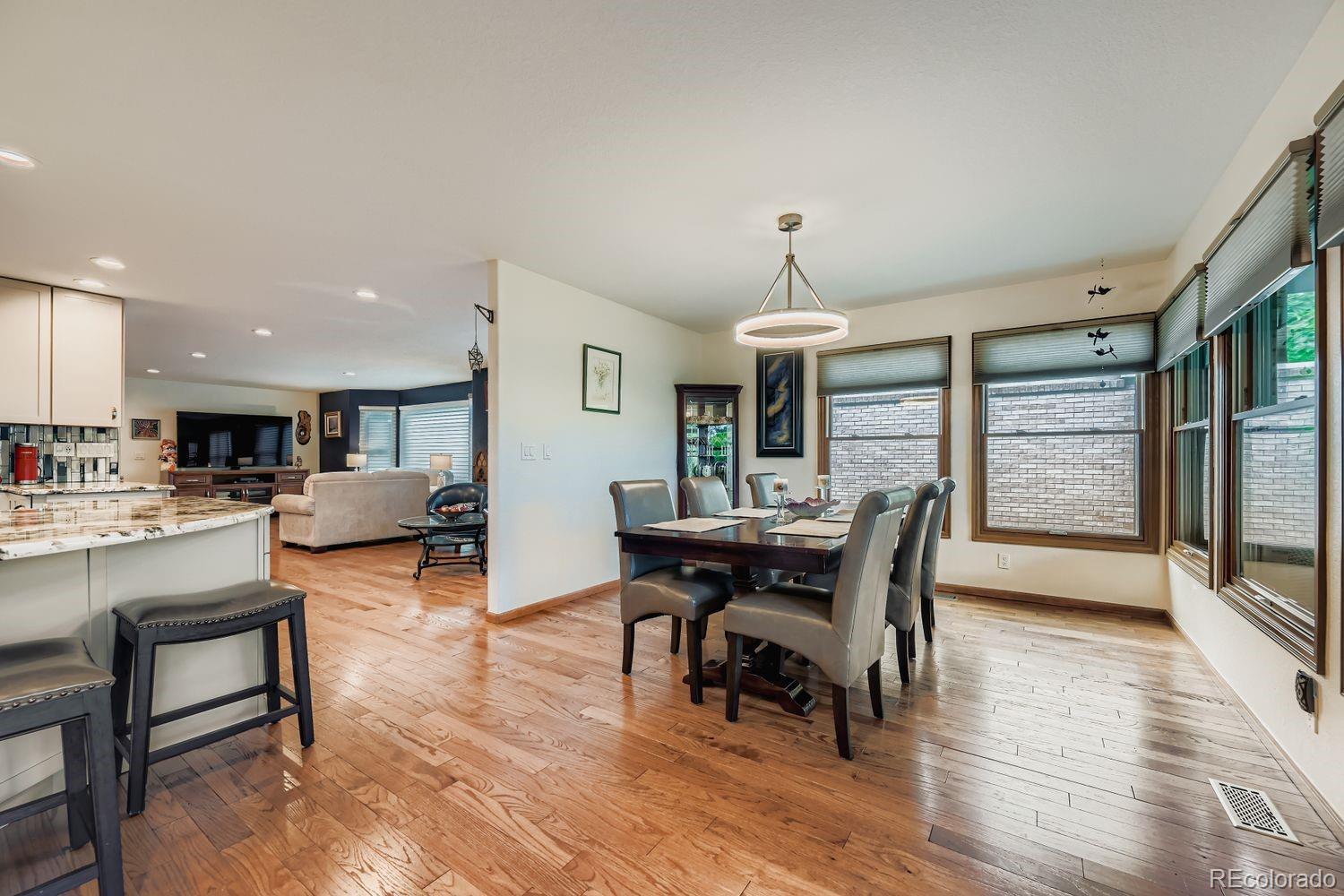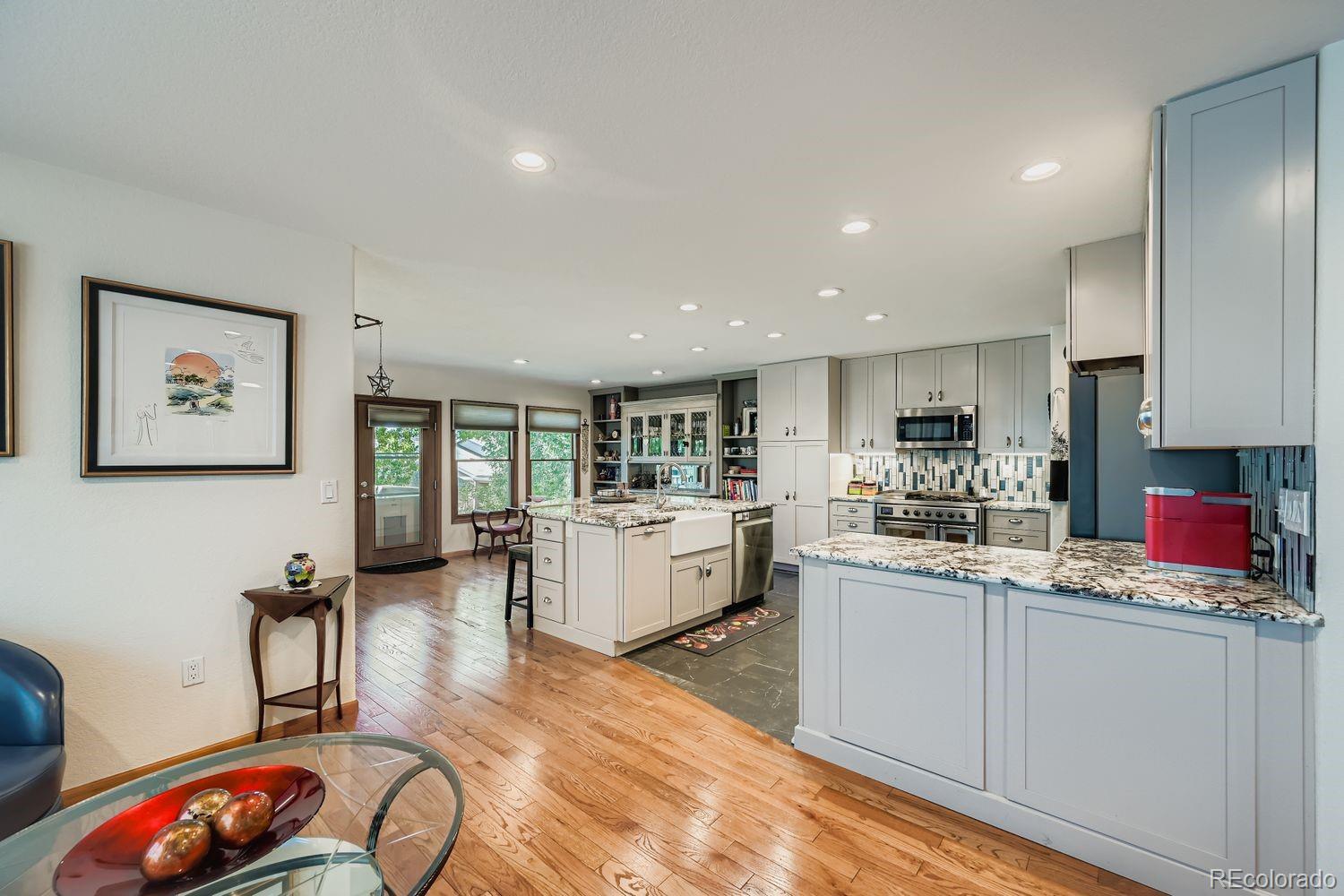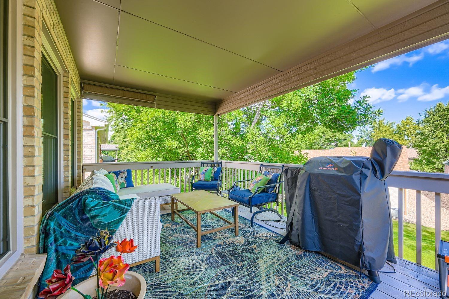 Escape to a meticulously crafted patio home where luxurious design and natural tranquility converge. This isn't just a house; it's a statement of refined living, where every detail has been thoughtfully curated for a lifestyle of comfort and elegance. Step inside and be greeted by gleaming hardwood floors that lead you to a stunning, updated gourmet kitchen. The heart of the home, it features high-end appliances, including a breathtaking 40-inch dual-fuel, 6-burner Ilve range imported directly from Italy. Culinary dreams come to life with beautiful granite countertops, a spacious island for casual dining, a custom-built hutch for extra storage, and a large pantry to keep everything organized. The commitment to quality extends throughout the home. Every bathroom has been beautifully updated with new tubs, shower pans, tile, light fixtures, and towel bars, while the main bath offers the added luxury of a heated floor and extra deep soaker tub. The primary bedroom closets have been professionally designed by California Closets to maximize space and organization. Enjoy natural light and efficiency with new Pella windows and Hunter Douglas blinds and shades and new recessed lighting throughout the house. The finished, walk-out basement provides a spacious second family room with a gas fireplace and a second patio that opens directly onto a serene greenbelt. For warmer months, the large, covered deck offers a perfect setting for summer relaxation and outdoor dining, providing a space that will leave you in awe daily. Recent upgrades like a new driveway, garage floor, gutters, and fresh exterior paint in 2024 ensure a move-in-ready experience. New energy-efficient windows were installed in 2020. The furnace with a whole-house humidifier and AC was installed in 2015. This home effortlessly blends a beautiful lifestyle with casual comfort, all perfectly situated for peaceful walks in the nearby park. The proximity to the RTD transit hub is a plus. It's more than a home.