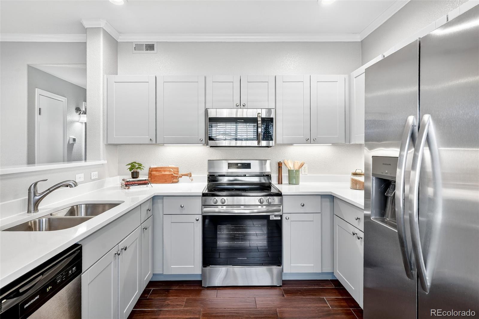 Step into this newly and beautifully updated condo in vibrant Aurora, and prepare to be impressed! This is a truly turn-key opportunity that seamlessly blends fresh design with peace of mind. The home shines with an all-new kitchen, featuring sleek stainless steel appliances, brilliant quartz countertops, new cabinetry, and modern overhead and under-cabinet lighting. The elegant updates continue throughout, with fresh designer paint and revitalized bathrooms boasting brand new vanities, lighting, and matching quartz. Large bedrooms feature ample natural light and spacious closets. Worry less about the big stuff: the home also features newer HVAC systems and a water heater. Your new gated community is a private retreat offering fantastic amenities: a clubhouse, fitness center, and a gated pool. Living in Aurora means enjoying the best of Colorado—a dynamic city with easy access to both urban conveniences and outdoor adventures. With public transportation nearby, commuting is a breeze. Easy access to Lowry, Cherry Creek, and the Denver Tech Center. There is ample shopping nearby for your daily needs. This is more than just a home—it’s an elevated, low-maintenance lifestyle waiting for you! Don't miss this opportunity in a prime location