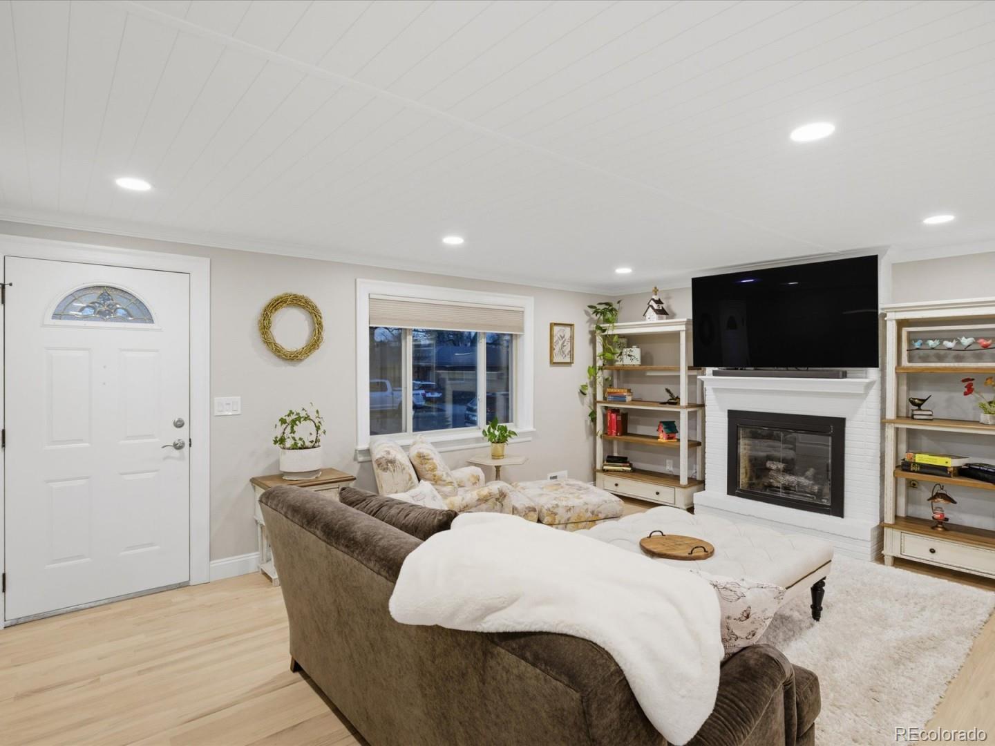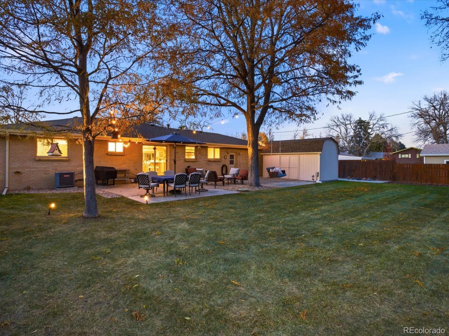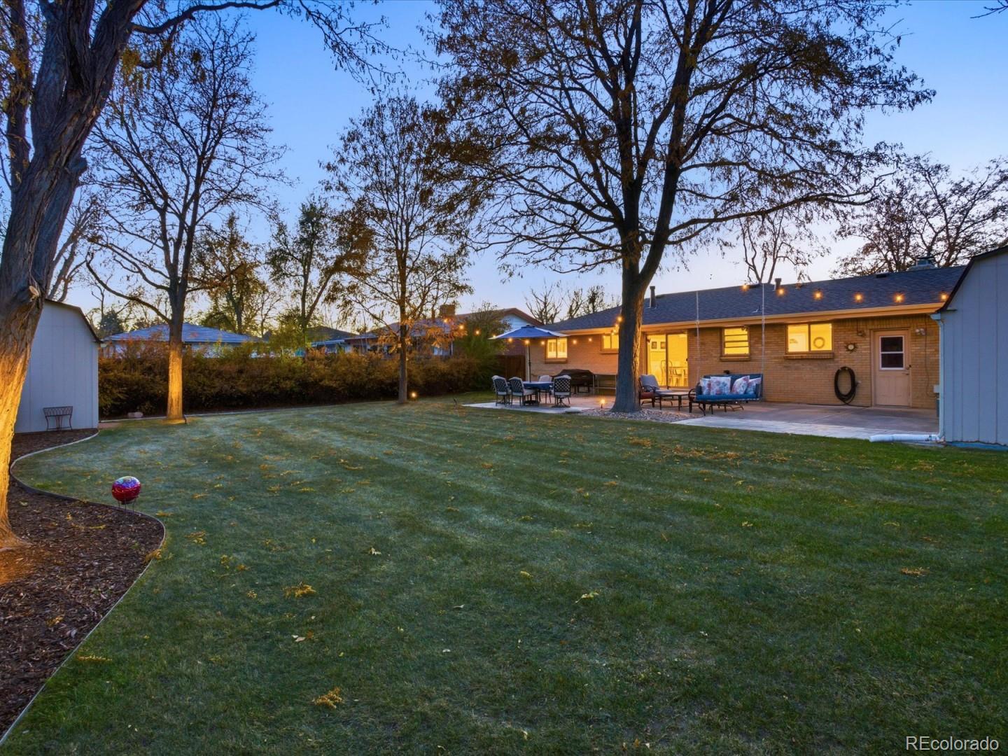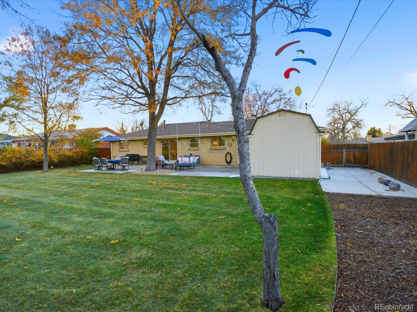 English cottage and contemporary comforts perfectly blended for a timeless modern charm. Renovation completed in winter of 2023. Original oak flooring all throughout the main level. Crown molding and bead board ceiling on main level. High end appliances covered by custom cabinet panels stainless cliché. Adorable custom kitchen cabinets with brass fixtures and cabinet pulls. Gas stove offers two ovens with 8 burners and griddle. Kitchen is perfect for foodie gourmet to entertain in the open design. The full house water treatment system delivers safe, clean drinking water and ensures showers are gentle on the skin, while also preventing mineral stains on glass and fixtures. The finished basement includes two conforming bedrooms and a new three-quarter bathroom and an office or non-conforming bedroom and a large family room (the big TV in basement will stay with home). New roof in spring of 2024. New electrical panel during renovation. Master bath has radiant floor heating. The Security Camera System and Ring Camera are perfect for lock and leave for traveling retirees. Travel trailer and RV parking. Hard wired ethernet all throughout the house. T1 speed currently provided by Quantum. New turf lawn on large lot with four amazing mature trees that provide plenty of shade in the summer. Sprinkler system plus a drip for backyard bushes and front yard roses. Spacious patio ideal for sunrise breakfasts and shaded summer afternoons, featuring landscape lighting and string lights for pleasant Colorado evenings. Includes a natural gas stub and electrical for a future outdoor kitchen. The Highline Canal, parks, trails and Gaslin brand-new elementary school are very close. This residence offers a refined and inviting atmosphere. Prospective buyers will appreciate its thoughtful design and comfort.