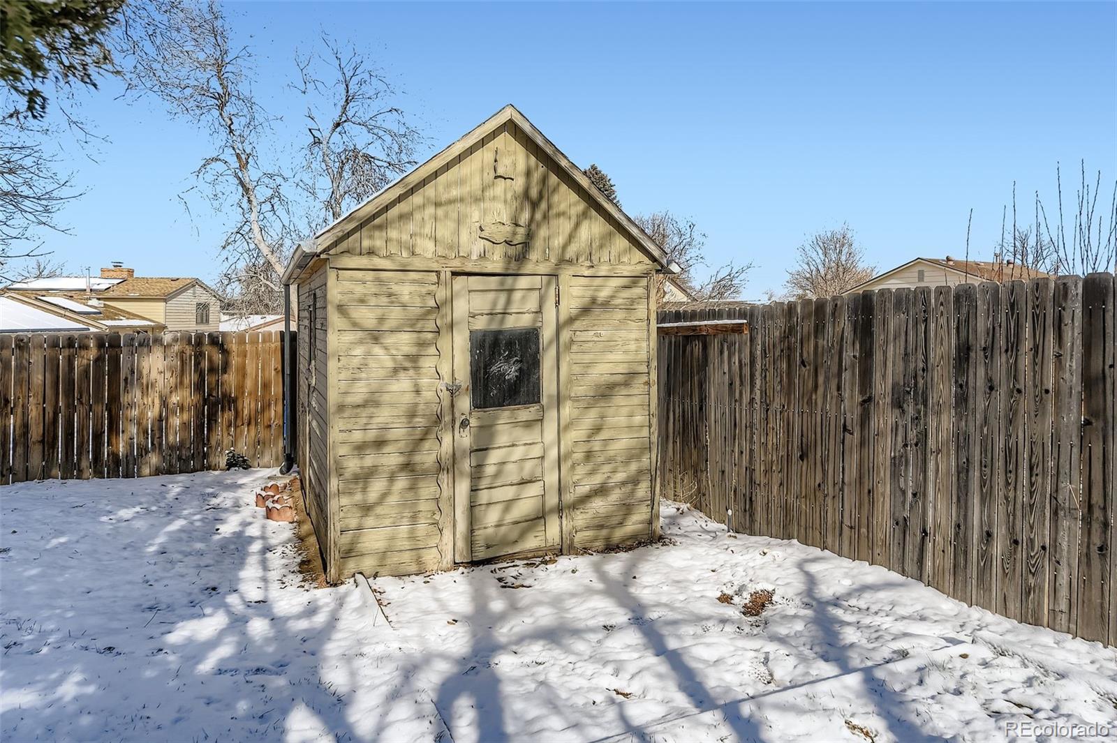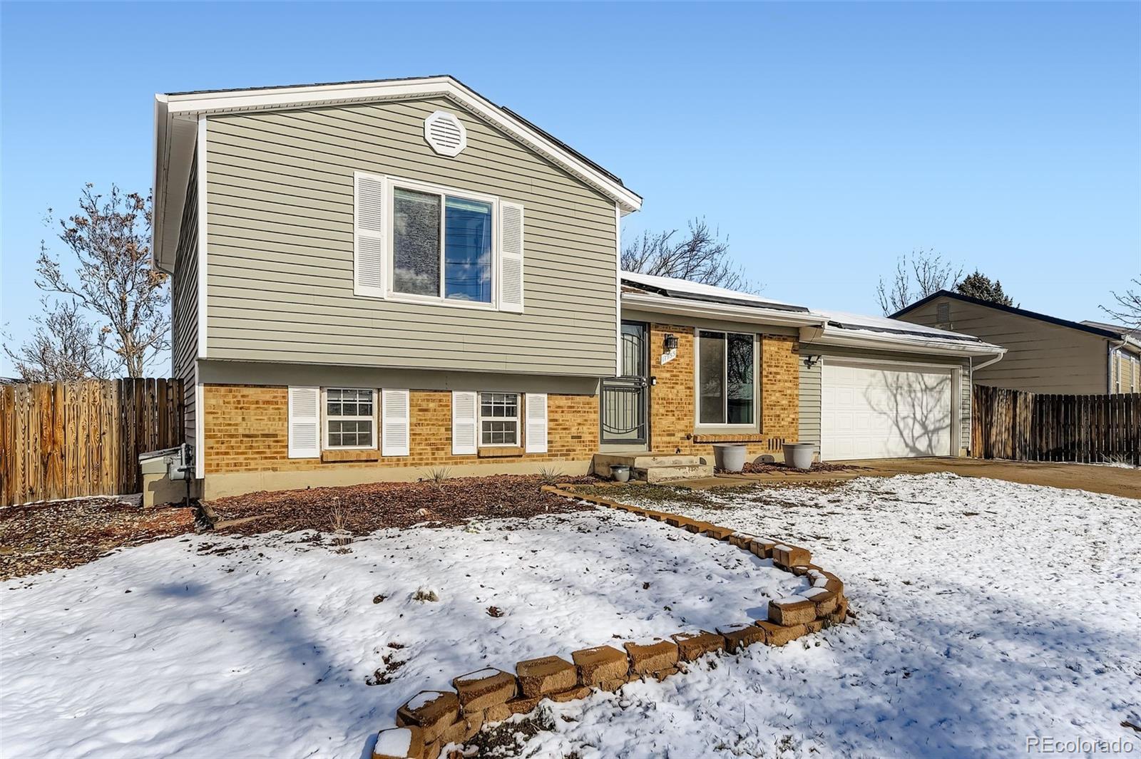 Welcome home to this well-maintained 3-bedroom residence in the Aurora Highlands neighborhood. Built in 1979 and offering 1,209 square feet of comfortable living space, this home features a thoughtfully updated interior and pride of ownership throughout. The south-facing orientation fills the home with abundant natural light, creating a warm and inviting atmosphere year-round. The brand-new refrigerator and modern kitchen make everyday living and entertaining easy. Situated on a 0.15-acre lot, the property boasts a glorious outdoor space with a spacious backyard—perfect for relaxing, gardening, or hosting gatherings. A 2-car garage, wide driveway and additional storage shed provide plenty of room for vehicles, tools, and outdoor gear. An added bonus is the solar system, helping improve energy efficiency and reduce utility costs. The neighborhood offers nearby green space and bike paths, ideal for an active lifestyle. Conveniently located with easy access to Buckley Space Force Base, DIA, E-470, and I-225, this home combines comfort, convenience, and value in a fantastic location. This is the one. This is home!