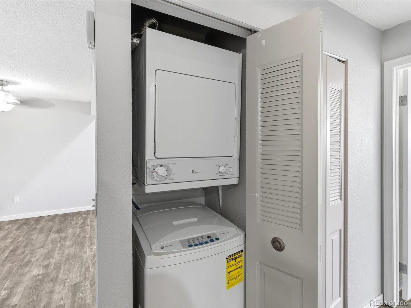 Welcome home to this bright and beautifully updated 1-bedroom, 1-bath premiere top floor home ideally situated between Denver and Boulder. This light-filled second-floor unit features a vaulted ceilings with skylights, a spacious living area with laminate floors flowing through the open concept living area. A private bedroom with a generous walk-in closet, and a well-appointed kitchen with newer appliances and tile backsplash as well as an updated bathroom complete the space. Step outside to your private, west-facing balcony and enjoy sweeping mountain views—perfect for morning coffee or evening sunsets. The home offers in-unit laundry and use of two off-street parking spaces for added convenience. Designed for an easy lock-and-leave lifestyle, this condo is a fantastic opportunity for first-time buyers, commuters, or weekend adventurers alike. Located in the heart of Westminster, you’ll enjoy quick access to downtown Denver, Boulder, DIA, and the mountains, along with nearby shopping, dining, and everyday essentials including Trader Joe’s, Costco, and Whole Foods. With excellent highway access and abundant open space nearby, this is one of the best values for homeownership in the area. Don’t miss your chance to make it yours!