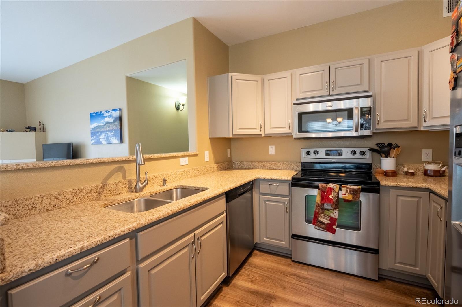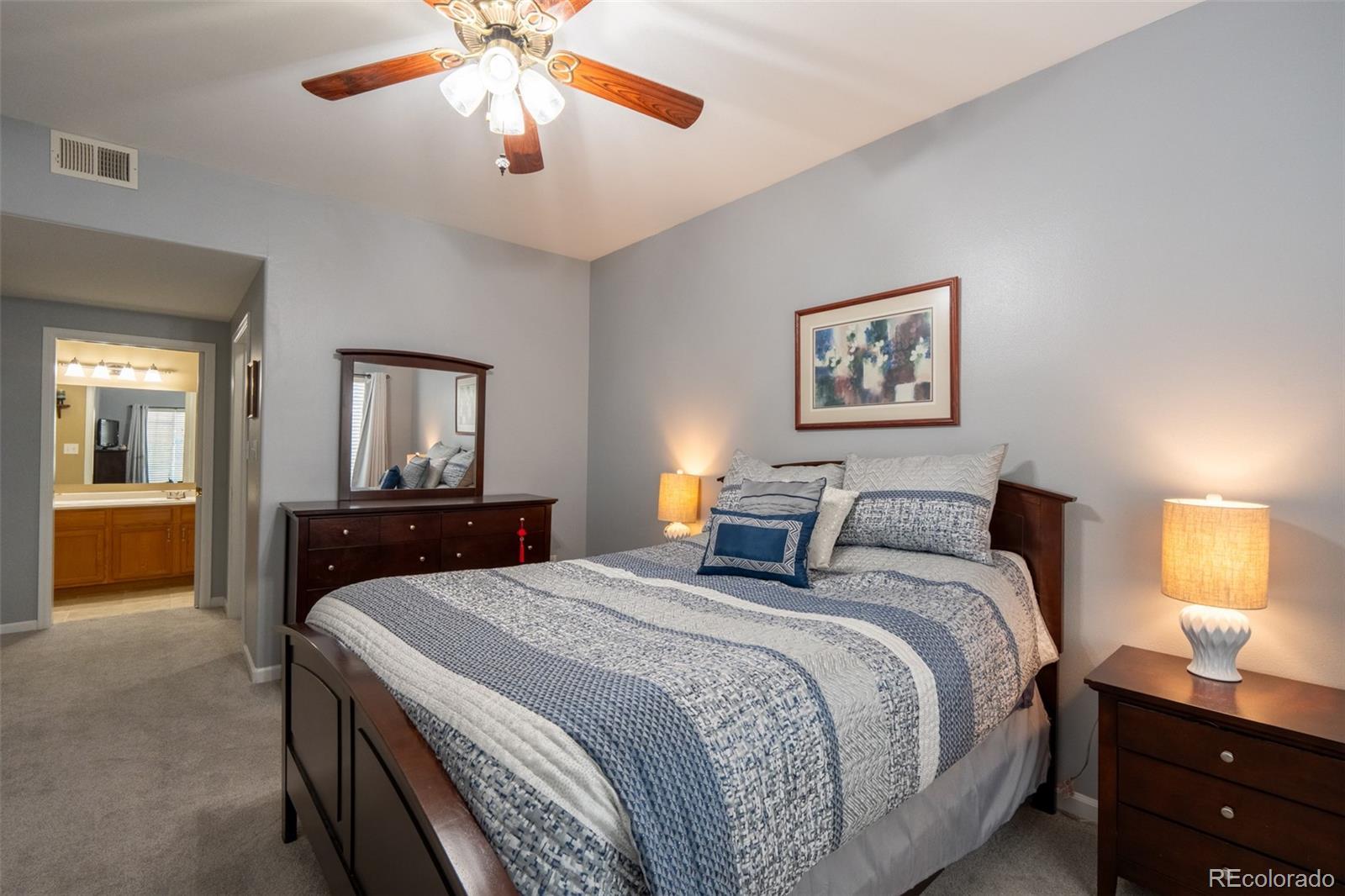 Welcome home! Located in the desirable Canyon Creek community of Highlands Ranch, this well-maintained home offers 3 bedrooms, 2 bathrooms, a detached 1 car garage, and a spacious kitchen with quartz countertops, stainless steel appliances and eat-in space. The light and comfortable living room has a gas fireplace to keep you cozy all winter long. Off of the living room is a private covered patio, perfect for relaxing without looking into your neighbors home. The large primary bedroom has a walk-in closet & en suite bathroom with Corian counters, double sinks, & tile floors. Two additional bedrooms for roommates, guests, a home office, or a hobby space. The Canyon Creek HOA has a clubhouse, fitness center, playground, and pool. Via the Highlands Ranch HOA, you also have access to the Highlands Ranch rec centers, pools, trails, parks, community events. Close to trails, parks, shopping, dining and the very affordable South Suburban Golf Course. 75 feet from the well connected C-470 bike trail. Clean and move-in ready!