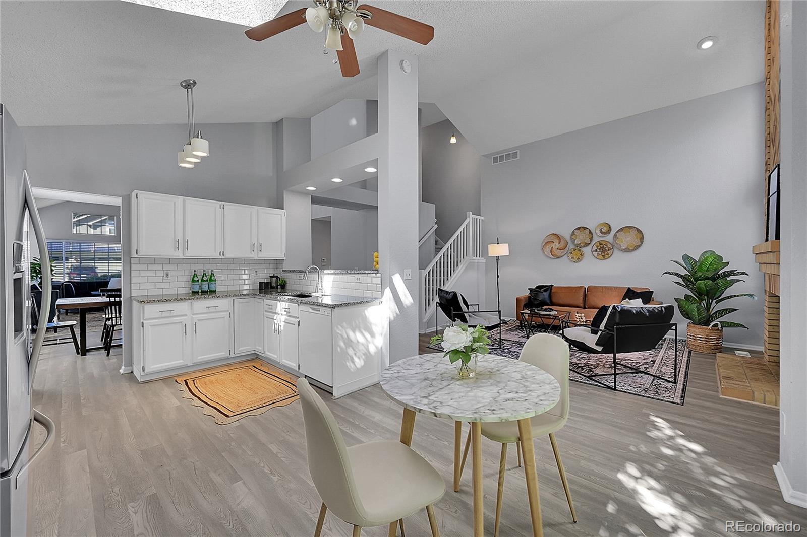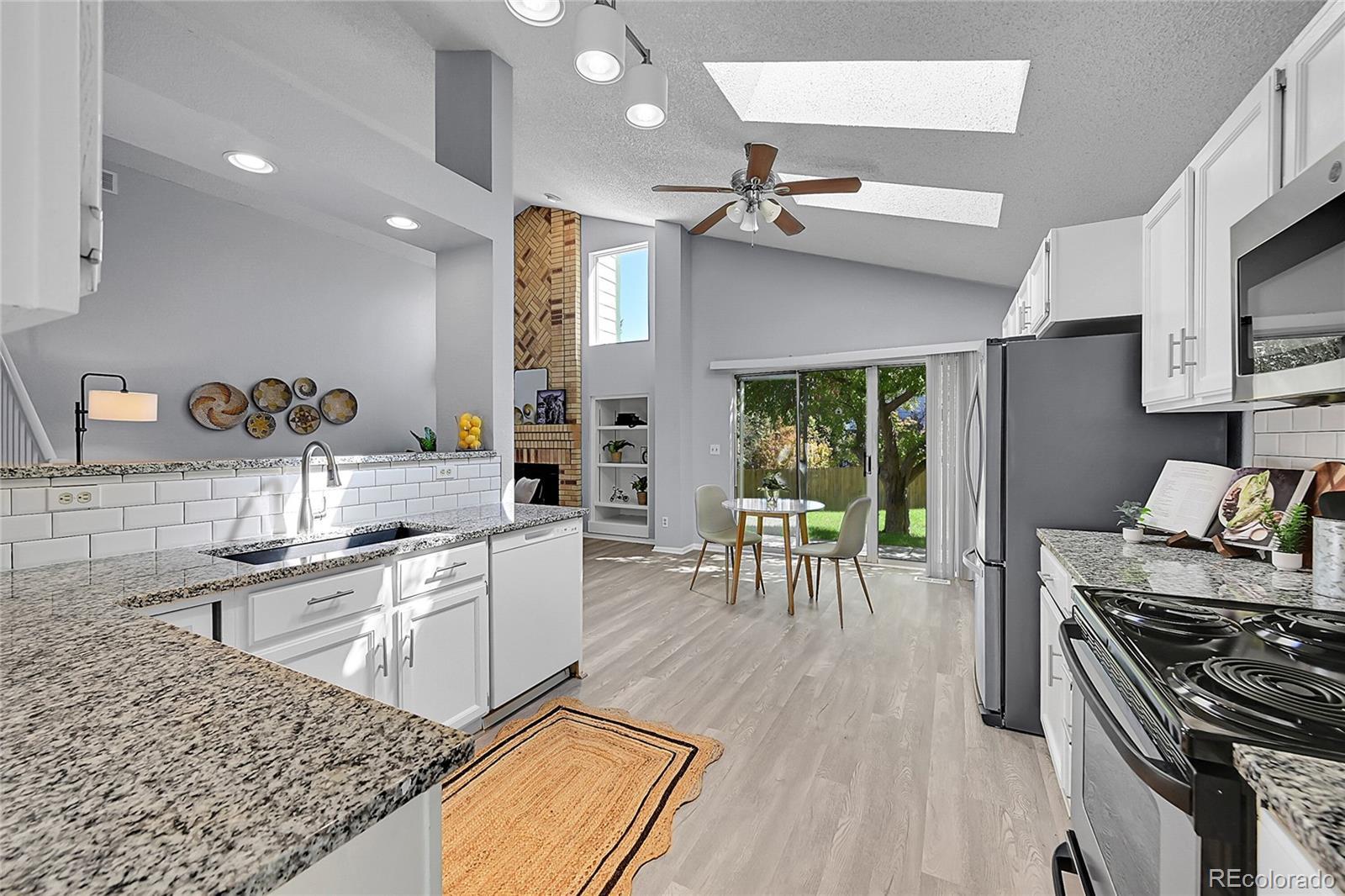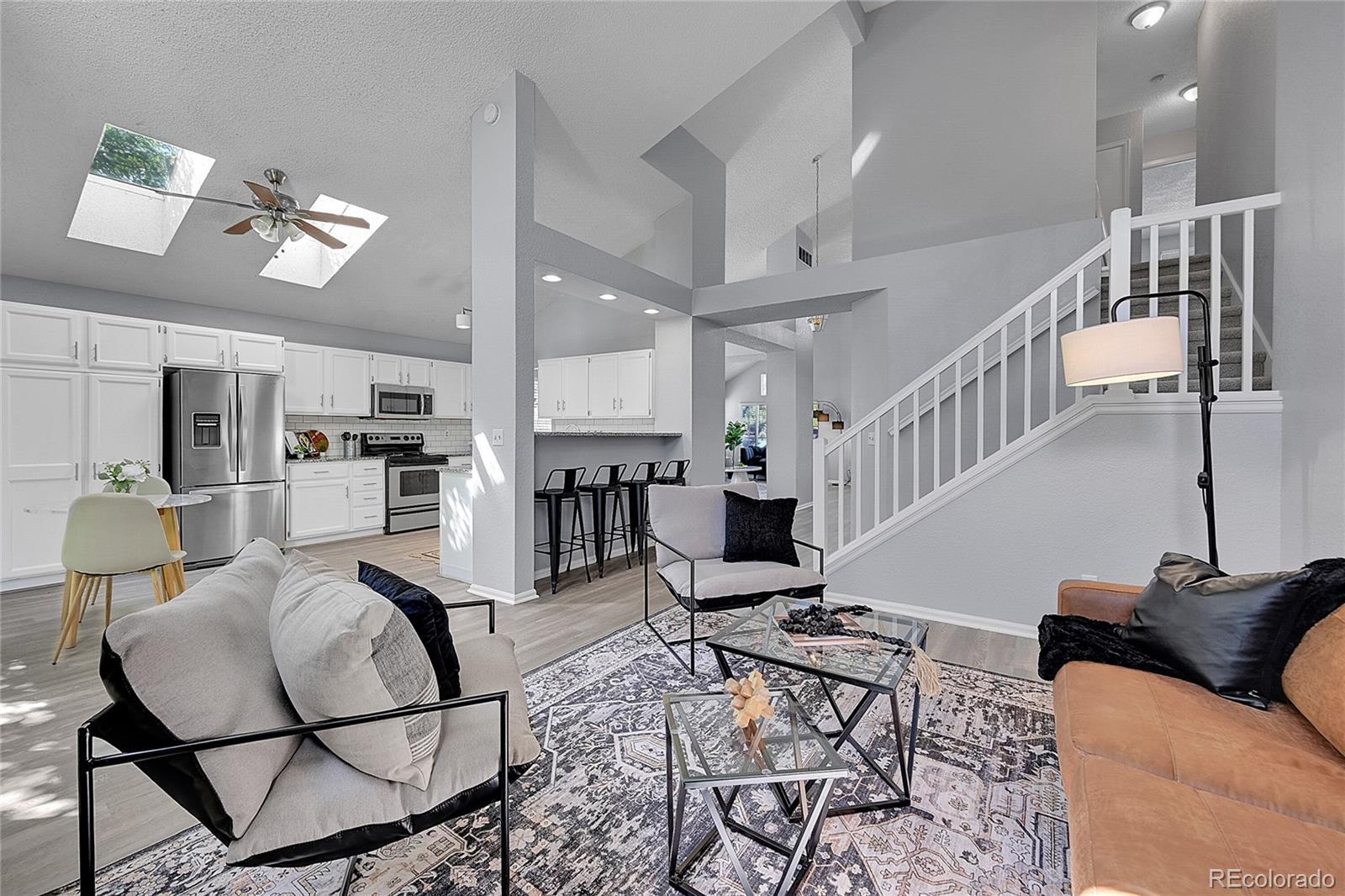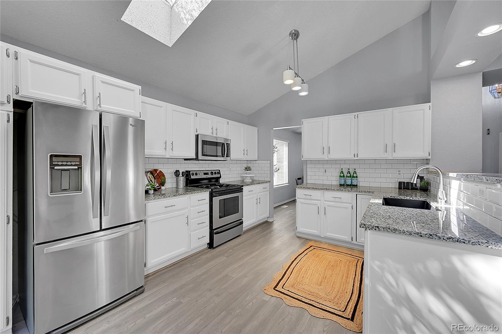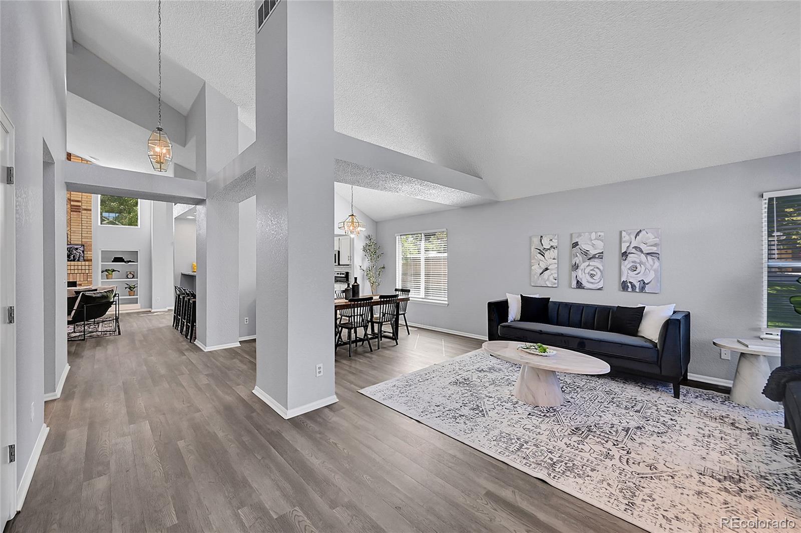 Warm and sunny home. Sunrise from east facing windows greets you in the breakfast area of large kitchen. Throughout the day sunny south windows warm. In the evening the sunset flows through the western windows into the living and dining rooms. This home is newly refreshed and sits on a highly sought-after corner lot, blending modern updates with timeless style. Step inside to brand new luxury plank vinyl flooring and plush new carpet that create a polished and inviting atmosphere. Dramatic vaulted ceilings soar overhead, filling the main living spaces with light and a sense of grandeur. The beautifully redone kitchen shines with stylish finishes, updated cabinetry, and an easy flow to the dining and living areas; perfect for both lively gatherings and quiet evenings at home by the fireplace. A spacious main floor primary suite with a spa-like five-piece bath offers the ultimate retreat. Multiple living spaces upstairs and down provide incredible versatility, while the expansive backyard with front and rear irrigation delivers a private outdoor oasis. The partially finished basement, complete with a roughed-in bath, is brimming with potential to add even more living space and long-term value. Nestled close to scenic parks, trails, top-rated schools, and convenient shopping, this home places you in the heart of one of Littleton’s most cherished neighborhoods. And with Colorado’s breathtaking mountains, 300 days of sunshine, and endless opportunities for outdoor adventure, life here truly embodies the best of the Mountain States.
