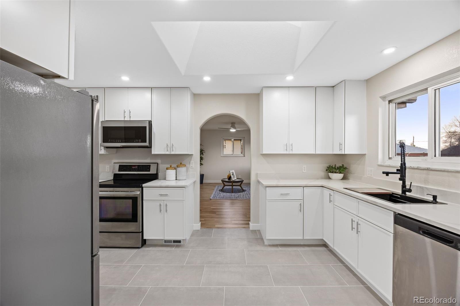 Welcome to 1061 Phillips Drive, Northglenn, Colorado Step into this beautifully remodeled home located in the heart of Northglenn, offering exceptional upgrades and modern finishes throughout. As you arrive, you’ll notice dual driveways on both sides of the property — perfect for extra parking, trailers, boats, or ATVs. In addition, there’s a spacious two-car garage providing even more storage or parking flexibility. Inside, the home features a fully renovated main level with three bedrooms and one bathroom. The kitchen is a showpiece, featuring brand-new cabinets, quartz countertops, and stainless steel appliances. A skylight above the kitchen floods the space with natural light, creating a warm and inviting atmosphere. Adjacent to the kitchen is a large dining area, perfect for gatherings and everyday meals, also illuminated beautifully by natural light. The finished basement offers additional living space, including one bedroom, one bathroom, and a movie bar area — ideal for entertaining or relaxing. Every major system has been updated, including new HVAC and a new electrical panel. The detached two-car garage is equipped with its own electrical meter and a 220V outlet, suitable for EV charging, welding, or other high-powered tools. The setup also provides ADU potential for future income or guest accommodations. Located in a quiet, private area, yet just minutes from shopping, dining, and major highways, this home combines comfort, functionality, and convenience.
