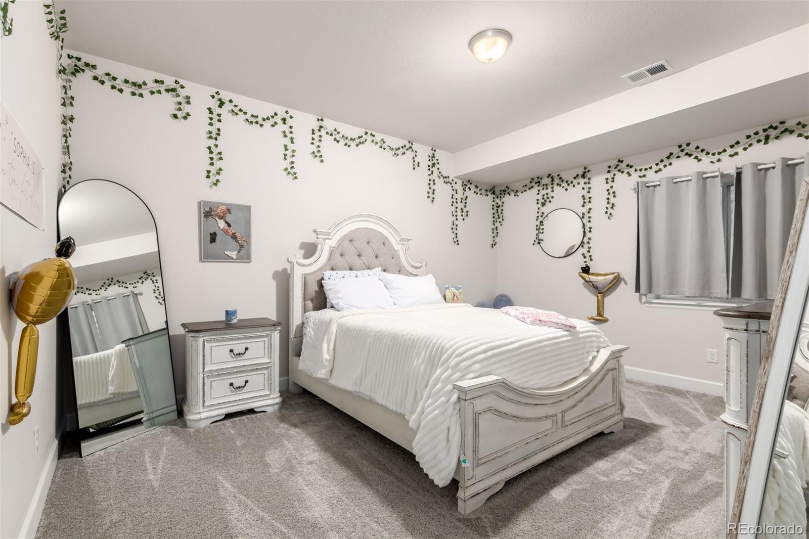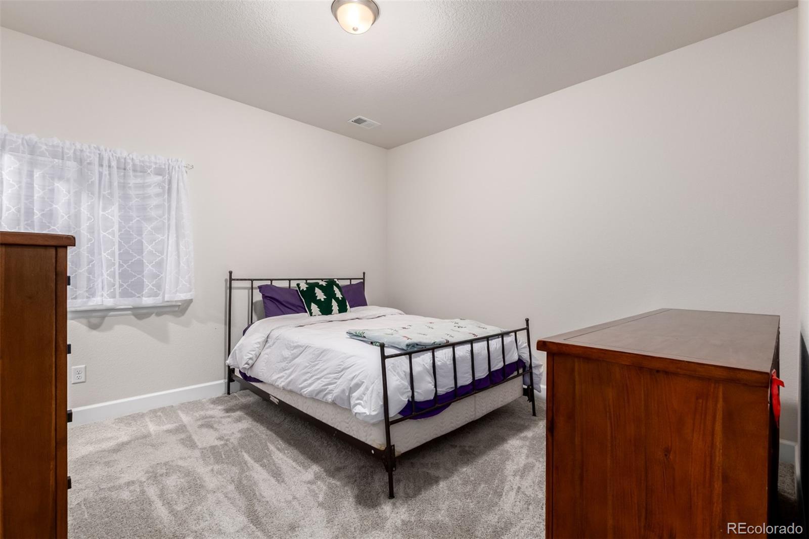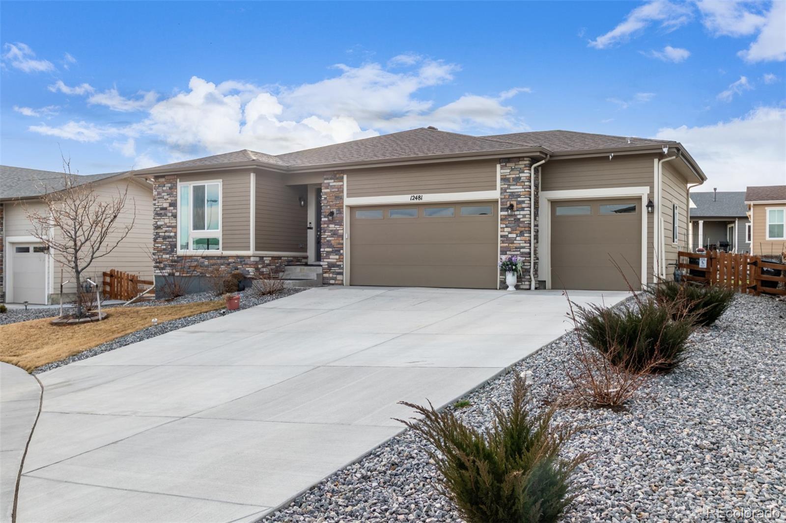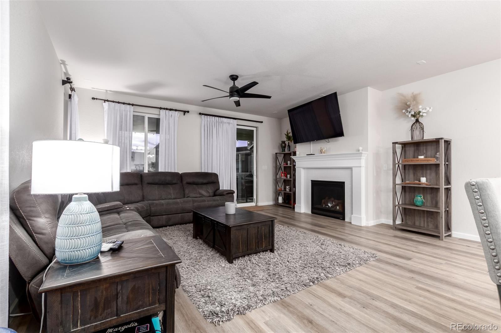 Welcome home to this beautiful home ready to entertain. The kitchen features a large quartz island and an open floor plan into the family room with a cozy fireplace then out the back door to a rare large covered back patio with mountain views. Enjoy your beautiful Colorado sunsets. The main floor features two more bedrooms as well as a primary bedroom with a large walk in shower and walk in closet. There is a main floor laundry room too. Custom drapes are included. Now get ready for a basement to host the big game, poker tournament and relax by the large wet bar with lots of cabinet space. There are two more large bedrooms downstairs with a 3/4 bathroom. Enjoy cul de sac living and walk to coffee shops and the Super Walmart as well as other convenience stores nearby.