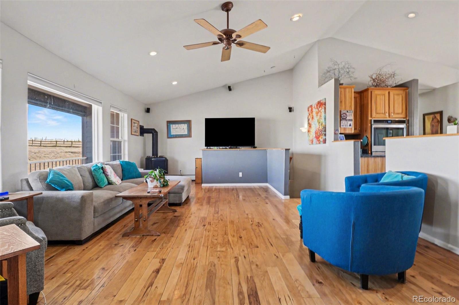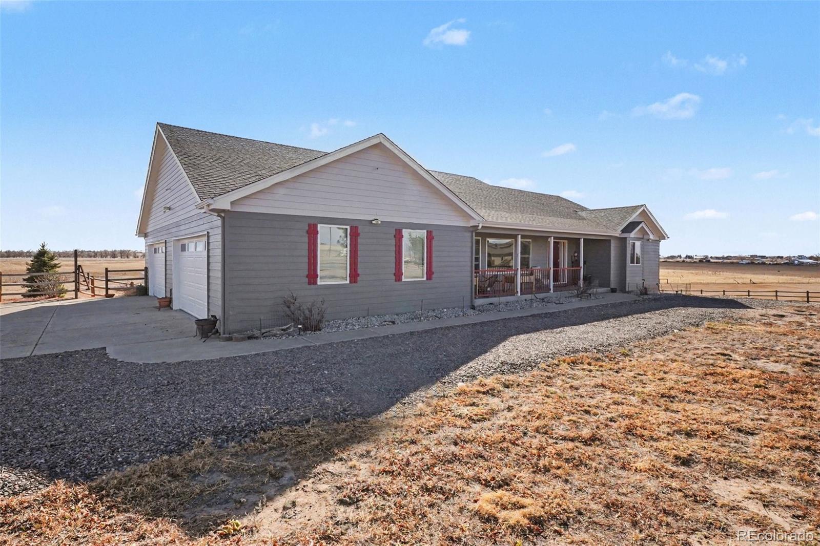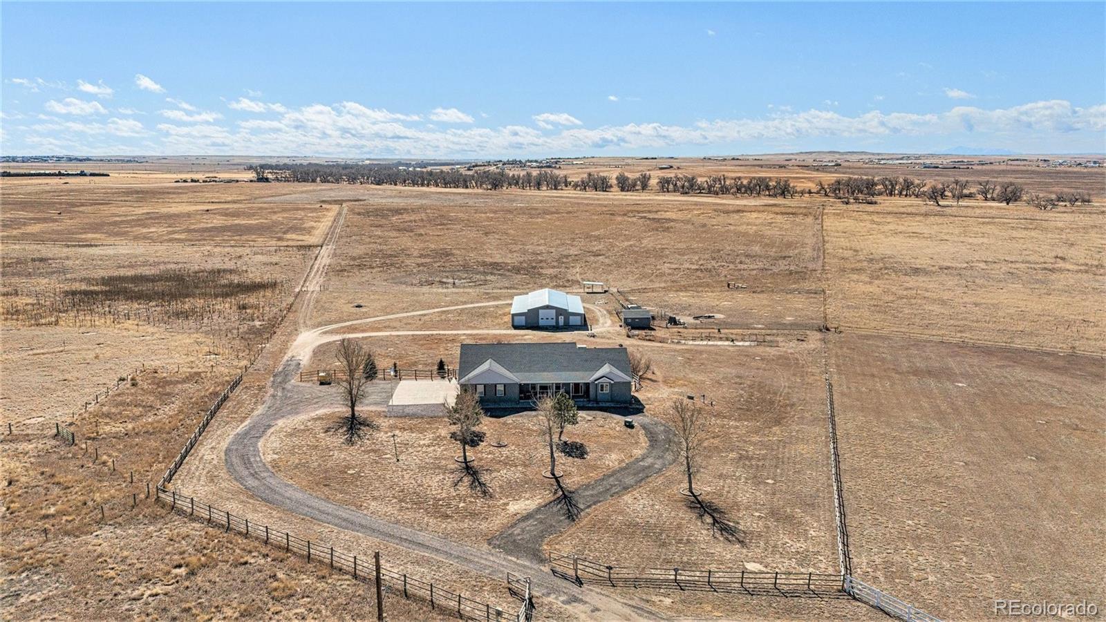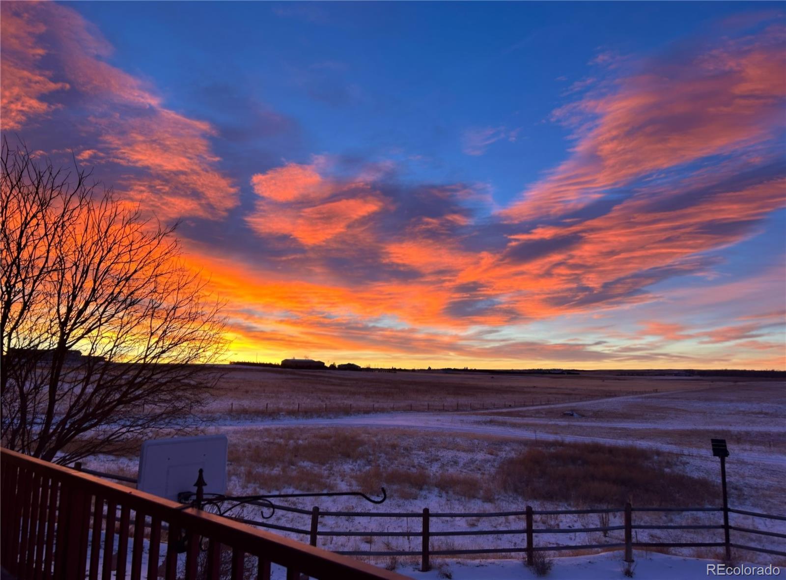 Experience Colorado living at its finest on this incredible 35-acre ranch home, panoramic views stretch in every direction and vibrant sunsets paint the sky each evening. Thoughtfully designed for comfort, function, and connection to the land, the home features a spacious primary suite with a walk-in closet, expansive windows that frame the surrounding landscape with big skies and sunflowers as far as the can see! A large kitchen also looks out over the land, appointed with stainless steel appliances, granite countertops and double ovens, perfect for gatherings. The enormous finished walkout basement adds even more versatility, complete with its own kitchenette, full bath, bedroom and hobby/workshop area—ideal for guests, multigenerational living, or entertaining. Recent upgrades include new windows, fresh paint, updated flooring, and a new roof, ensuring peace of mind for years to come. For those seeking space, utility, or the freedom to pursue hobbies and homesteading, this property delivers! A massive 5,000-square-foot multi room barn with and oversized pull through doors provides endless possibilities including space for an RV, farm equipment, and your toys, complemented by a loafing shed, 2 additional sheds that have been home to ducks chickens & goats, irrigated grounds, and fenced/ cross-fenced pastures. There is a dedicated garden area, pastures and ample room for livestock, or crops. Modern conveniences blend seamlessly with rural tranquility: solar power with battery backup, a four-car heated garage, security cameras, and extensive exterior lighting add comfort and security. The quiet, welcoming, gated community offers the peace and serenity of country living with surprisingly easy access to DIA and a short commute to downtown Denver. Whether you dream of homesteading, need room to grow, or simply crave room to breathe, wide-open spaces and breathtaking views, this property offers a rare opportunity to live the dream lifestyle you’ve imagined!