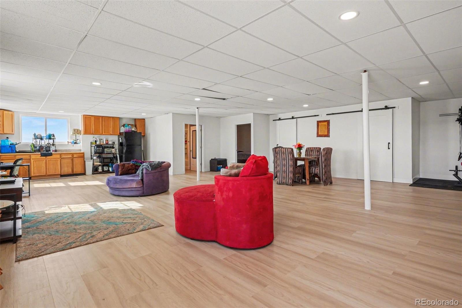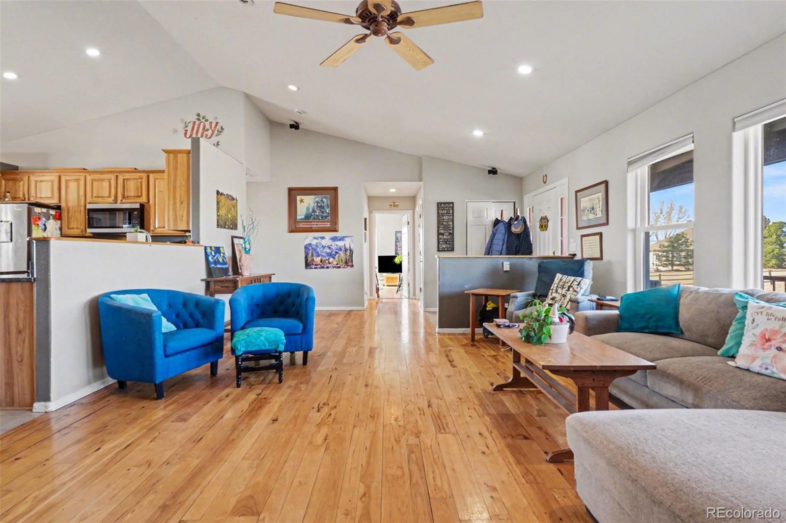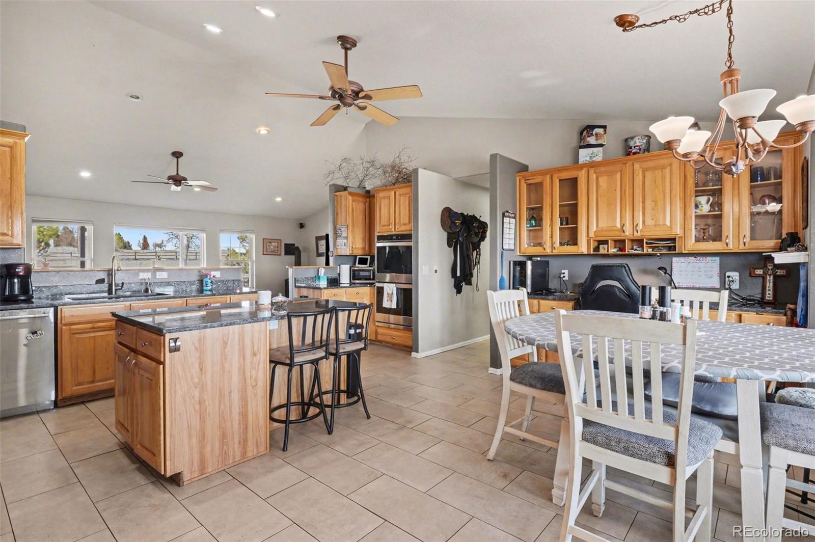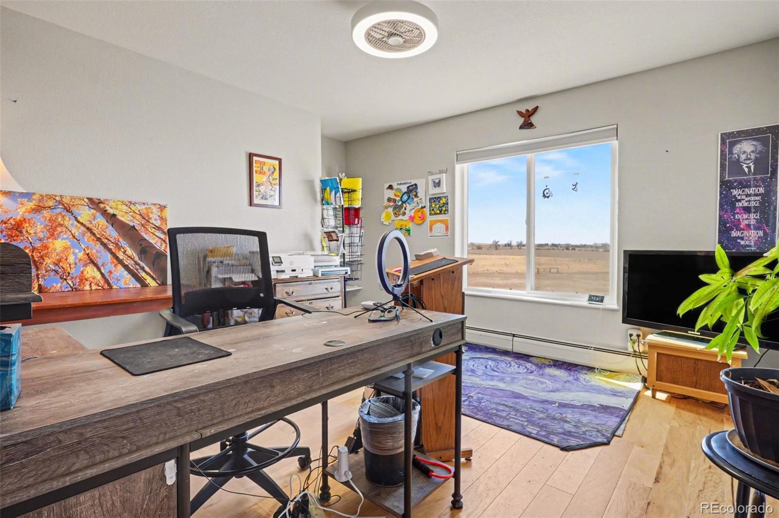 Experience Colorado living at its finest on this incredible 35-acre ranch home, panoramic views stretch in every direction and vibrant sunsets paint the sky each evening. Thoughtfully designed for comfort, function, and connection to the land, the home features a spacious primary suite with a walk-in closet, expansive windows that frame the surrounding landscape with big skies and sunflowers as far as the can see! A large kitchen also looks out over the land, appointed with stainless steel appliances, granite countertops and double ovens, perfect for gatherings. The enormous finished walkout basement adds even more versatility, complete with its own kitchenette, full bath, bedroom and hobby/workshop area—ideal for guests, multigenerational living, or entertaining. Recent upgrades include new windows, fresh paint, updated flooring, and a new roof, ensuring peace of mind for years to come. For those seeking space, utility, or the freedom to pursue hobbies and homesteading, this property delivers! A massive 5,000-square-foot multi room barn with and oversized pull through doors provides endless possibilities including space for an RV, farm equipment, and your toys, complemented by a loafing shed, 2 additional sheds that have been home to ducks chickens & goats, irrigated grounds, and fenced/ cross-fenced pastures. There is a dedicated garden area, pastures and ample room for livestock, or crops. Modern conveniences blend seamlessly with rural tranquility: solar power with battery backup, a four-car heated garage, security cameras, and extensive exterior lighting add comfort and security. The quiet, welcoming, gated community offers the peace and serenity of country living with surprisingly easy access to DIA and a short commute to downtown Denver. Whether you dream of homesteading, need room to grow, or simply crave room to breathe, wide-open spaces and breathtaking views, this property offers a rare opportunity to live the dream lifestyle you’ve imagined!
