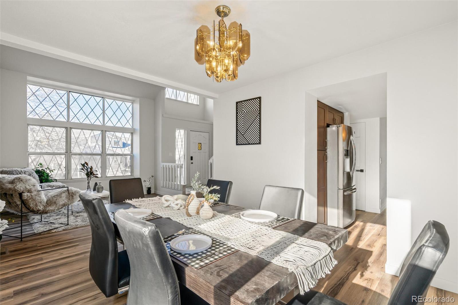 Welcome to this beautifully updated home located in the highly desirable Cherry Creek School District and offering the added benefit of NO HOA. Offering over 2,500 square feet of thoughtfully designed living space, this home features high vaulted ceilings and a bright, open layout that creates an inviting and modern atmosphere. The open-concept kitchen flows effortlessly into the main living and dining areas, making it ideal for both everyday living and entertaining. Recent upgrades include new luxury vinyl plank flooring and new carpet, providing style, durability, and comfort throughout the home.Air conditioning system and furnace installed in 2024, adding peace of mind and energy efficiency. The unfinished basement includes a separate entrance from the garage, providing a blank canvas for future expansion, storage, a home gym, or flexible living space. A spacious 2-car garage adds everyday convenience and ample storage. Step outside to a fully fenced backyard spanning over 8,000 square feet, perfect for outdoor entertaining, gardening, or creating your own private retreat. With its spacious layout, modern upgrades, large yard, and prime location near top-rated schools, shopping, dining, and major amenities, this move-in-ready home offers exceptional value. Schedule your private showing today.