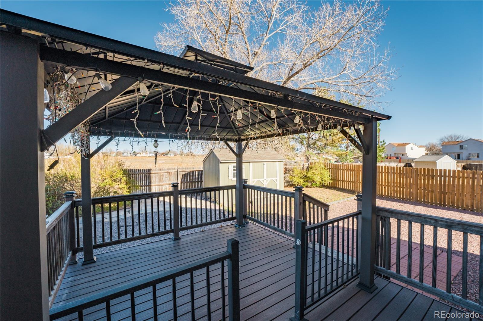 Welcome to the showpiece of the neighborhood! This 2-story home offers the largest floor plan in the complex, with a fully finished basement, 4 bedrooms (with potential to add 1–2 more), 3 bathrooms, and a 2-car garage—all in a prime location for convenience and privacy on the cul-de-sac and backing to open space! The main level is bright and open, featuring vaulted ceilings, multiple dining and living spaces, and an easy flow for entertaining. The remodeled kitchen shines with granite countertops, a gas stove, breakfast bar, bay window, and updated stainless steel appliances—all included. Just off the kitchen, the spacious living room boasts a striking 2-story gas fireplace and a walk-out to the back deck and generously sized yard. Upstairs, you’ll find three bedrooms and two bathrooms, including the expansive primary suite. This retreat is complete with vaulted ceilings, a dressing area, walk-in closet, and a 5-piece bath with double granite vanity. The finished basement provides a versatile rec space that can easily be reimagined to create additional bedrooms if desired. This home has been meticulously cared for, with numerous updates: NEW furnace, A/C, water heater, windows, interior paint, stucco, copper gutters with gutter guards, main level shower door, garage door, front door, and a beautifully updated kitchen. Move-in ready and in excellent condition, this property is conveniently located just minutes from Peterson AFB, shopping, and schools, with Fort Carson only a short drive away—and best of all, no HOA!