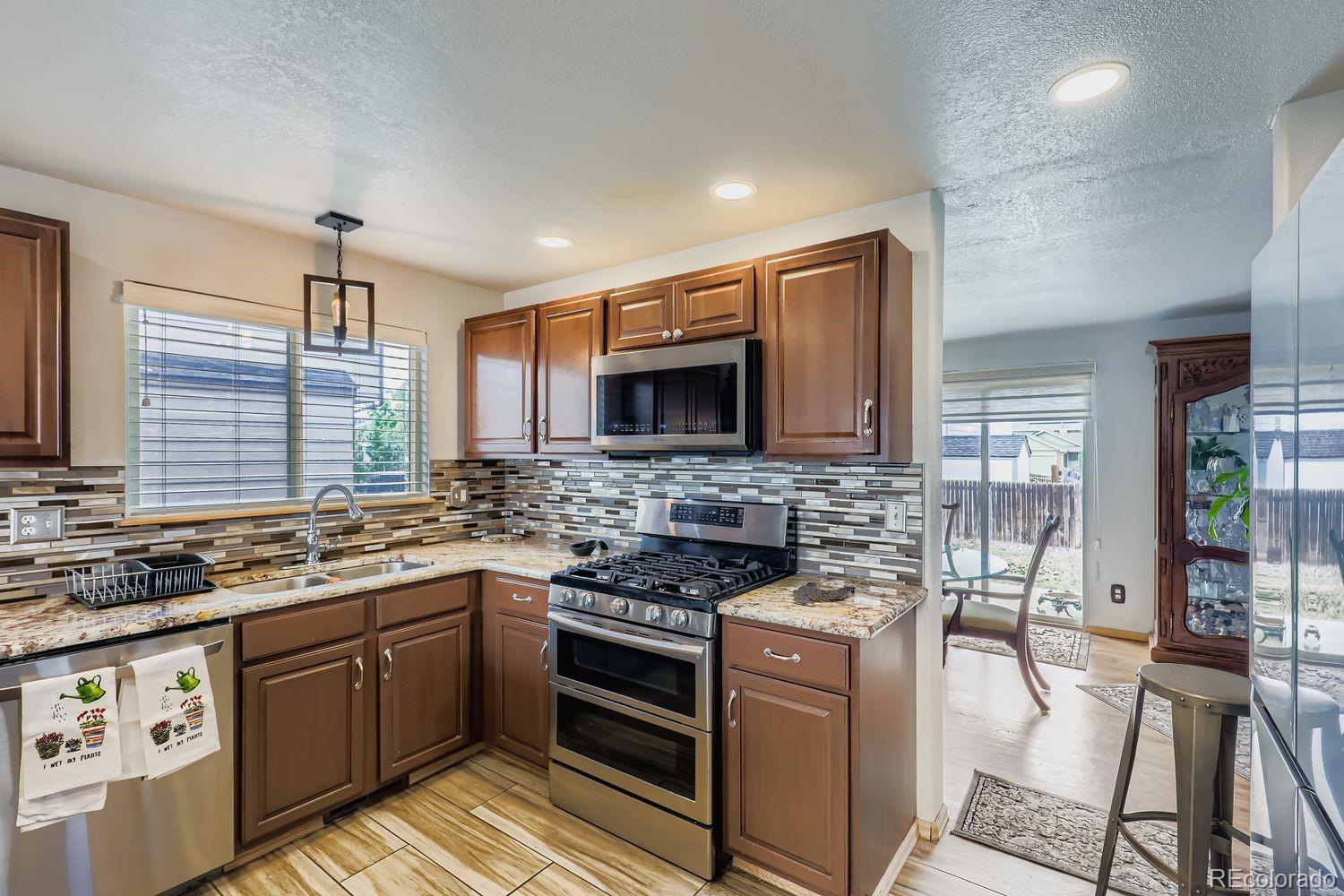 Welcome to this well cared for split level home featuring 3 bedrooms, 2.5 bathrooms, a 3-car garage, and an unfinished basement ready for your personal touch! Located in the heart of Montbello, this spacious property offers a versatile layout with new tile flooring throughout. The main level boasts a bright living room with vaulted ceilings, a functional kitchen with new stainless steel appliances, and a separate dining area. A convenient half bath is located on the main floor, perfect for guests. Upstairs, you'll find all three generously sized bedrooms, including the impressive primary suite with a 5-piece en-suite bath featuring a jetted tub! A second full bathroom serves the two additional bedrooms. The lower level features a cozy family room filled with natural light—perfect for movie nights, a play area, or a home office. The unfinished basement provides endless potential for added living space, a home gym, hobby room, or ample storage. Enjoy the convenience of a 3-car garage, and a location close to parks, schools, shopping, and major commuter routes. Don’t miss this fantastic opportunity to own a move-in ready home with room to grow!