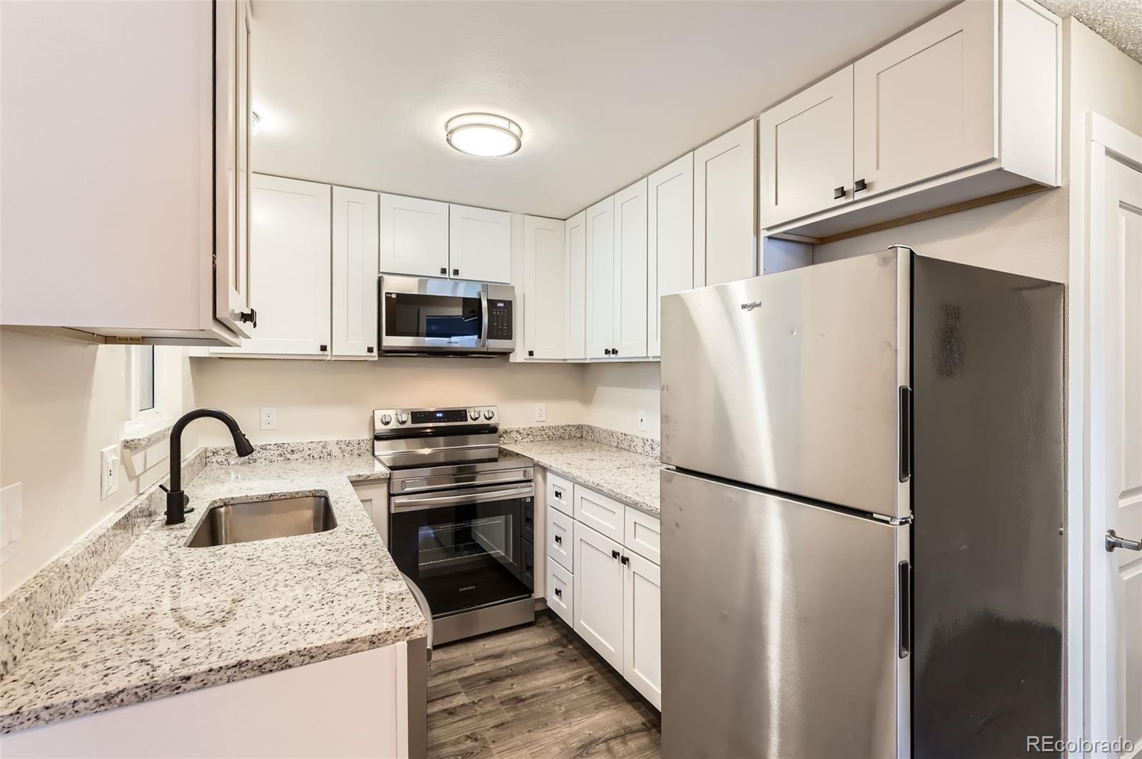 Welcome to this fully remodeled 1-bedroom, 1-bath end-unit condo offering a perfect blend of modern style, comfort, and convenience. This bright and airy home has been thoughtfully updated from top to bottom, making it completely move-in ready. Step inside to discover brand-new stainless steel appliances, gorgeous granite countertops, stylish 36” cabinets, and contemporary lighting throughout. The open-concept living area features new flooring, a cozy wood-burning fireplace, and large windows that flood the space with natural light. Enjoy your morning coffee or unwind in the evenings on the private bonus patio—ideal for entertaining or relaxing. The spacious bedroom offers ample closet space, and the bathroom has been updated with sleek finishes. Just steps away from the community pool, this unit is perfect as a low-maintenance primary residence or a turnkey investment property. Conveniently located near shopping, dining, public transportation, and major highways, this condo provides easy access to everything you need. Don’t miss this opportunity to own a stylish, updated condo in a prime location. Schedule your showing today!