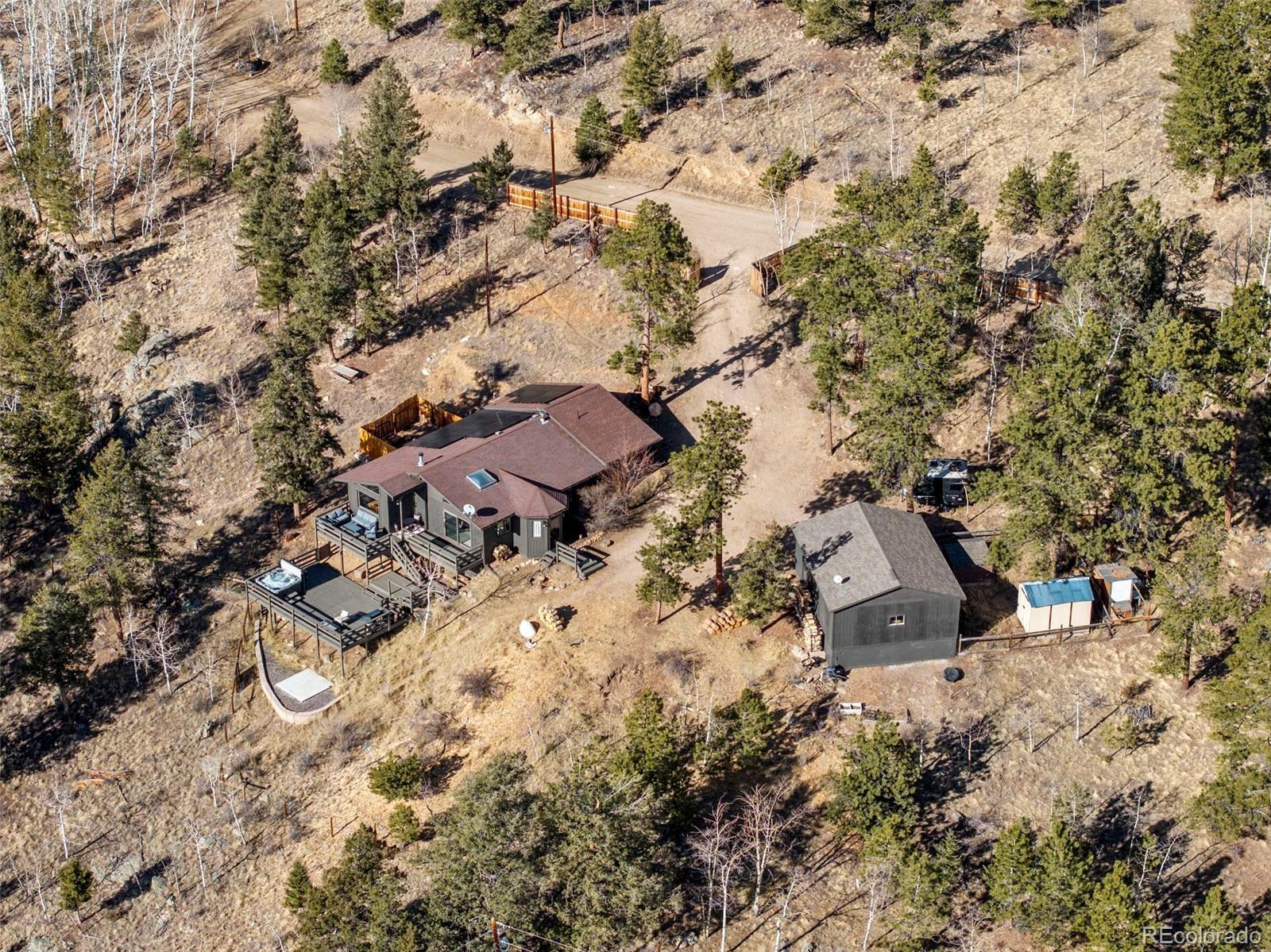 Welcome to 236 Summit Drive — a beautifully upgraded mountain retreat on 2.5 fully fenced, private acres with unobstructed views, modern comforts, and exceptional outdoor living. This light-filled, south-facing home is surrounded by aspen groves, wildflower meadows, dramatic rock formations, and miles of big-sky vistas. Located on a peaceful road with abundant wildlife & dark night skies, this property offers true Colorado mountain living with all the conveniences of thoughtful, high-quality improvements. LifeProof LVP flooring throughout for durability and modern style. All new light fixtures. New insulation added under the home. Interior/exterior fully repainted. New interior doors + hardware and all new trim/baseboards. New Murphy bed with pull-out nightstands, lighting package, and added storage. Amazing Hot tub on deck included. A beautifully updated kitchen boasts remodeled layout, newer cabinets, appliances, countertops, and floating shelves. There is a privacy-fenced dog run plus a fully fenced 2.5-acre property—ideal for pets, chickens, or recreation. Professional fire mitigation (2025) completed by Clear Creek Fire Mitigation. A trail runs inside the entire fence line, creating a private loop for walking, snowshoeing, or daily exercise. Solar panels are owned - buyer must qualify for remaining balance of loan. This home is positioned to capture vibrant sunrises, golden-hour sunsets, and dramatic star-filled night skies. With southern exposure, natural light fills every room all day long. Enjoy the peace of minimal traffic, total privacy, and a setting rich with wildlife—yet still minutes from Hwy 285, trailheads, shops, and mountain-town amenities. 236 Summit Drive is a rare blend of privacy, modern upgrades, and breathtaking natural surroundings. This move-in-ready mountain haven is truly one of Bailey’s standout properties.