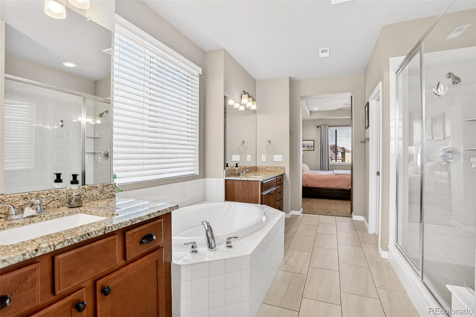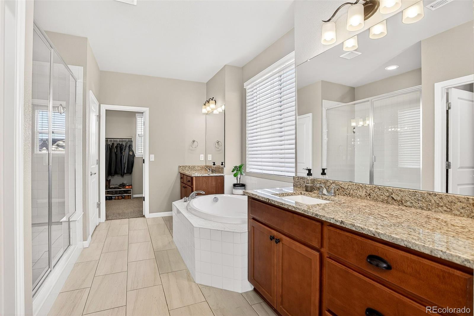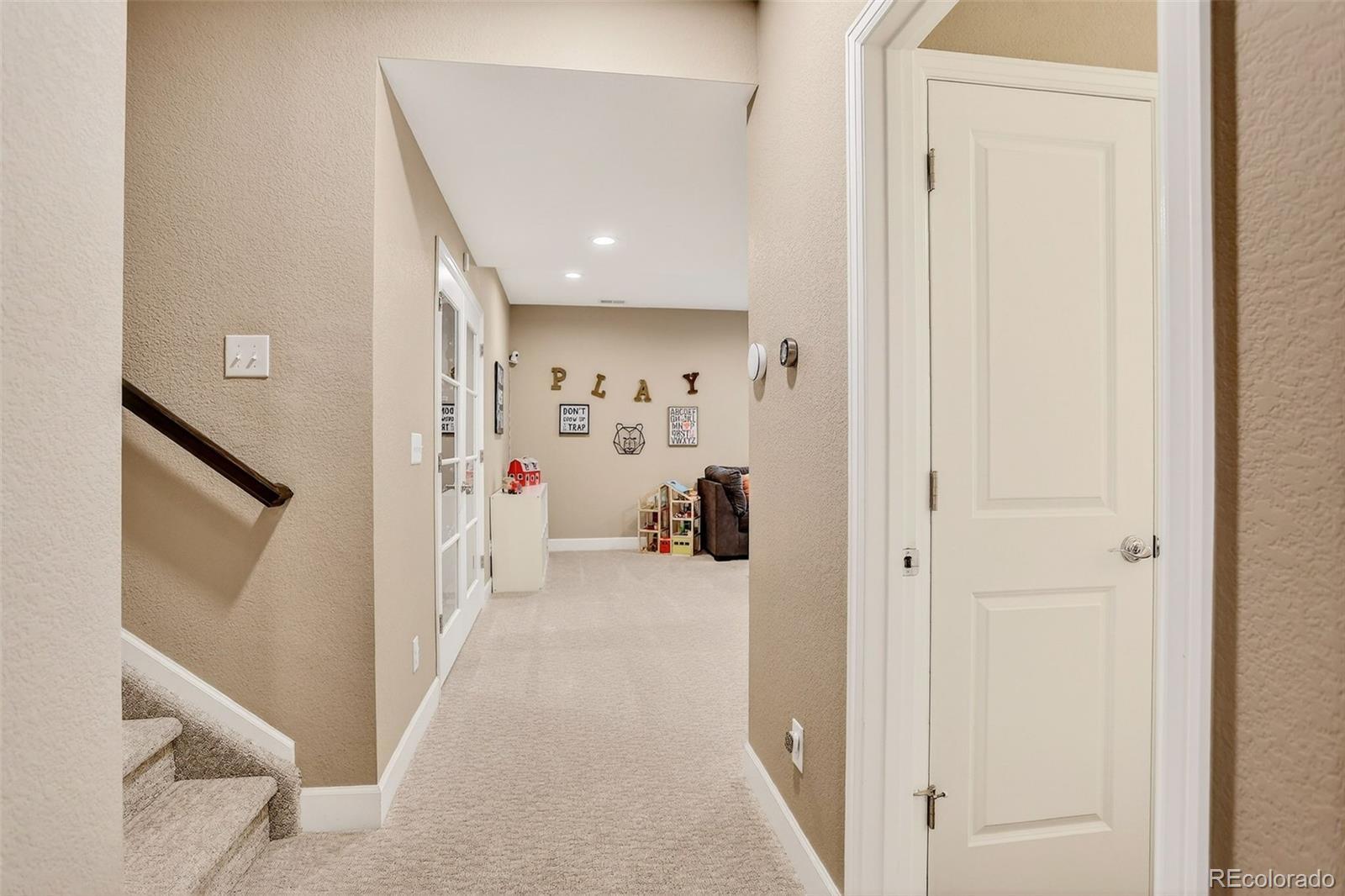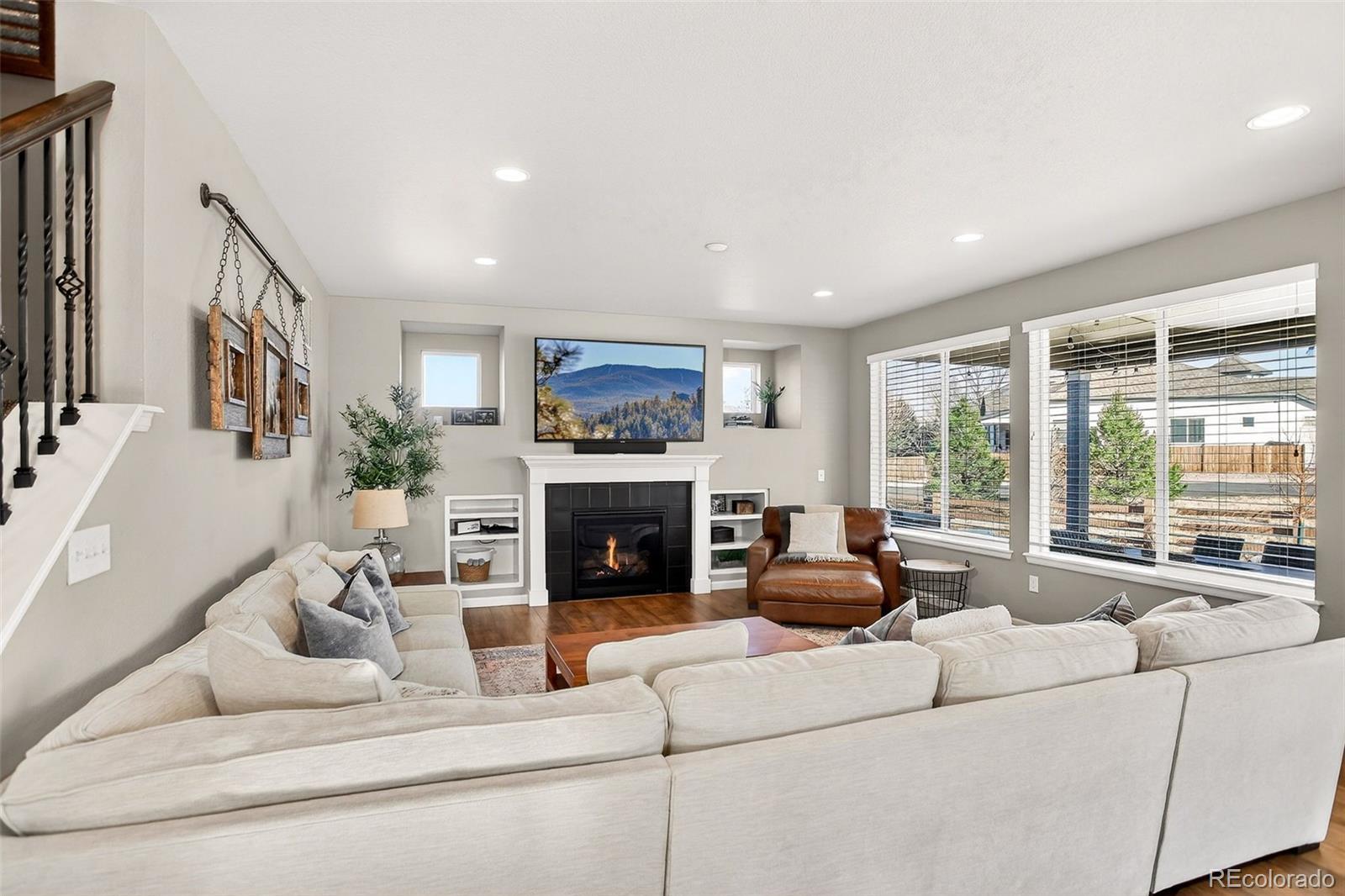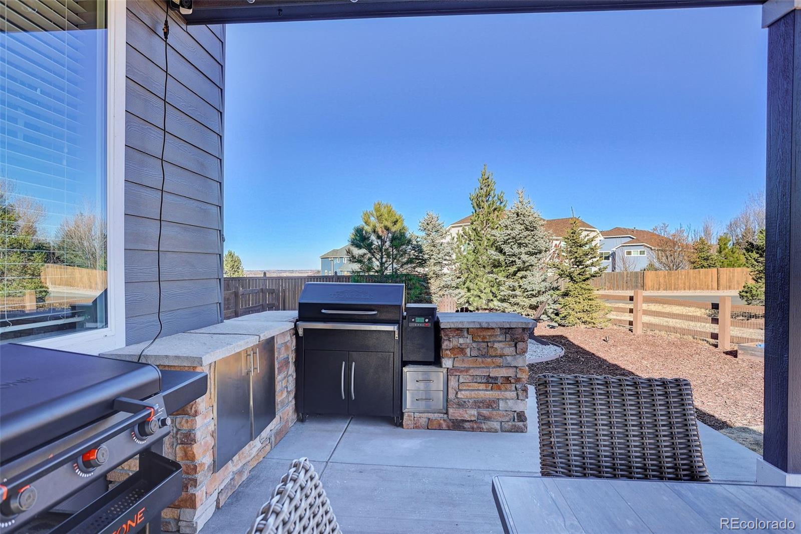 This is your new home! Fantastic curb appeal in a quiet cul-de-sac setting. Meticulously maintained and elegantly appointed, this home shines from every angle. Step inside and be wowed! The high-end kitchen is a true showpiece with magnificent cabinetry, upgraded custom countertops, stainless appliances, a custom cooktop vent, a huge island, a butler’s pantry with wine cooler, and a charming eat-in nook—creating a space that is stunning and functional. The adjoining family room is big and bright with soaring windows, a focal point fireplace, and easy access to the backyard recreation area. The main level also features a beautiful formal dining and a professional office space. Retreat to your private oasis in the gorgeous primary suite with coved ceilings, a luxurious five-piece bath, custom sliding door, and expansive his-and-hers closet. The bedrooms are spacious with abundant natural light and room to grow. A Hollywood bath connects the secondary bedrooms with dual sinks and a dedicated shower/toilet area. Upstairs laundry makes everyday living convenient and effortless. Wait until you see the basement! This incredible space offers a second family or media room, an ideal gym or flex area, another large bedroom, and a custom full bath. The huge fully finished three-car tandem garage—with dedicated heater, high ceilings, and abundant storage—is the ultimate man cave or workshop. The grand oversized backyard is fully fenced and private with no rear neighbors, featuring a covered patio with built-in cooking area, dedicated nat gas grill line, exterior lighting, a kids’ play area, and a perfect dog run. More upgrades include high ceilings, a new Class 4 roof, new Bosch furnace, zoned duct system, NEST thermostats, whole-house humidifier with Halo air purifier, H2O filtration, and radon mitigation with Airwave monitoring. All of this in an ideal location with plains views and quick access to shopping, schools, recreation, open space, restaurants, and more. A must see!