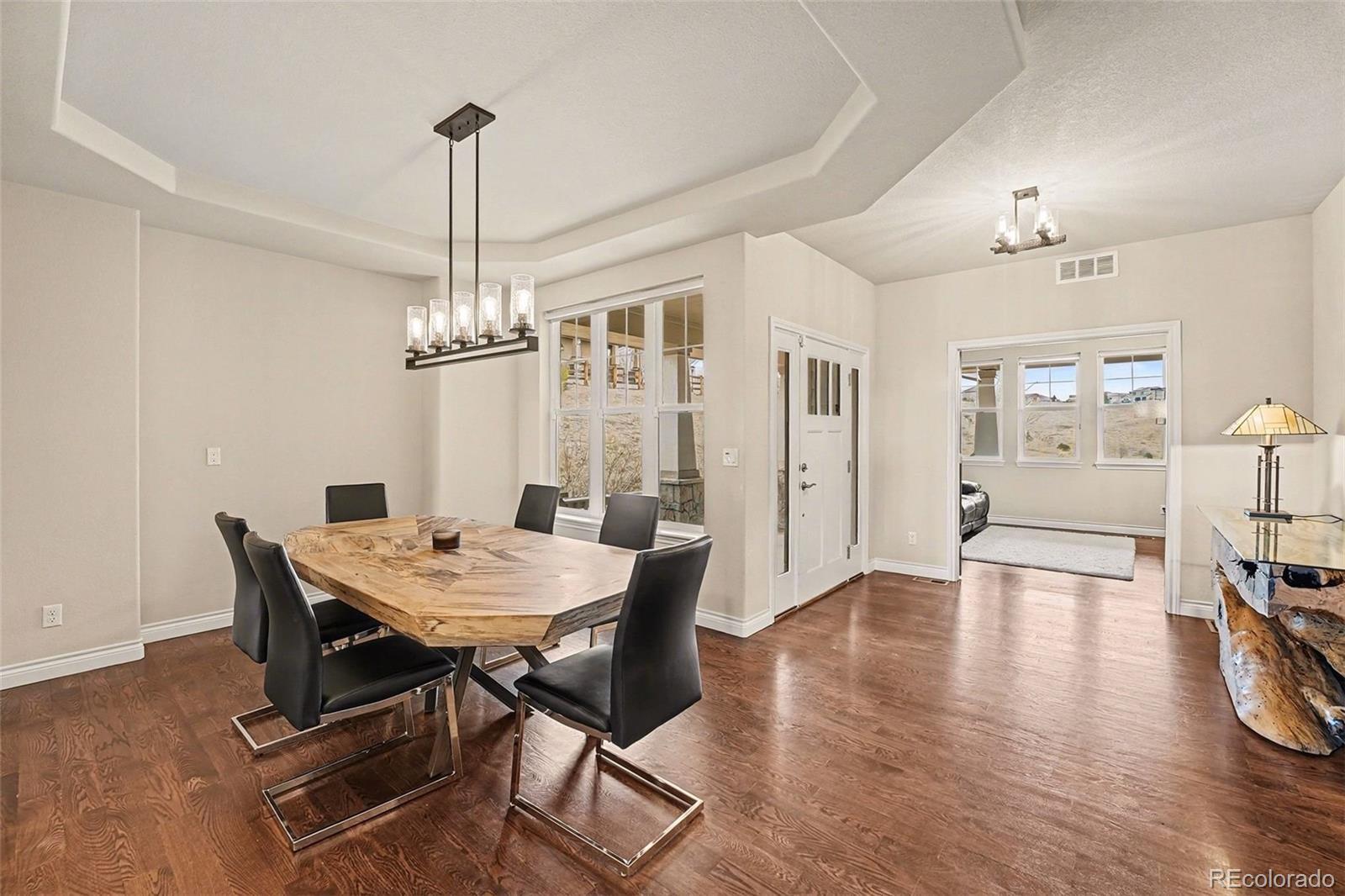 Welcome to one of Leyden Ranch’s most special homes—tucked at the end of a quiet cul-de-sac with sweeping, completely unobstructed mountain views. Backing to open space, this home offers a rare blend of privacy, peace, and true Colorado beauty. Designed for main-level living, this impeccably maintained home features an open floor plan filled with thoughtful upgrades. At the heart of the home is a chef’s kitchen with leathered granite countertops, high end cabinetry with plentiful storage, and a butler’s pantry. The layout flows beautifully into the main living areas- perfect for hosting holidays, or quiet evenings with the mountains as your backdrop. The spacious main-floor primary suite includes an oversized en-suite bath with distinctive tilework, a soaking tub, and generous closet space which is conveniently connected to the laundry room. Closet and storage space is abundant throughout the home, making it easy to stay organized and clutter-free. Downstairs, enjoy the flexibility of a finished basement plus a large unfinished area. Ideal for future expansion, a workshop, hobby space, or simply even more storage. Practical upgrades add everyday peace of mind, including a fully monitored alarm system, seven security cameras with 360° coverage, and fully owned, transferable solar panels that keep electric bills incredibly low (often under $50/month, even in summer). Enjoy true “easy living” with an HOA that handles the heavy lifting: driveway and sidewalk snow removal plus professionally maintained landscaping including mowing, fertilizing, and pruning. If you’ve been waiting for a home with views, privacy, high-end finishes, main-floor primary living, and a lifestyle that feels both elevated and effortless, this is the one.