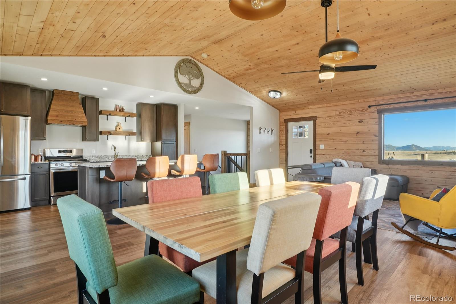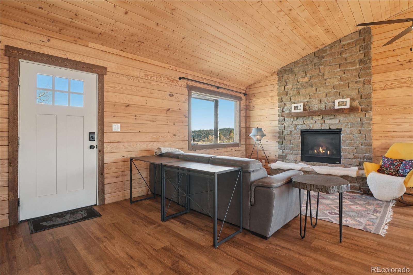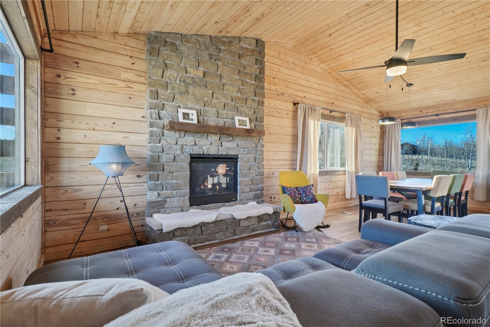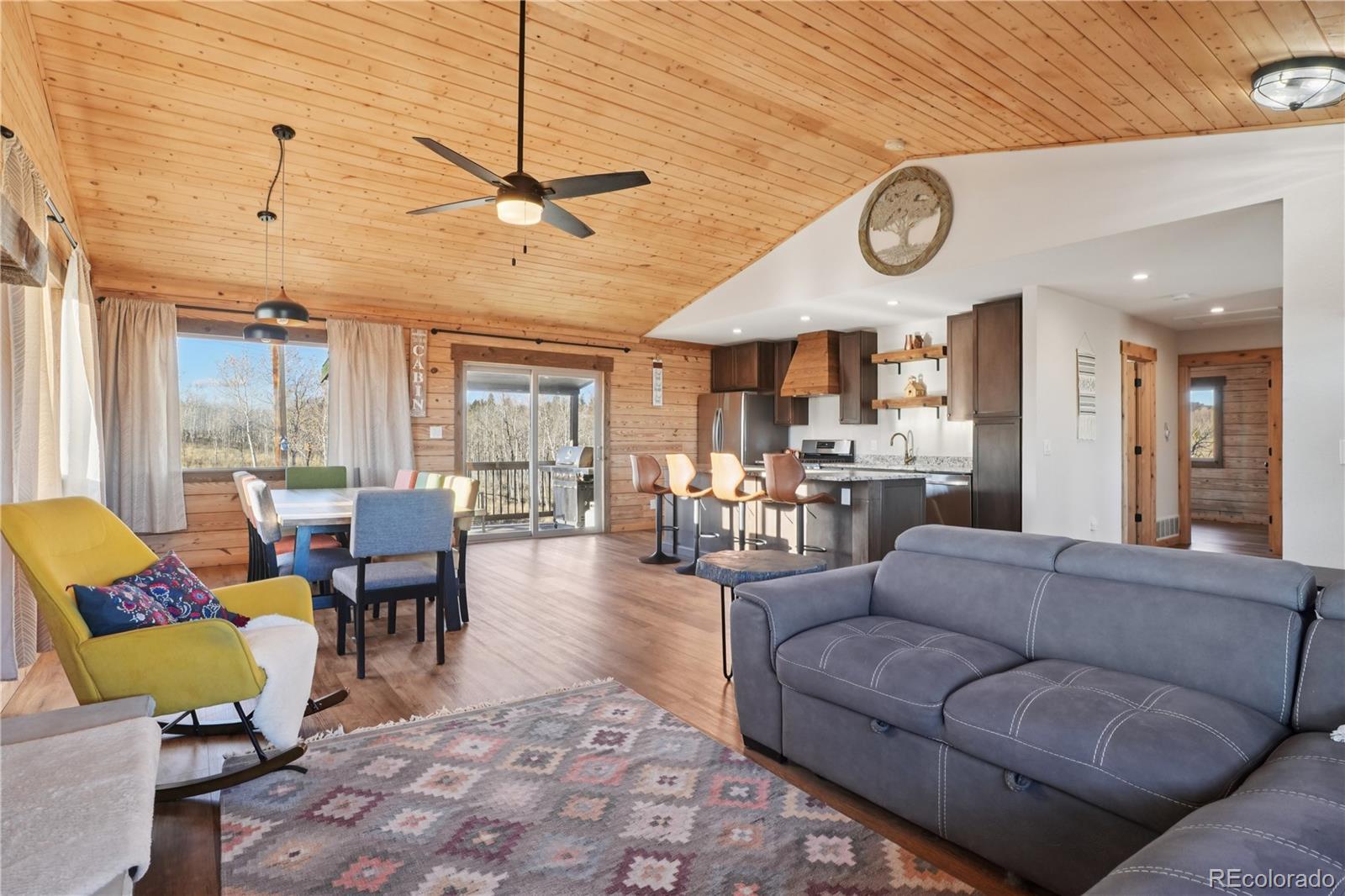Your fully furnished mountain retreat awaits! A seamless blend of rustic charm and modern comfort, this turn-key sanctuary rests on just over 5 scenic acres with expansive views with a thoughtfully designed 2,496 square foot living space. Step inside the main level where vaulted tongue-and-groove ceilings, abundant natural light, rich hardwood flooring, and a cozy gas fireplace create a warm and inviting atmosphere. The fully stocked kitchen is a chef’s dream, featuring stainless steel appliances, stunning granite countertops, generous cabinetry, and a spacious island perfect for cooking and entertaining. The finished lower level offers exceptional versatility, complete with a large living area, second kitchen, guest suite, bonus flex room and walk-out access to a private hot tub—ideal for relaxing under the stars. A gated driveway leads to ample parking for cars, RVs, and all your adventure gear. Located about an hour from Breckenridge and Buena Vista, and surrounded by rolling meadows and scenic trails, this property is a haven for outdoor enthusiasts and serenity seekers alike. Whether you're looking for a year-round residence, a weekend escape, or an investment property, this mountain retreat has everything you need to start making unforgettable memories.