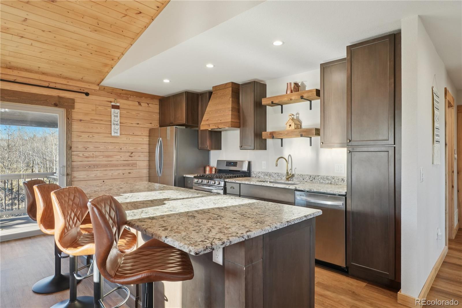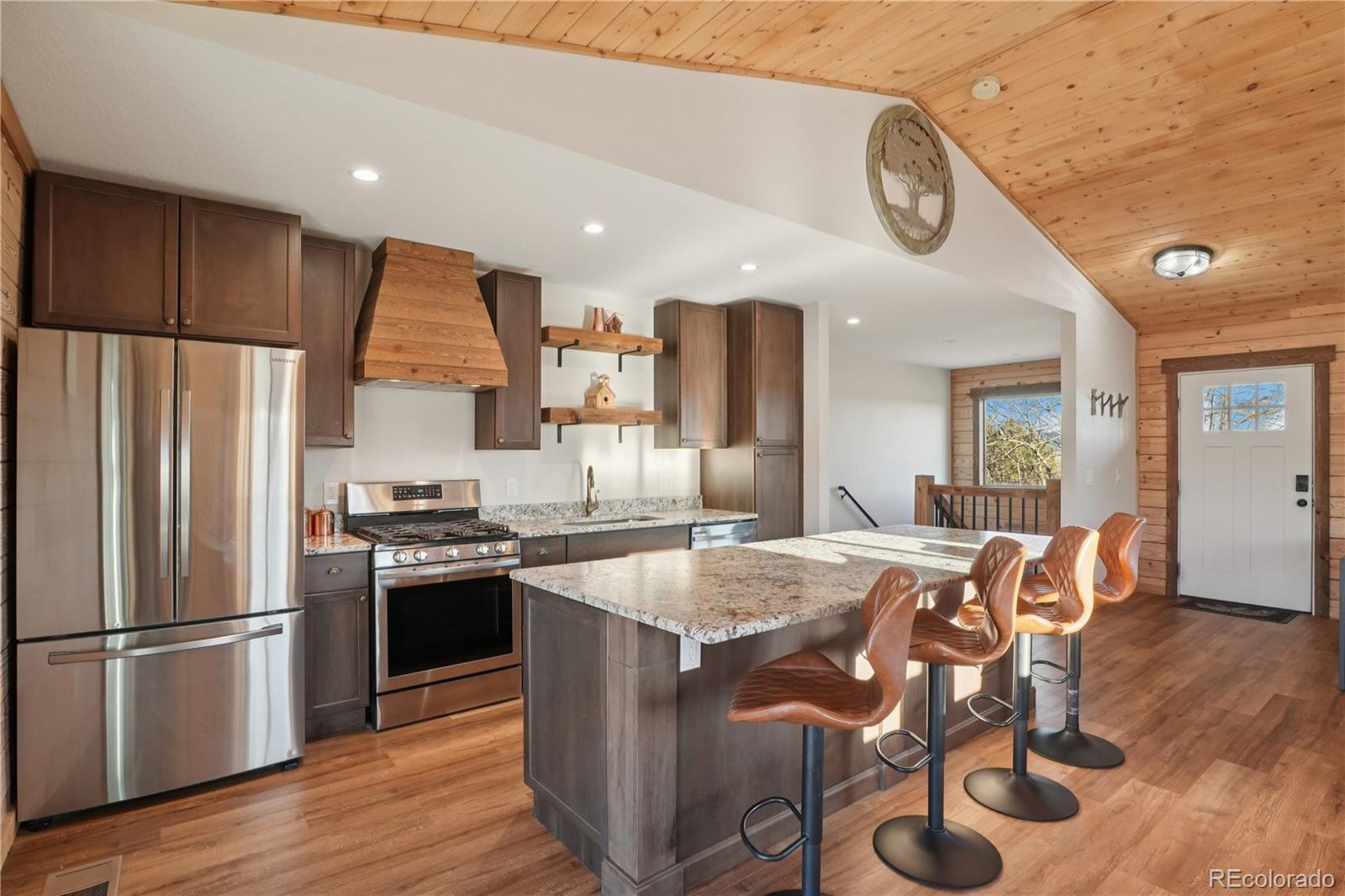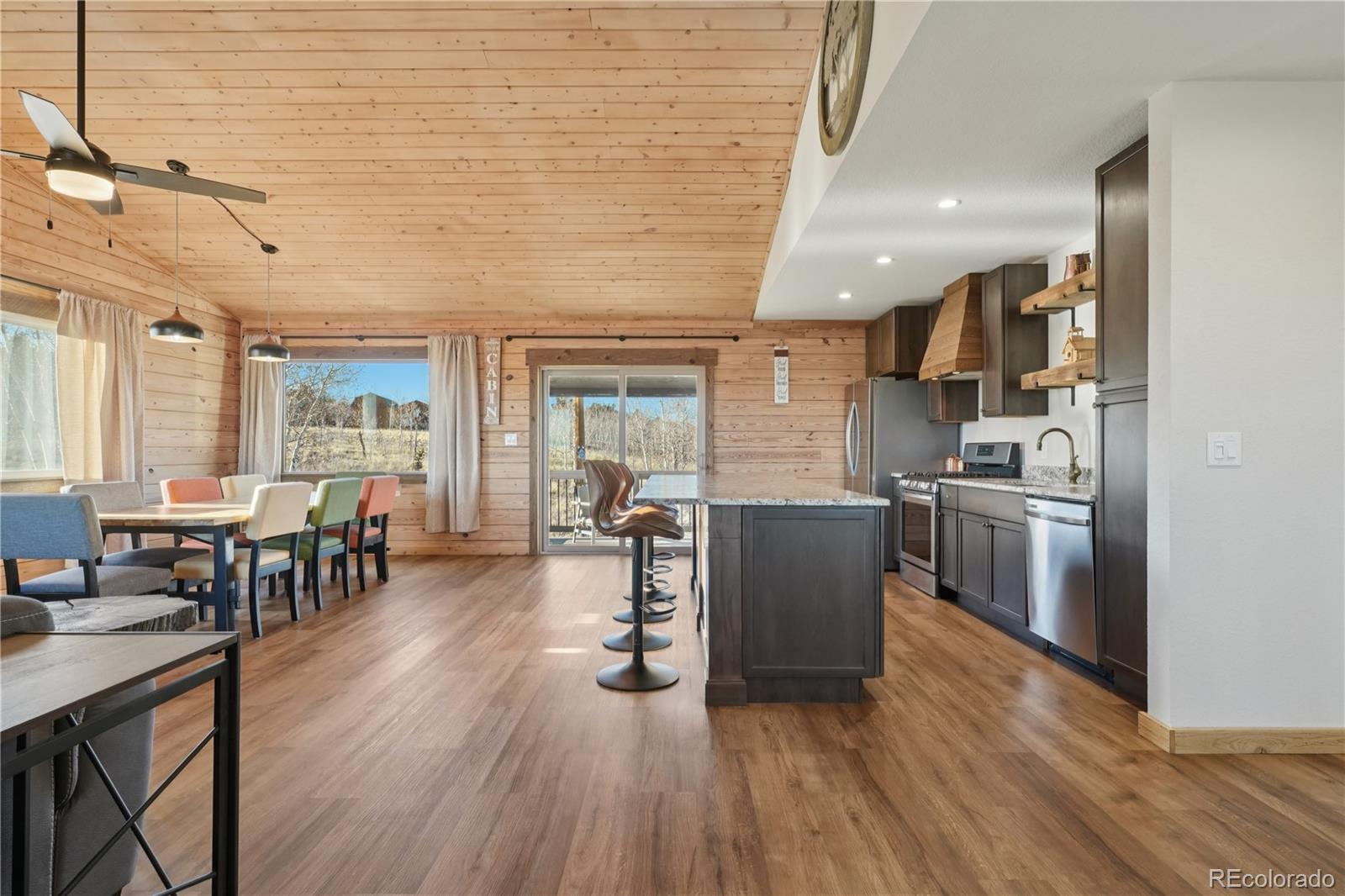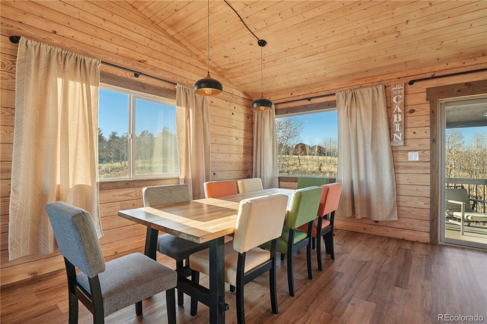 Your fully furnished mountain retreat awaits! A seamless blend of rustic charm and modern comfort, this turn-key sanctuary rests on just over 5 scenic acres with expansive views with a thoughtfully designed 2,496 square foot living space. Step inside the main level where vaulted tongue-and-groove ceilings, abundant natural light, rich hardwood flooring, and a cozy gas fireplace create a warm and inviting atmosphere. The fully stocked kitchen is a chef’s dream, featuring stainless steel appliances, stunning granite countertops, generous cabinetry, and a spacious island perfect for cooking and entertaining. The finished lower level offers exceptional versatility, complete with a large living area, second kitchen, guest suite, bonus flex room and walk-out access to a private hot tub—ideal for relaxing under the stars. A gated driveway leads to ample parking for cars, RVs, and all your adventure gear. Located about an hour from Breckenridge and Buena Vista, and surrounded by rolling meadows and scenic trails, this property is a haven for outdoor enthusiasts and serenity seekers alike. Whether you're looking for a year-round residence, a weekend escape, or an investment property, this mountain retreat has everything you need to start making unforgettable memories.