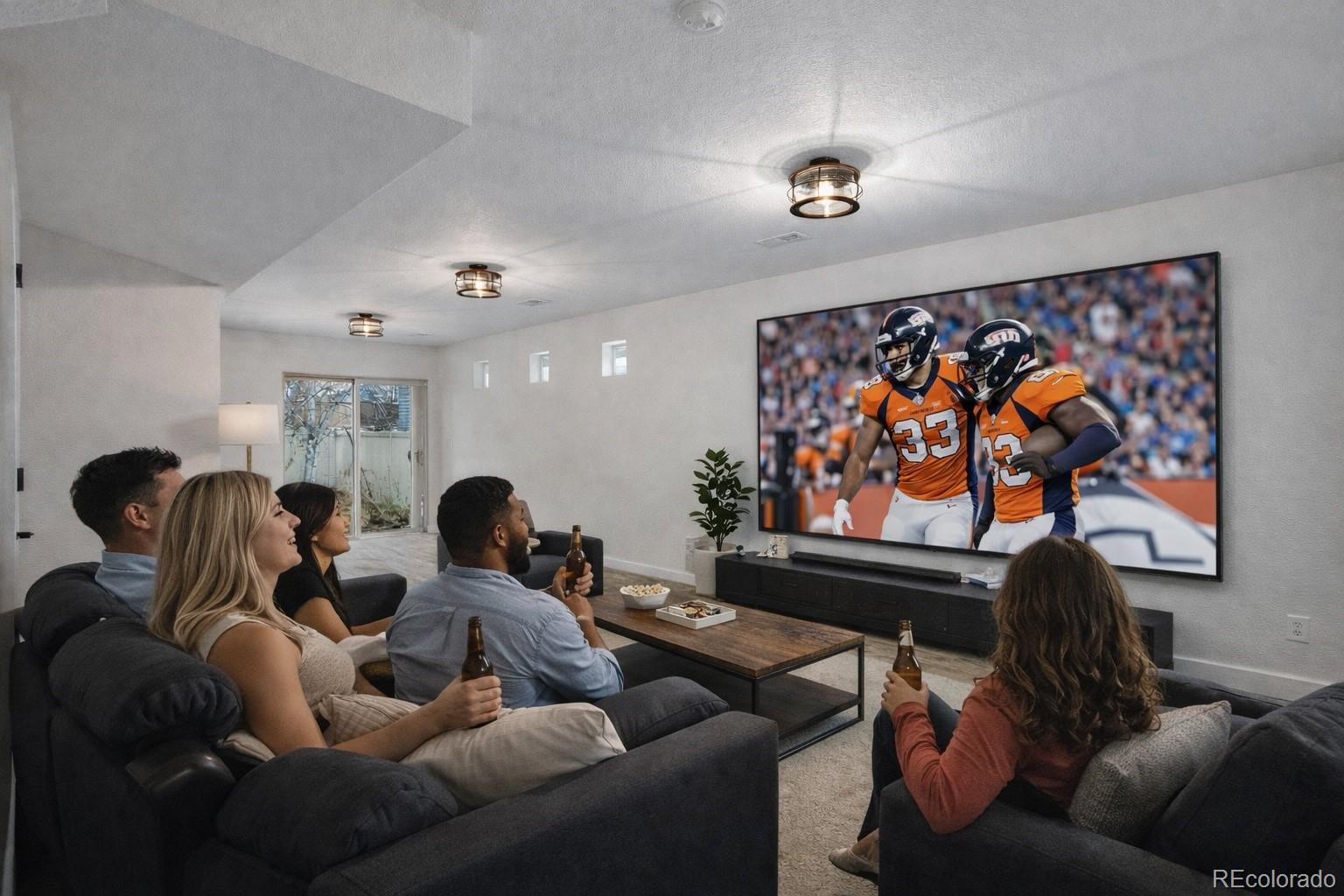 Welcome to 5188 Andes Way, featuring one of the coolest and most versatile floor plans in Denver. The stylish paver driveway leads you into your private cul-de-sac and attached two-car garage—setting the tone for what’s to come. This home is thoughtfully designed for modern living and effortless entertaining with an open, functional layout throughout. The lower level offers a spacious great room that easily serves as a home theater perfect for Broncos game-day gatherings, a workout area, or both. With incredible flexibility, this space adapts seamlessly to your lifestyle needs. The main level is beautifully designed with a gourmet kitchen featuring a large island, open dining area, and expansive family room. Step outside to the generous deck and enjoy breathtaking Colorado sunsets, or head to the additional deck off the kitchen—ideal for outdoor barbecues and entertaining. Upstairs, the layout is ideal with a large primary suite complete with an oversized walk-in closet, two additional bedrooms, and a full bath for family or guests. Convenient upstairs laundry adds to the home’s everyday ease and functionality. Just blocks away, the Green Valley Ranch Recreation Center offers an impressive array of amenities and community-focused programs. Enjoy a fully equipped fitness center with cardio machines, weight training, group exercise classes, gymnasium, game room, and multipurpose spaces. In November 2024, a brand-new indoor aquatic center opened featuring a lazy river, lap pool, leisure pool, waterslide, water features, and family changing rooms. Outdoor amenities include baseball and soccer fields, basketball courts, and year-round recreation opportunities. The center also offers indoor pickleball courts, youth programs, free meals, and complimentary memberships through the MY Denver Card program, along with discounts for qualifying residents. Move-in ready and offering exceptional lifestyle convenience—this home truly has it all. *VIRTUALLY STAGED WITH AI*
