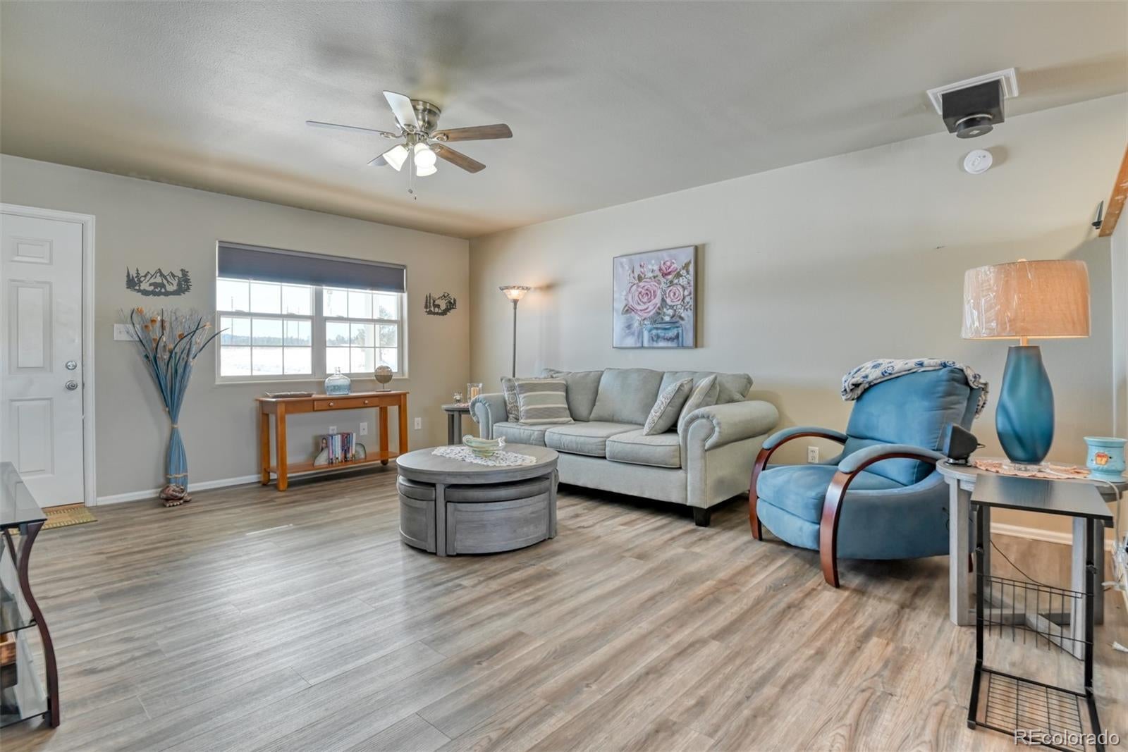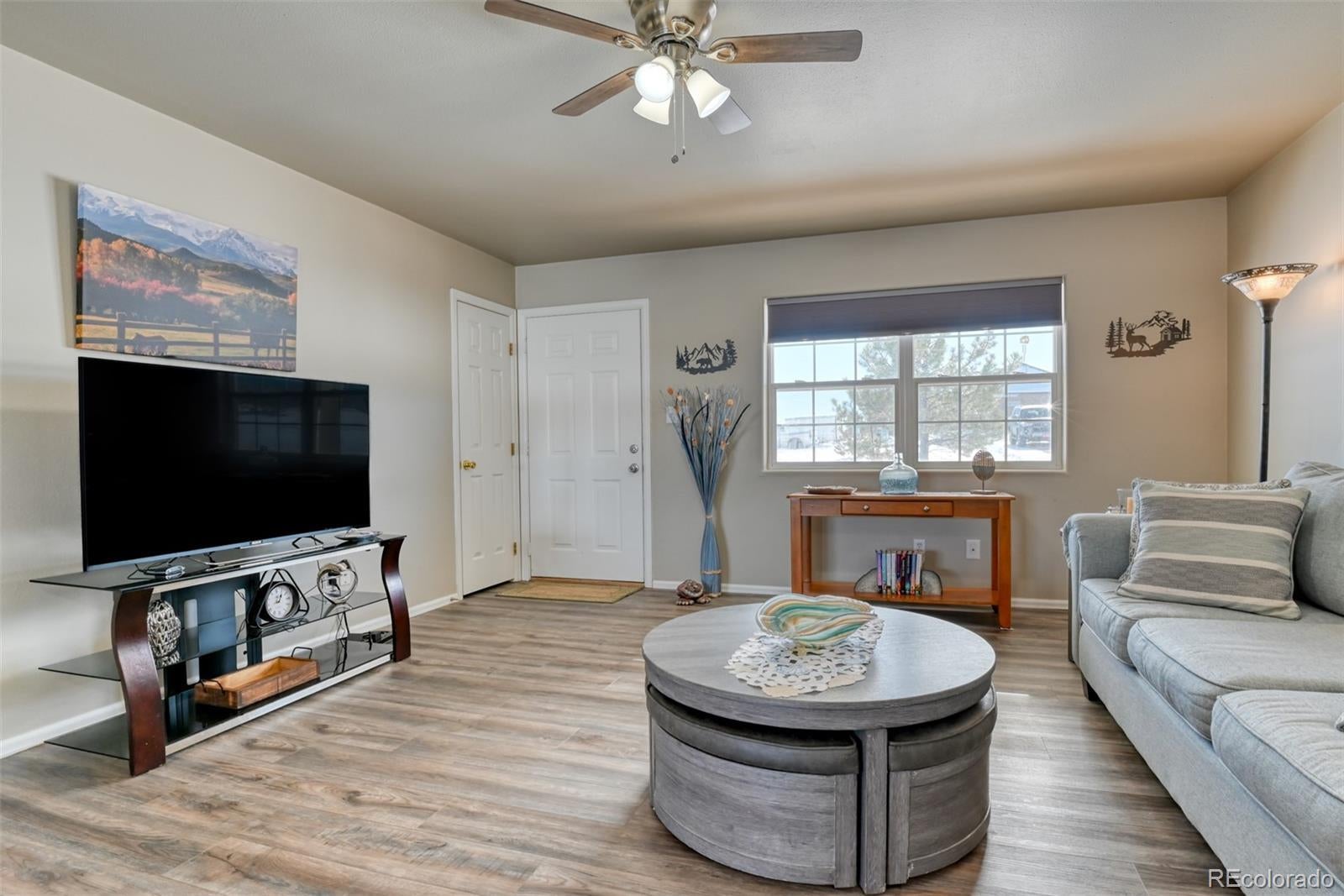 Well-maintained 3-bedroom, 2-bath ranch-style home is set on 2.09 acres in the Colorado Mountain Estates community, offering comfortable single-level living in a peaceful mountain setting. The open-concept floor plan provides a functional flow between the living, dining, and kitchen areas, with ceiling fans throughout the home and abundant natural light. The kitchen features granite countertops, ample cabinetry, a breakfast bar, and a walk-in pantry, providing both practicality and storage. The living room is vented to allow for the addition of a wood stove, offering flexibility for future use. The primary bedroom includes an adjoining bath, while two additional bedrooms and a second bath provide versatile living space. Additional interior features include luxury vinyl flooring, a laundry area with direct access to the attached two-car garage, on-demand hot water, and a radon mitigation system. Exterior amenities include a concrete patio, a fenced backyard area, and a separate fenced pasture. The corner lot offers open meadow and mountain views. Utilities include a household well, septic system, natural gas, and electricity.
