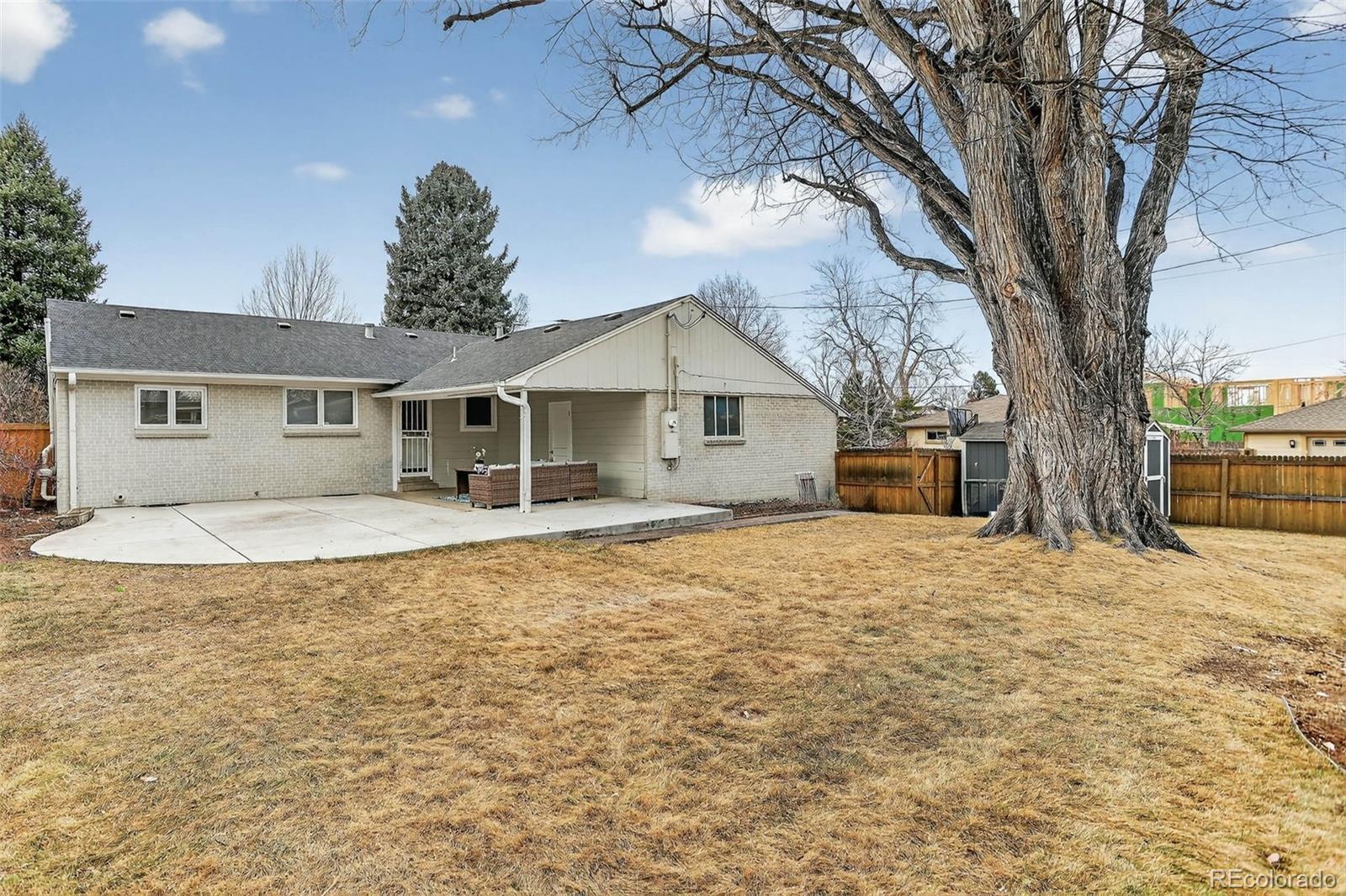 Don’t miss seeing this fantastic brick ranch situated on a large corner lot in a prime neighborhood location. From the minute you pull up to this property you will immediately notice the curb appeal, it is so charming! The covered front porch is a perfect spot to relax with a morning cup of coffee or chat with neighbors. The well-designed floor plan features three bedrooms on the main level, a full bath, living room, dining room, and kitchen. The main floor is filled with natural light and feels spacious and inviting. Cozy up this winter to the wood burning fireplace in the living room. The full basement offers additional living space, including a conforming fourth bedroom for guests or an office. The large family room with a 2nd fireplace could be a playroom or a spot for hosting friends and family. The laundry room and 2nd bathroom are also located in the basement. Enjoy outdoor living with a large back patio, perfect for entertaining, the yard is so spacious! The mature trees in the front and backyard offer privacy in both the winter and summer (and provide great shade in the summer too). The unbeatable location is on a quiet block and is ideal for buyers looking to get into the neighborhood. The property has 2570 square feet and is move in ready but also has pop top or addition potential. The home is around the corner from award-winning Slavens School and close to shops, restaurants, I-25, Cherry Creek, and the Tech Center. Recent updates include new interior and exterior paint, new furnace, new carpet, newer back patio, sewer line, and electrical panel have been replaced.