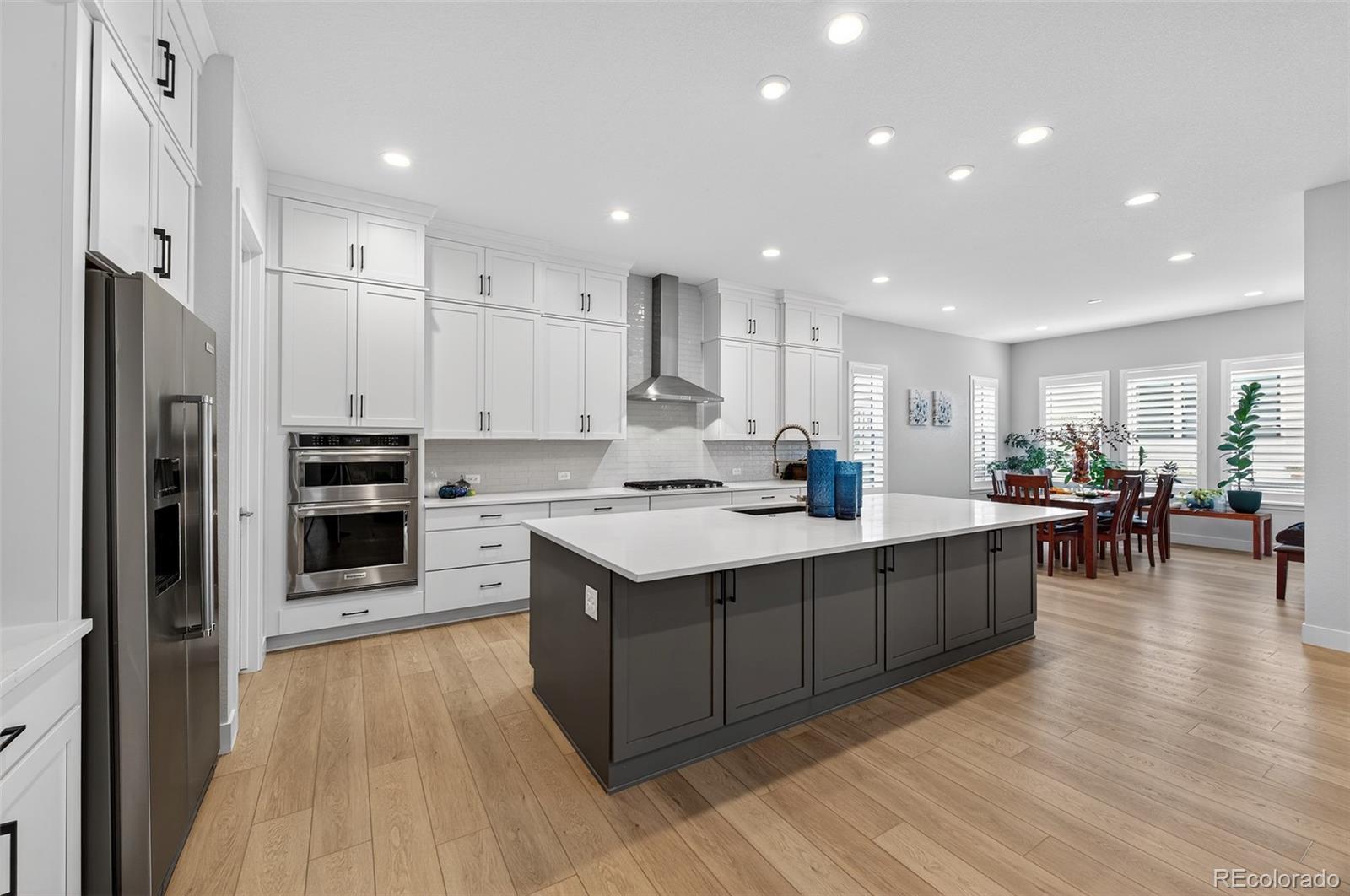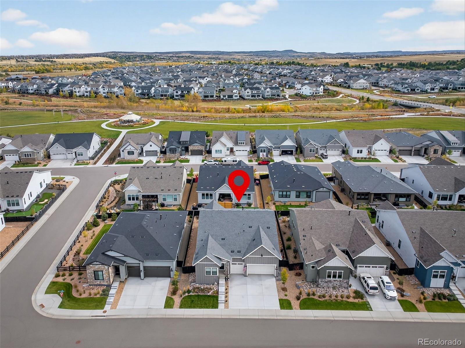 Experience refined single-level living in this 2023-built Stillwater model ranch home located in the highly sought-after Solstice community by Shea Homes. Thoughtfully designed with a spacious, open layout, this four-bedroom, five-bath residence offers over 4,000 finished square feet of modern comfort and functionality. The main level welcomes you with wide-plank flooring, tall ceilings, and a light-filled great room anchored by a sleek gas fireplace. The chef’s kitchen features extended cabinetry, quartz countertops, a large island, stainless steel appliances, double ovens, and a walk-in pantry—perfectly positioned for everyday living or entertaining. The adjoining dining area opens to a covered patio with motorized shade, seamlessly blending indoor and outdoor spaces. The primary suite offers a quiet retreat with a five-piece bath, frameless glass shower, soaking tub, dual sinks, and an oversized walk-in closet. Two additional main-level bedrooms each feature en suite or adjacent baths, while the private office provides ideal work-from-home flexibility. The finished basement expands your lifestyle options with a large recreation room, wet bar with beverage fridge, guest suite, full bath, and abundant storage. A spacious three-car garage, smart thermostat, and tankless water heater add convenience and energy efficiency throughout. Enjoy Solstice’s exclusive amenities including a clubhouse, pool, fitness center, parks, trails, and community events. Located minutes from Chatfield State Park, Roxborough Park, and the Botanic Gardens at Chatfield, this home combines high design with Colorado’s outdoor lifestyle. Move-in ready, meticulously maintained, and positioned in one of Douglas County’s premier communities—this Solstice ranch represents the perfect balance of quality, comfort, and connection.
