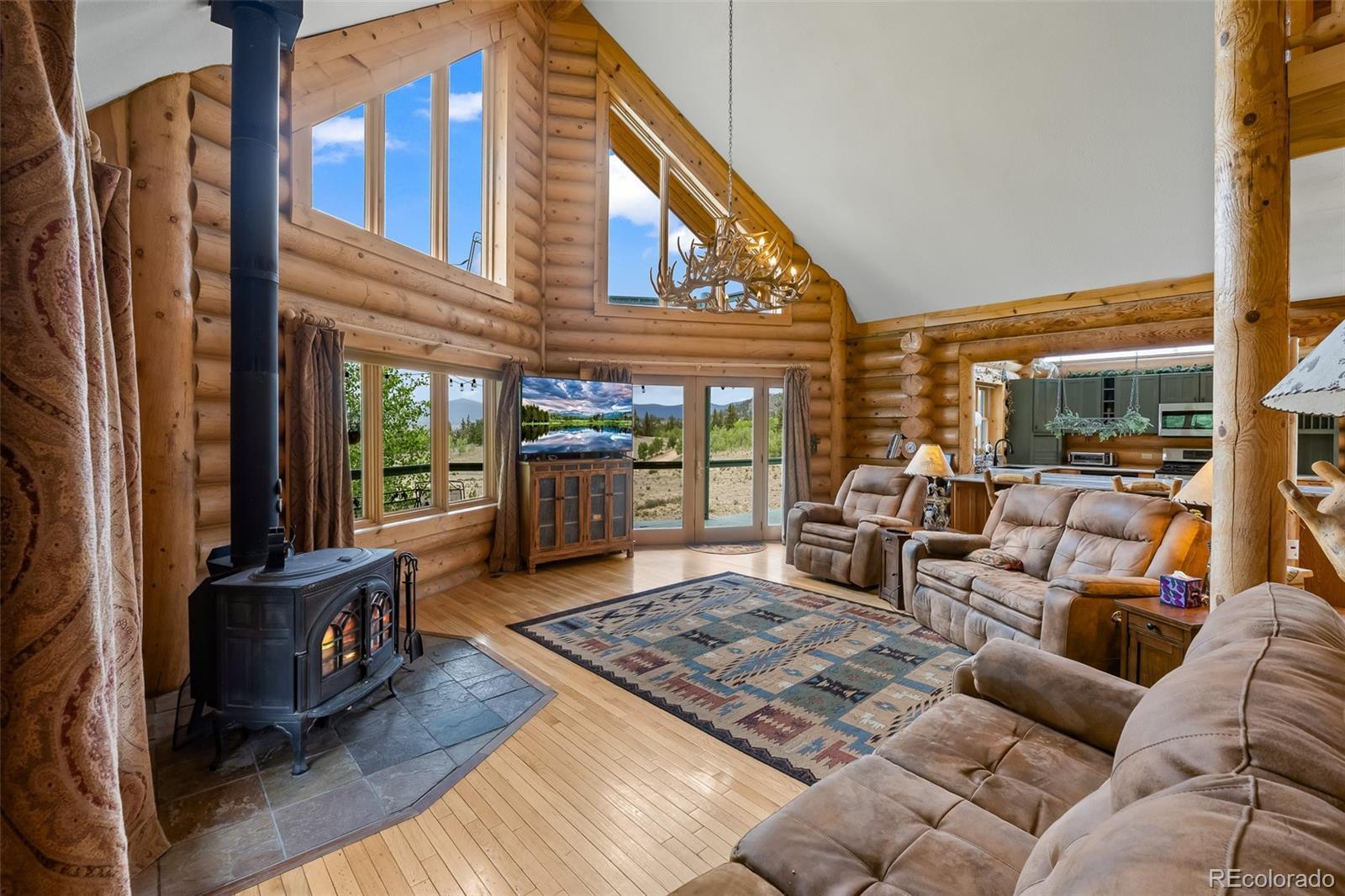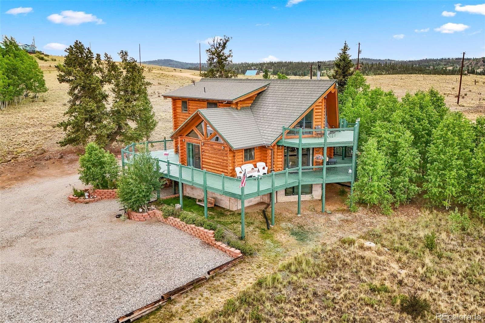 Nestled within the pristine wilderness setting of Como, Colorado, this extraordinary custom log home presents an unparalleled sanctuary of luxury and natural splendor. This meticulously crafted 4-bedroom, 3-bathroom residence spans 2,434 square feet of thoughtfully designed living space, harmoniously blending rustic elegance with modern sophistication. The heart of this remarkable home features a large modern kitchen, perfect for culinary enthusiasts, while the main level primary suite offers convenience and comfort. There are ample storage solutions throughout the property, ensuring seamless organization and functionality. Step outside to discover the crown jewel: a stunning wrap-around deck complemented by a dramatic 3rd level observation deck, providing breathtaking panoramic views of the surrounding landscape. The treed lot ensures privacy while maintaining easy year-round access. Practical amenities include a 1-car attached garage and an impressive heated and insulated 2,080-square-foot detached heated 2-car garage featuring workshop space, and partially finished living quarters, offering endless possibilities for recreation or additional accommodation. This exceptional property delivers the perfect balance of seclusion and accessibility, while remaining conveniently located near recreational amenities. The combination of quality construction, generous outdoor spaces, create an incomparable living experience for those seeking refuge from the ordinary. This represents not merely a home, but a lifestyle destination where luxury meets the great outdoors. The voluntary HOA provides exceptional amenities including hiking trails, frisbee golf, playground facilities, snowshoeing access, BBQ pavilion, comfort station with showers, basketball courts, and RV dump station. This property represents a rare opportunity to own a quality-built custom log home that seamlessly combines mountain luxury with practical functionality.