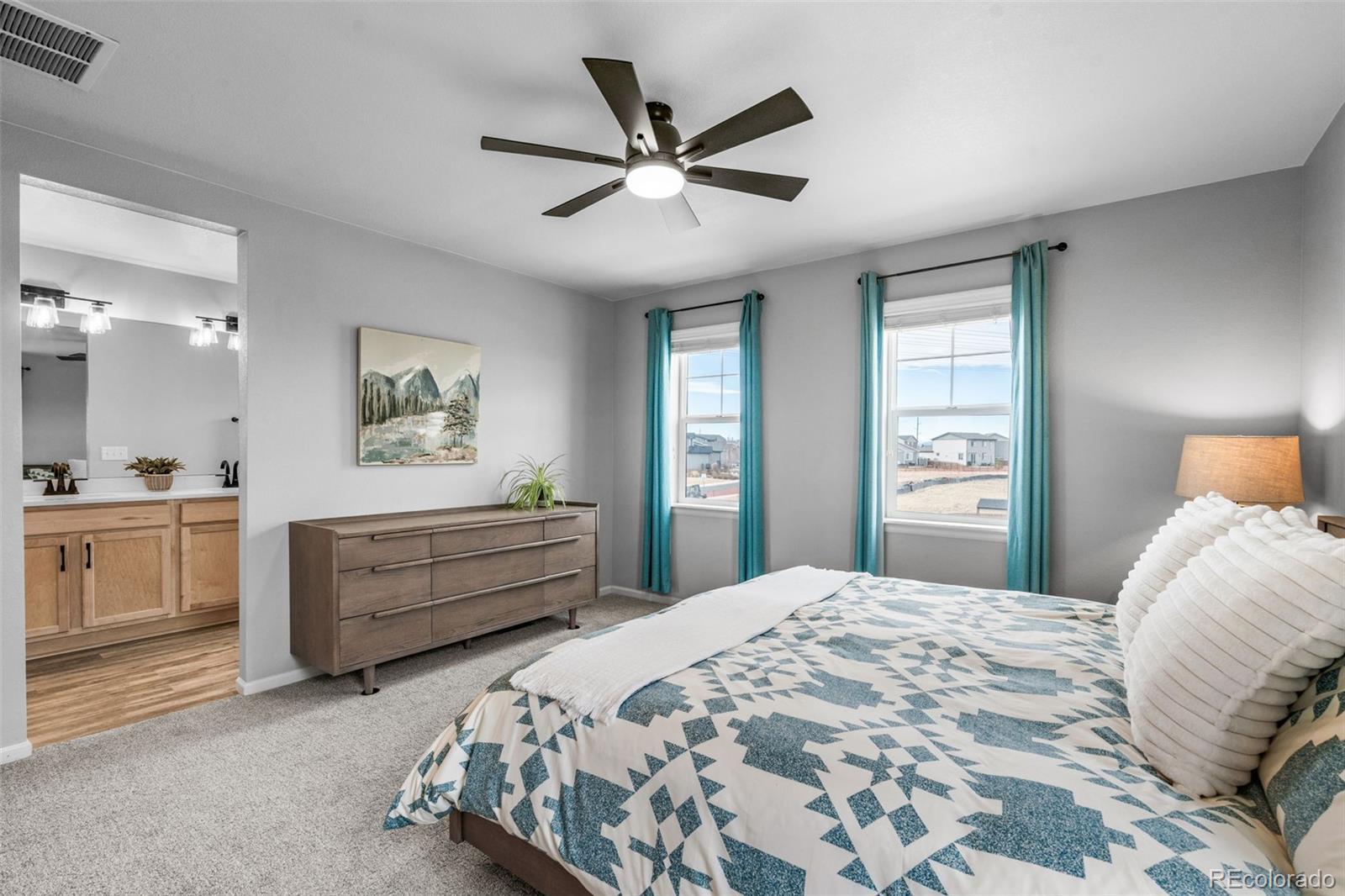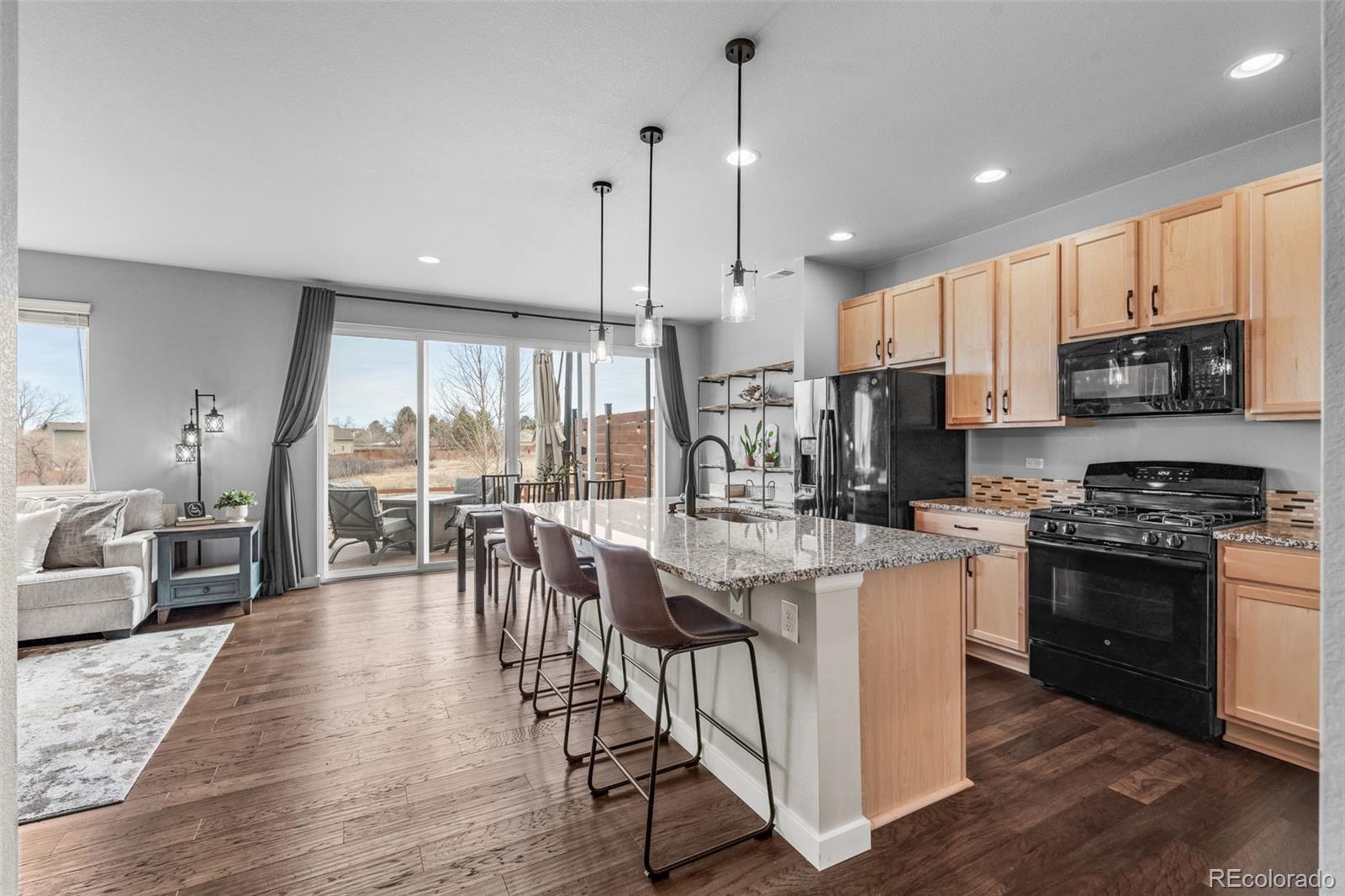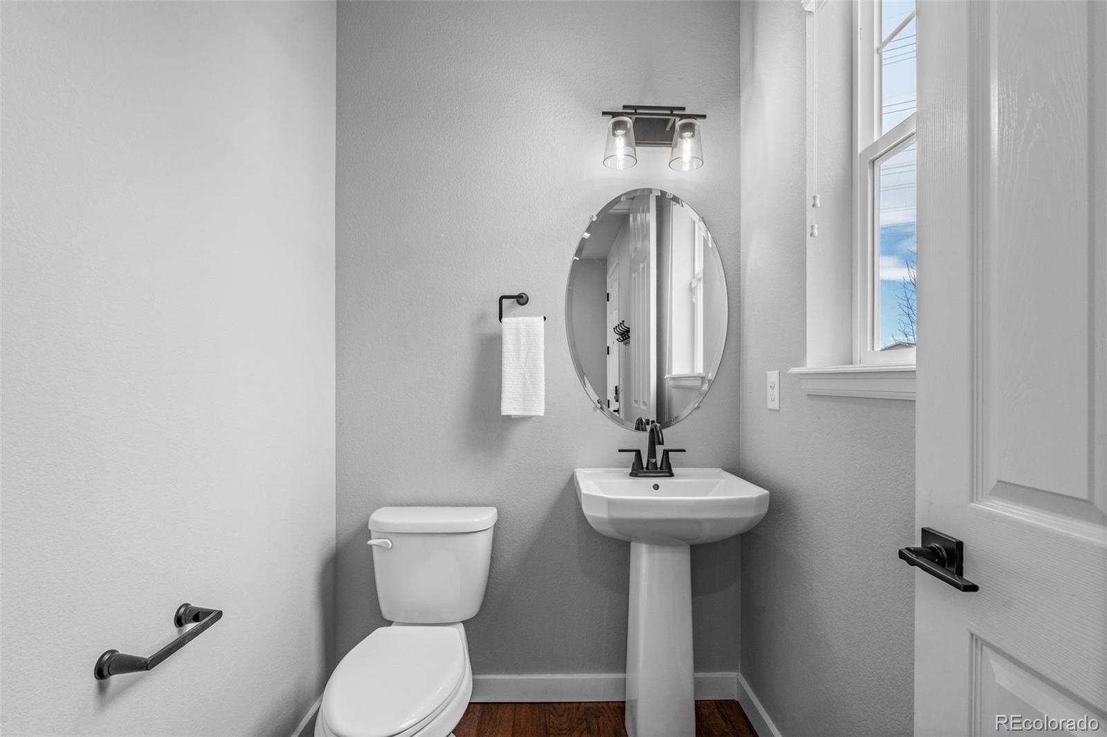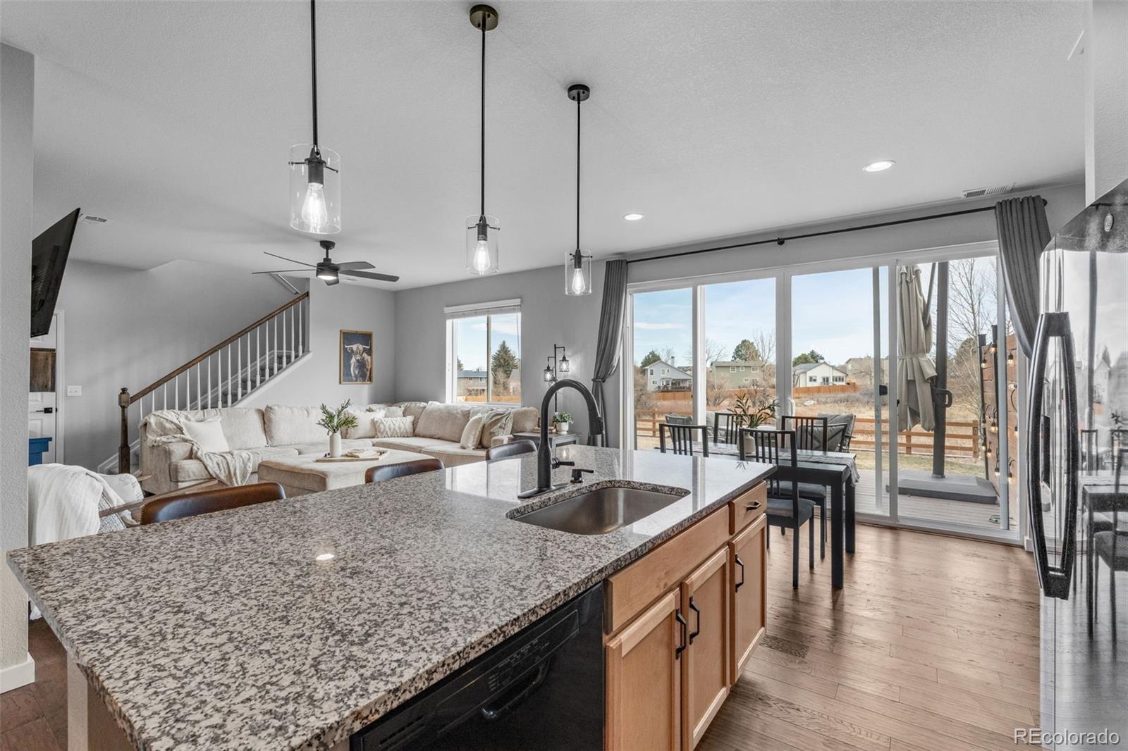 Welcome home to this gorgeous 3-bedroom, 3-bath residence offering over 1,900 sq ft of beautifully designed living space in the heart of Founders Village. From the moment you enter, you’ll notice an abundance of natural sunlight pouring through large windows, enhanced by recently installed engineered wood flooring throughout the first floor, creating a bright, warm, and inviting atmosphere.Set on a premium lot backing to protected open space, this home offers rare privacy and serene views. The fenced backyard is ideal for relaxing, entertaining, or enjoying peaceful Colorado evenings with nature as your backdrop, no rear neighbors, just sprawling open space! Inside, the layout is both functional and stylish, featuring recently updated hardware and fixtures throughout for a modern, cohesive look. Both the primary and guest bathrooms showcase recent quartz upgrades, while the home also includes recent luxury pet- and stain-resistant carpet, providing comfort and durability.Enjoy peace of mind with a recent Class 4 impact-resistant roof, and take advantage of the unbeatable location! Just a short walk to Founders Park with easy access to trails, playgrounds, and open space. A low HOA includes access to the neighborhood swimming pool, making this home as practical as it is beautiful.Combining thoughtful upgrades, natural light, privacy, and an exceptional location, this Founders Village home truly stands out!