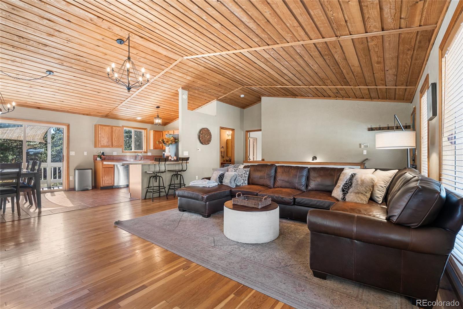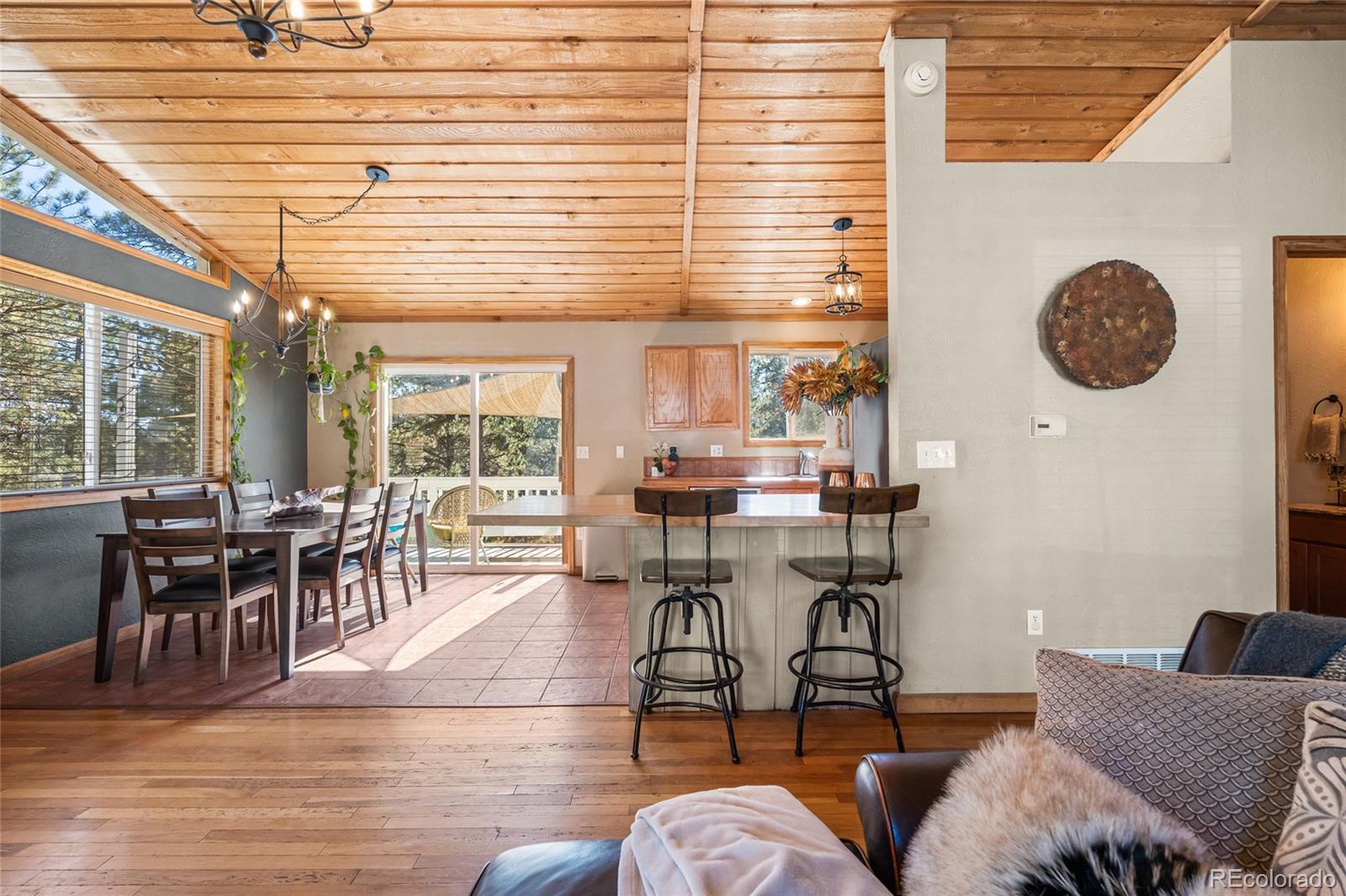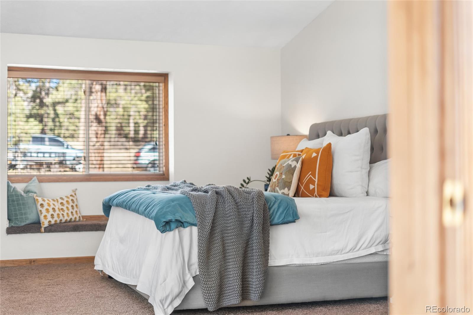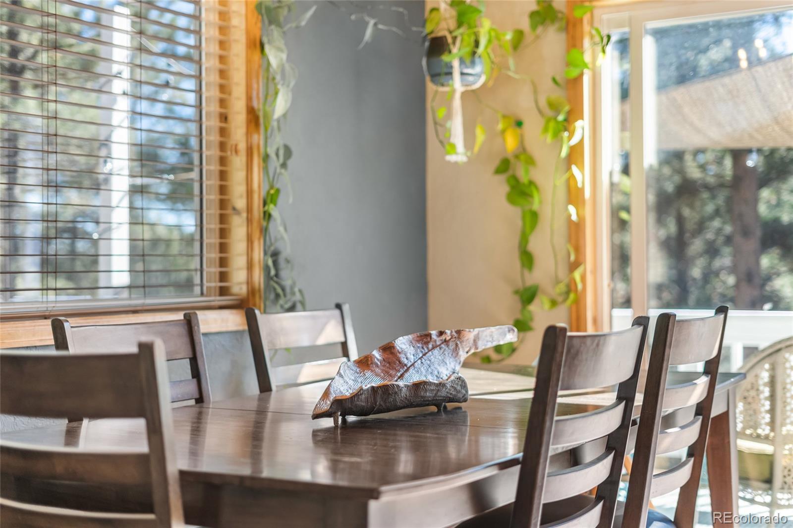 Tucked into the pines on just over an acre, this CUTIE on Kudu Trail is the kind of mountain starter home buyers wait for—but the wait is OVER; comfortable, updated, and surrounded by quiet Colorado beauty. This gem offers an easy, functional layout with vaulted ceilings, abundant natural light, and a cozy gas-log fireplace that instantly makes the great room the heart of the home. The kitchen flows effortlessly to a wrap-around deck, giving you that perfect indoor-outdoor lifestyle for morning coffee, grilling, or simply soaking in the peace of the foothills. The main-level primary suite keeps daily life simple with a walk-in closet, vaulted ceilings, and private deck access. Two additional bedrooms downstairs create flexible space for guests, a home office, additional bedroom, or multi-generational living. With over an acre of usable land, you’ll find space for pets, play areas, future landscaping, and Colorado evenings around a fire pit. The property also includes RV parking, a newer asphalt driveway, garage and deck freshly stained, concrete patio, and improvements to drainage and grading—making it a smart and practical first purchase. Commuters appreciate the quick access to Hwy 285, while remote workers love the privacy and quiet this location provides. Deer, fox, and hummingbirds are regular visitors. Bailey is known for its small-town charm, friendly community, and endless outdoor recreation just minutes from your door. Whether you're stepping into homeownership for the first time or wanting an affordable foothills retreat, this property offers the right blend of comfort, character, and value. A starter home with room to grow—and a setting you’ll never want to leave.