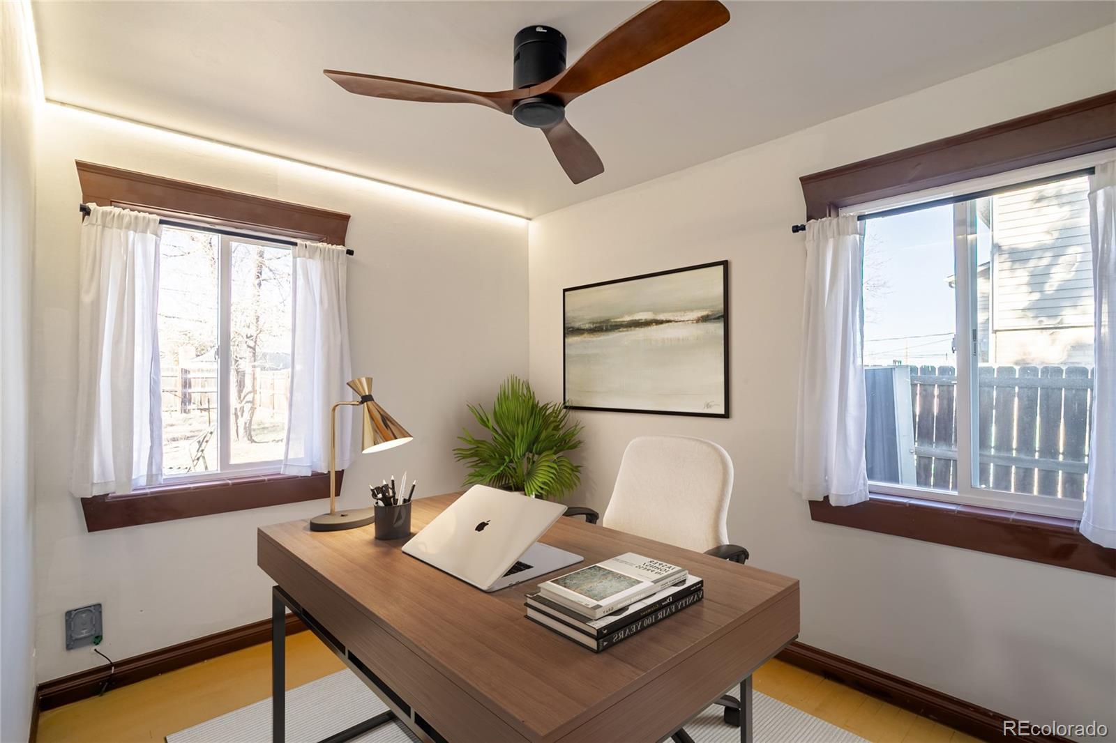 3335 Dexter Street is a truly one of a kind, 2 bedroom, 1 bathroom, artisan crafted mid century mountain home located in the heart of Park Hill North. This character rich Denver property showcases thoughtful design, quality craftsmanship, and intentional upgrades throughout. Inside, the home features luxury custom hardwood carpentry and refined architectural details. Vaulted ceilings maximize light and space, while a custom folding walnut dining table integrated into the kitchen peninsula highlights the home’s artisan craftsmanship. High CRI ribbon lighting provides a warm, near sunlight quality glow throughout the interior. Updates include new HVAC, new windows and doors, and updated appliances. The property sits on a 6,250 square foot lot with generous yard easements, large front and back yards, and back alley access with parking. There is strong potential for a future ADU or second unit, with buyer to verify zoning and use. The home is situated just two blocks from the future Park Hill Park, a major redevelopment of the former Park Hill Golf Course into one of Denver’s largest regional parks. Planned improvements include expansive green space, walking and biking trails, natural open areas, and community focused recreational amenities. This long term investment is expected to significantly enhance neighborhood livability, connectivity, and future value. Close proximity to RiNo, City Park, and downtown Denver completes this exceptional opportunity to purchase a distinctive home in a neighborhood poised for long term growth.