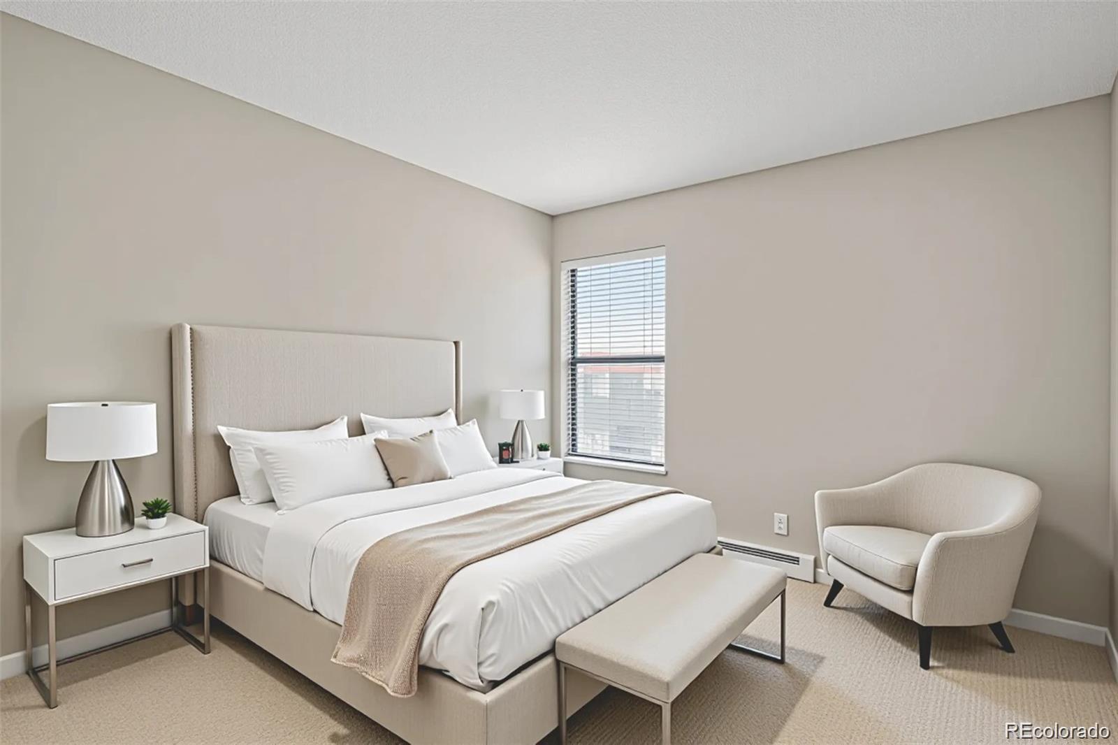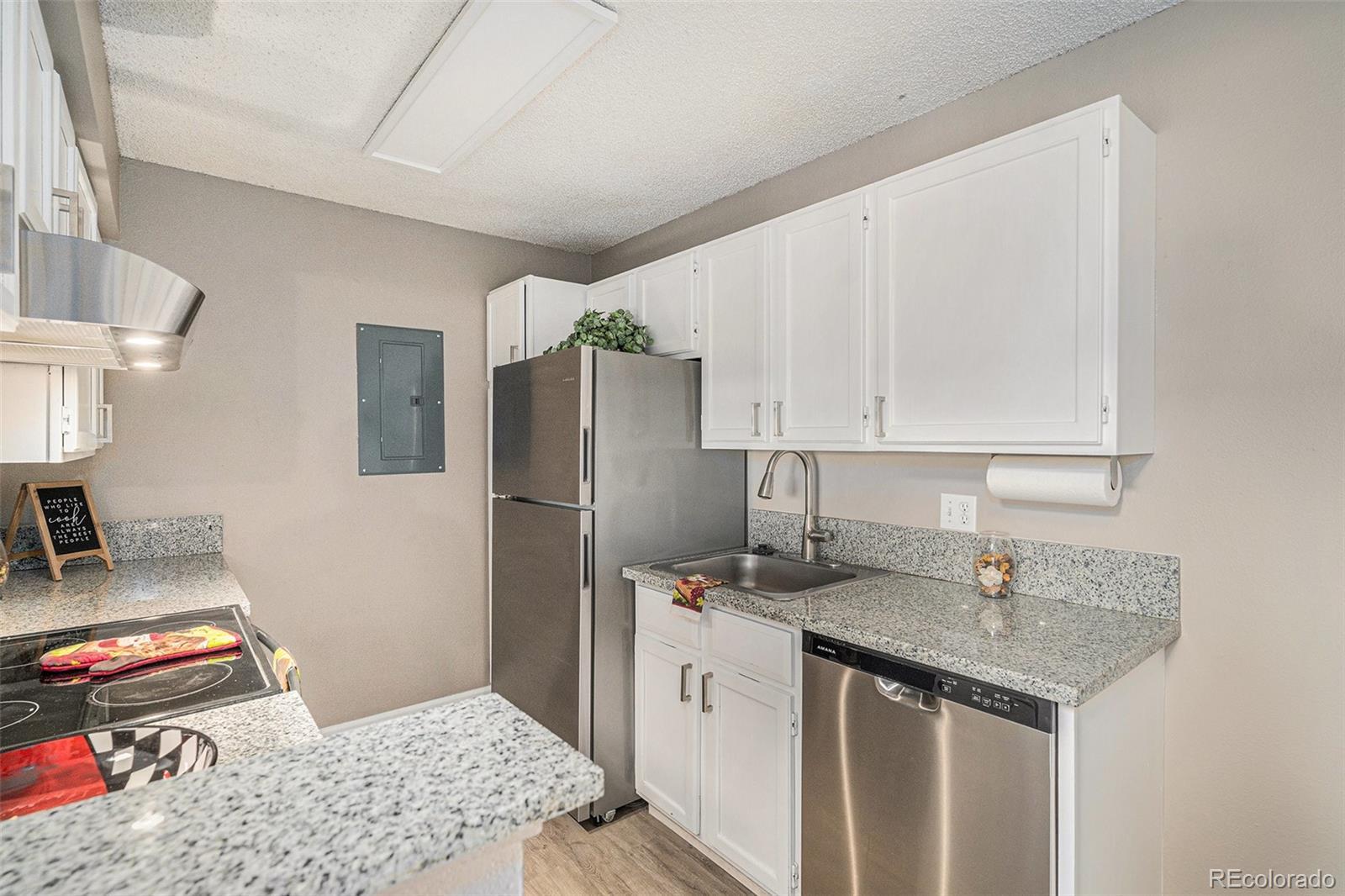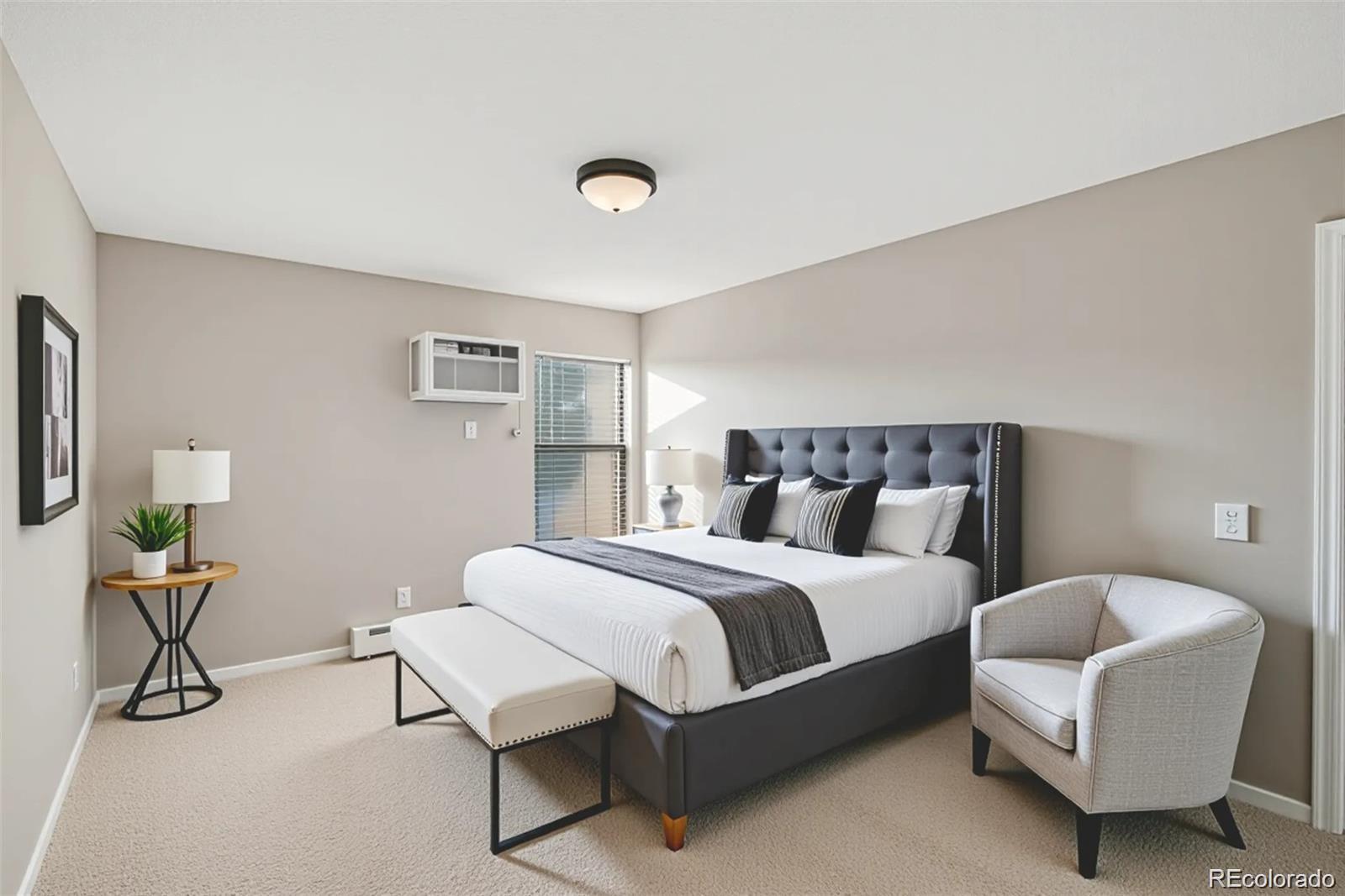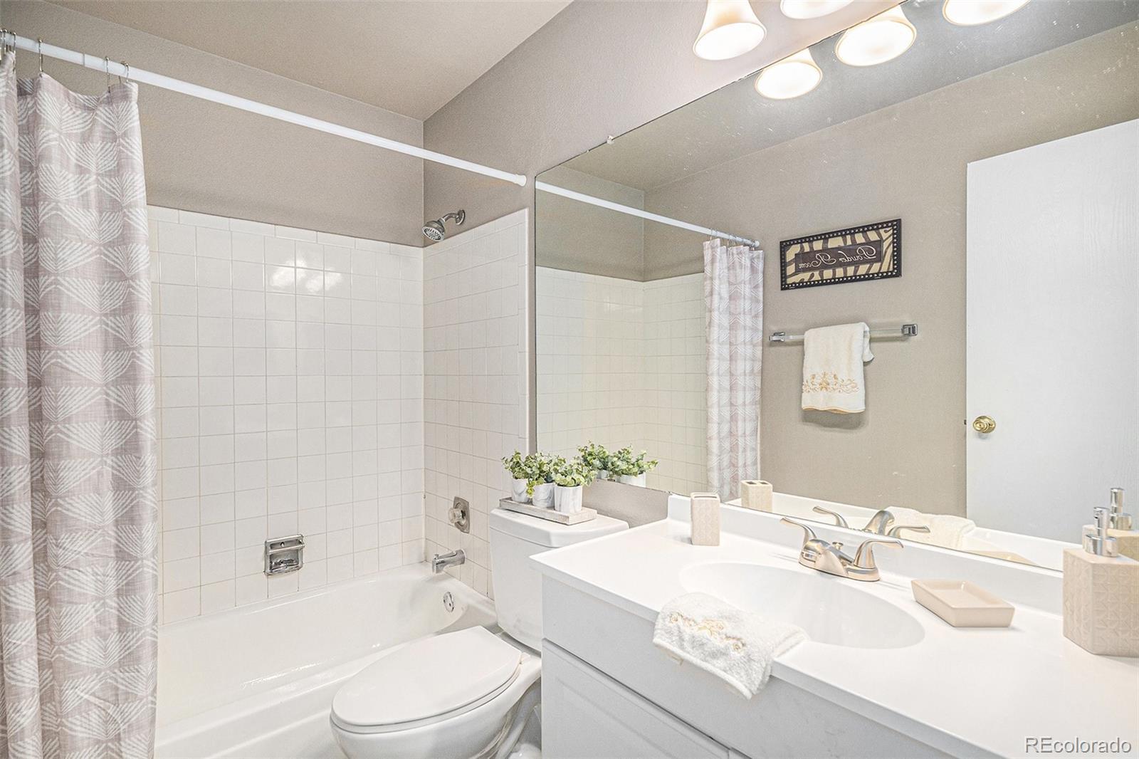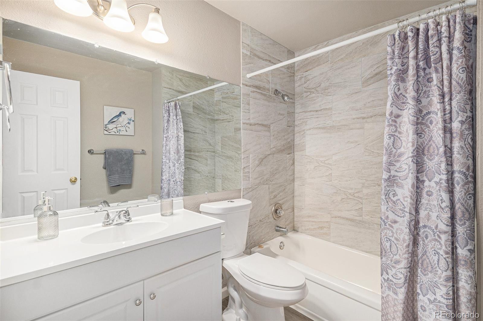 This condo has many great features, NEW carpet; All less than 1 year old: Granite kitchen counter tops, new luxury vinyl plank and carpet flooring and bathroom vanities! Welcome to Oak Park, a gated community tucked away in east Denver with everything you need—pool, clubhouse, walking paths, and even a playground and park right onsite. This move-in ready top-floor condo offers peace and privacy with no neighbors above you and a bright, open layout thanks to vaulted ceilings and a skylight that fills the space with natural light. This condo has many great features, all less than 1 year old: Granite kitchen counter tops, new luxury vinyl plank and carpet flooring and bathroom vanities! Step into a spacious living room featuring luxury vinyl plank flooring, a cozy wood-burning fireplace with whitewashed stone surround, and sliding glass doors that lead to your private balcony. It's the perfect spot for morning coffee or relaxing after work. The kitchen has granite countertops, all stainless appliances, and a convenient breakfast nook. The primary suite is oversized and freshly carpeted, complete with a walk-in closet and updated en-suite bathroom with new vanity and tiled tub surround. A second bedroom and full bath (also updated) offer flexibility for guests, roommates, or a home office. Full-size washer and dryer are included, tucked conveniently in-unit. This home also comes with a 1 car deeded detached garage—no scraping windows come winter—and the HOA fee covers heat, water, trash, and even building maintenance. You'll love the community pool and clubhouse, bbq (one is adjacent to this condo), playground, grass volleyball court and picnic area Don’t miss the chance to live just minutes from Lowry, Cherry Creek, and major transit.