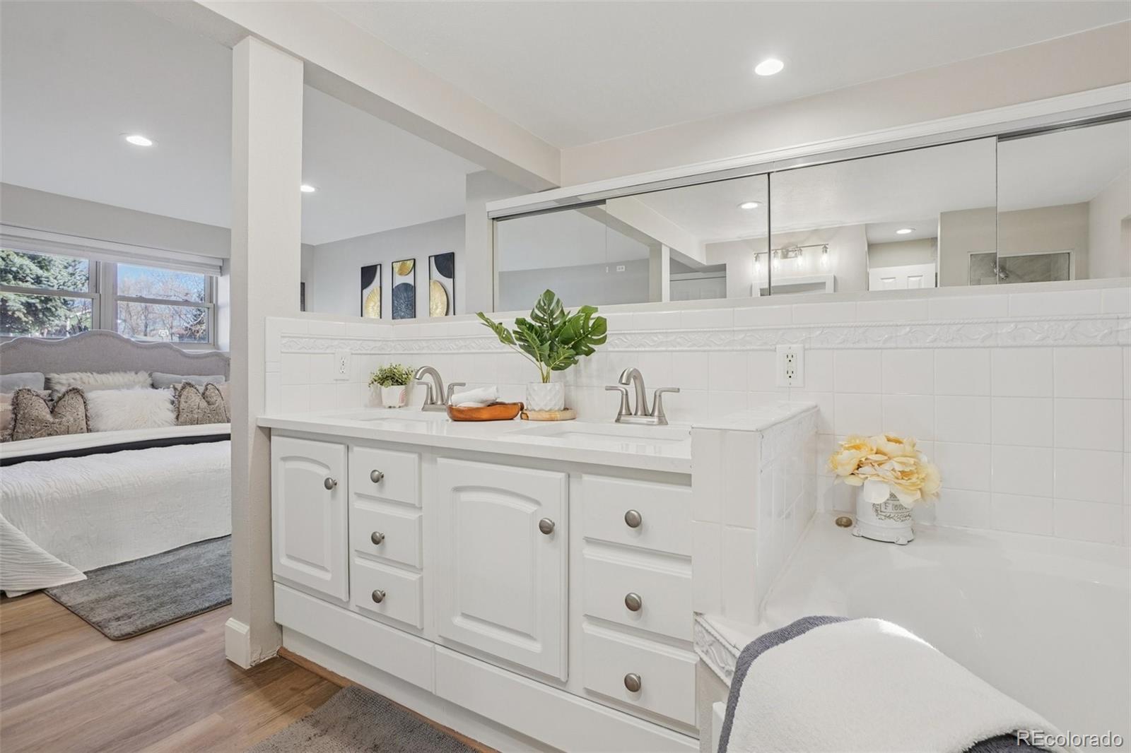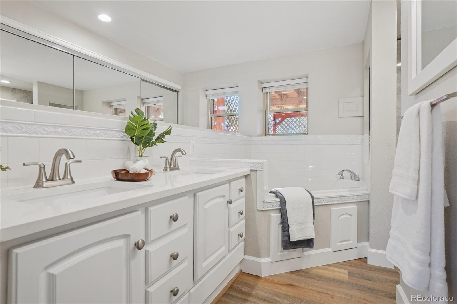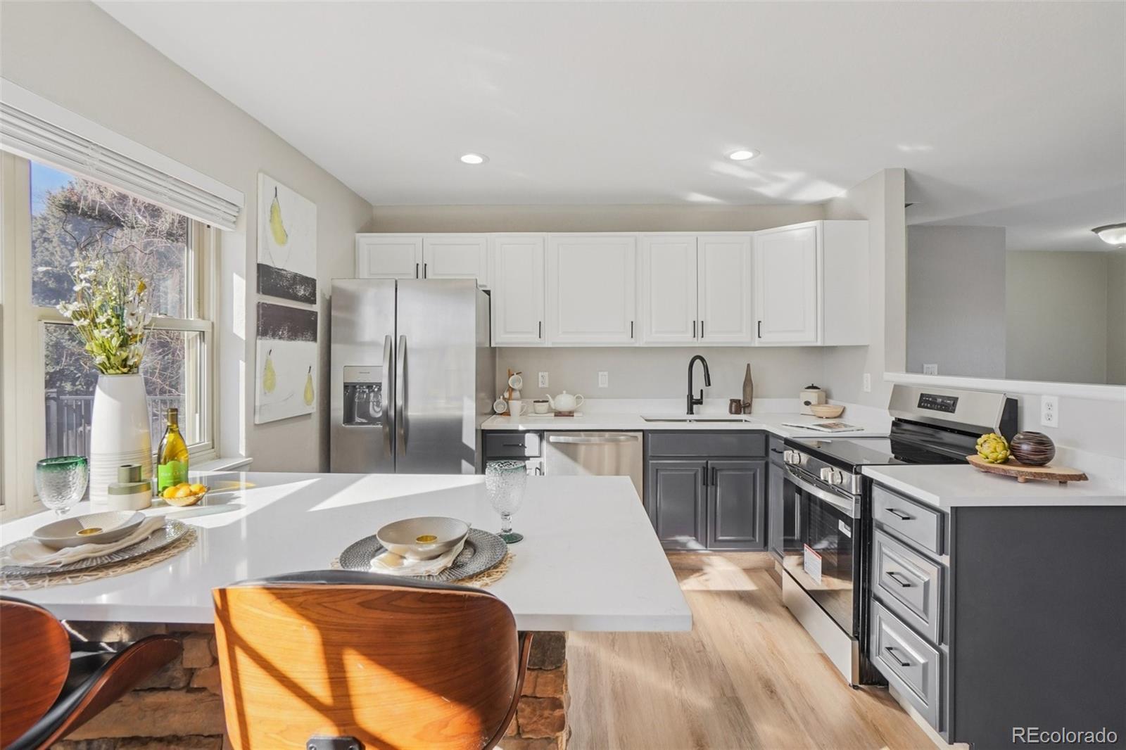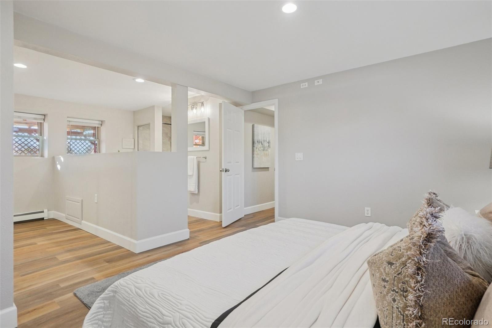 Welcome to this beautiful Westlake bilevel on nearly a quarter acre of fully landscaped yard and a fully renovated interior! You'll love the open feel of the main floor, and the primary suite on the lower level. With 2 main living areas, you have plenty of separation between upstairs and down. Updates include all new flooring, fresh paint, brand new quartz countertops and stainless steel appliances, a 1 year old roof, brand new garage door and garage door opener, new fixtures and a 5 year old Swamp cooler. This home uses baseboard heating for efficiency, and even has a zone in the garage for a heated work space! Fully landscaped back yard with large deck and mature trees, just across from Michael's pond. NO HOA neighborhood, and conveniently located in a quiet cul de sac. Close to gyms, restaurants, shopping and just a short jump on the highway to either Boulder or Denver. Top notch school district to boot!