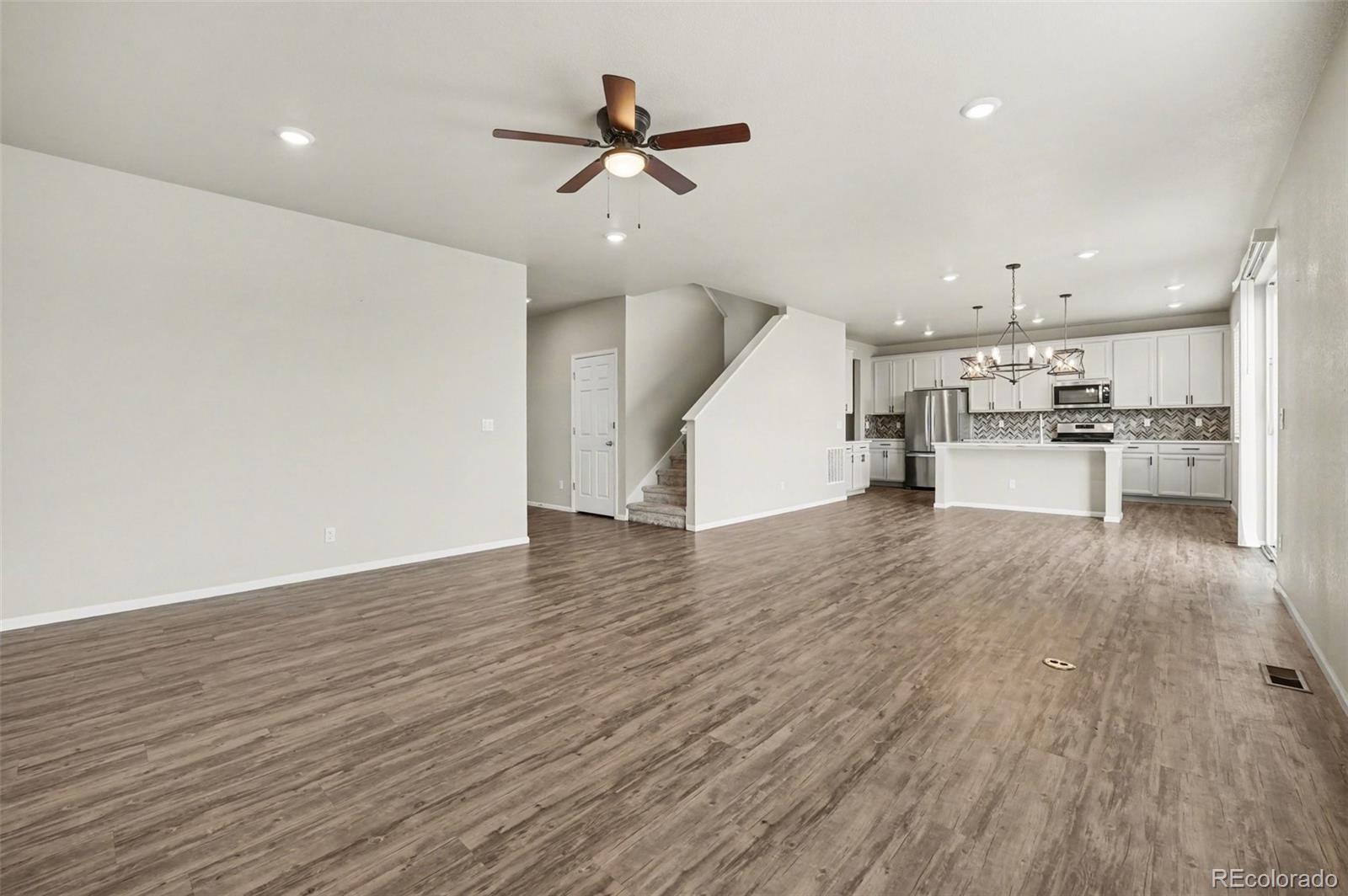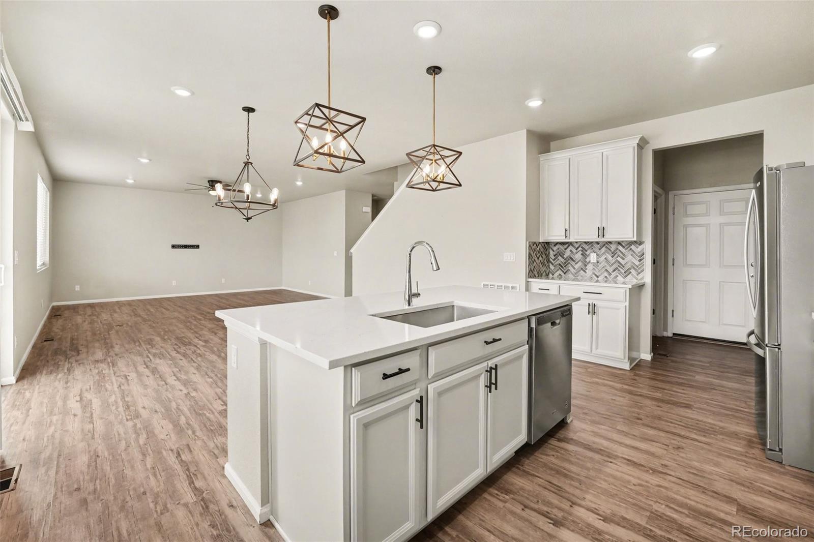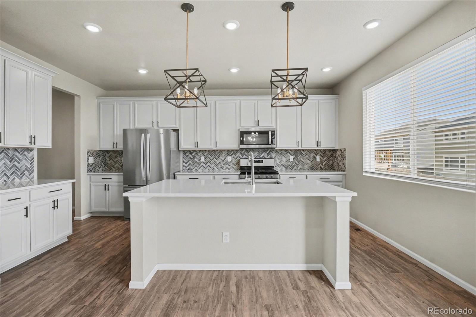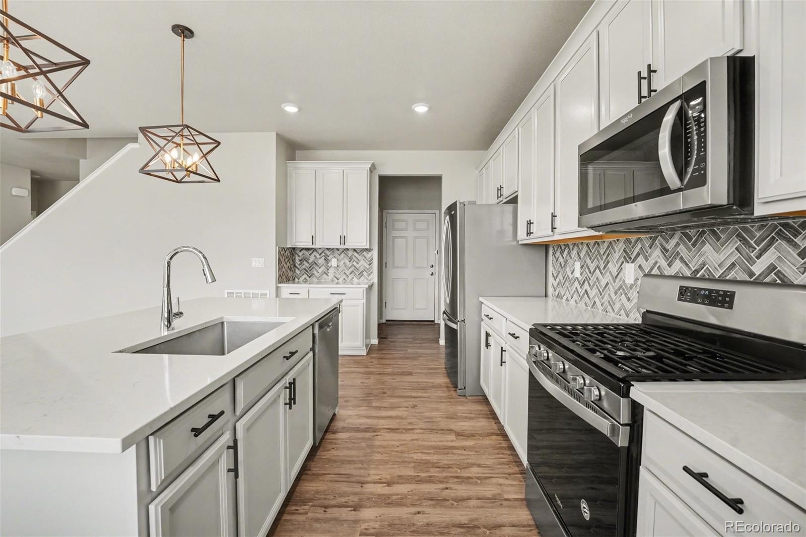 Highlands 2 Story w/ 3 Car Garage! Incredible Upgrades to Kitchen Including Quartz Slab Counters, Quartz Island w/ One Compartment Sink, 42" Cabinetry w/ Black Pulls & Crown Molding, Herringbone Tile Backsplash, Stainless Steel Appliances w/ French Door Refrigerator & Gas Range Oven, Modern Farmhouse Pendant Lighting. This home also features Luxury Vinyl Plank Floors, Designer Paint, Walk-In Pantry, Spacious Loft Area, Tile Floors in Bathrooms, Massive Walk-In Primary Closet in Primary Suite, Excellent Yard & Patio for Entertaining & Covered Porch. Highlands Community is located close to Childrens Hospital, Colorado National Golf Club, Several Restaurants & Quick Eat Food Stops. E470 Access Provides Short Commutes to Boulder & Denver!