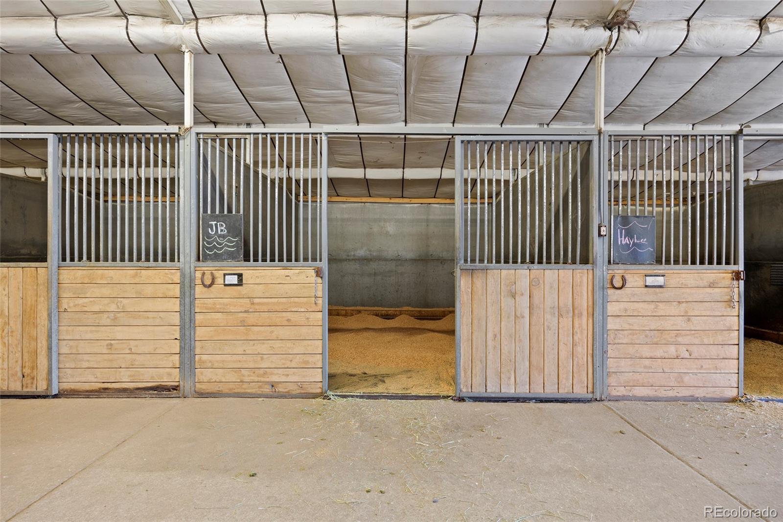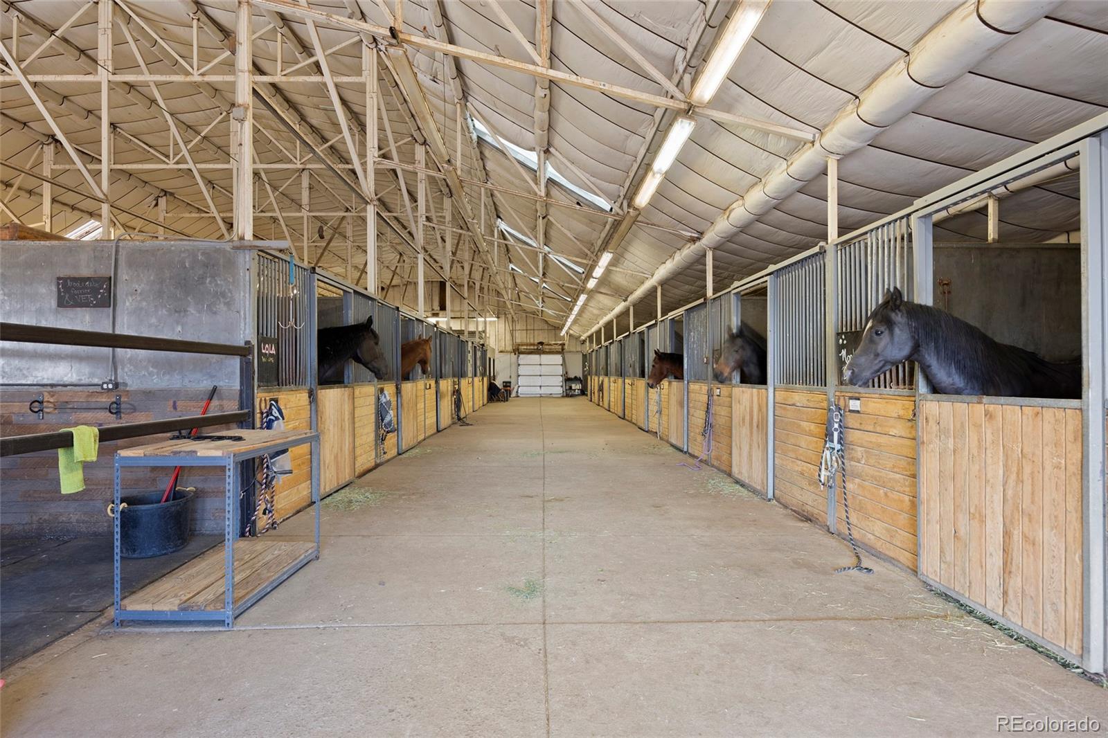 Location!! Offering Sky View Farms,legal operating Equestrian facility in Douglas County, special use permit for 50 plus horses, commercial well and water rights.This peaceful oasis is convenient to Castle Pines and also allows easy access to Denver Tech Center. It sits east of of 1-25 and directly south of the newly developed Canyons.Close to Castle Rock downtown,,every amenity is at your fingertips.The properties private gated entry accesses a thriving 50 stall occupied equestrian training business of competitive horses along side a 5013c with room for retirement horses or brood mares and ample turnout ,good footing in both, indoor and outdoor arenas ,a large round pen and plenty of trails. Dirt roads through the community allow for trail riding as well. The main show barn boasts 29 large stalls, a Heated Office and Lounge (Class Room) 1 large tack room plus 2 small converted additional tack rooms.It also has Heated water in the wash bay and 3 grooming stalls.The lower barn has 17 Retirement or breeding oversized stalls a heated lounge , tack and feed room.A 5013c leases a 4 stall small barn on the property and will happily continue to lease. There are 38 individual paddocks and 1 large pasture all fenced with white lightening fencing to keep your horses safe..The pastures are frequented by elk .Train year round in this large heavily Insulated indoor arena with led lights with more than enough room to jump a course. The indoor has a lovely separate office with a patio.The large oudoor arena has views and great natural footing that drains quickly. The round pen is a nice size for longe lining or lunging horses. A euroxciser could also easily be placed there.There is a 3bd 2 ba Modular home for support staff creates a place for full time help to reside on site.It could be replaced with your dream home. The full walk out basement gives options for staff or boarders. The possibilities of your own venue, 5013c or training business allow you to create your lifestyle!