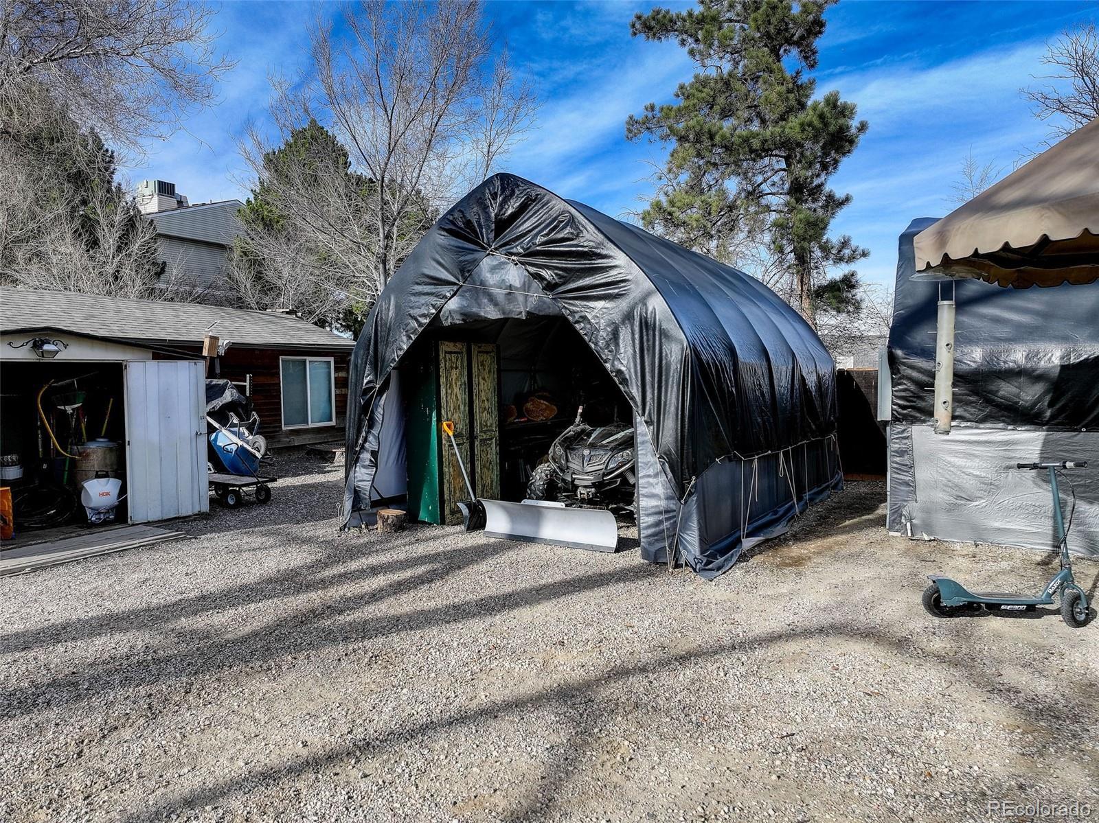 ***PREFERRED LENDER INCENTIVE: Enjoy a 1% interest rate reduction for the first year (1:0 buy-down fully covered by lender) or receive a comparable lender credit toward closing costs. Ask for details!*** Set on a nearly one acre lot, an exceptionally rare offering for the area, this extensively renovated property combines privacy, flexibility, and substantial infrastructure. Ideal for buyers with recreational vehicles, multiple cars, work trucks, or a home based business, the property features a two car attached garage, a detached garage, and a large parking pad with RV hookup, offering endless storage and use options. The main level was fully gutted and rebuilt in 2017, the basement fully remodeled in 2020, with continued upgrades through 2025. The updated kitchen features white shaker cabinetry, granite countertops, upgraded appliances, LED under cabinet lighting, and tile flooring extending into the dining area. Bathrooms have been fully updated with granite topped vanities, tiled showers, refinished tub, new fixtures, lighting, and flooring. Interior upgrades include solid core doors, updated lighting, custom window treatments, new carpet, and a theater surround sound system. Major system improvements include upgraded electrical service, new gas and water lines, PEX plumbing in the basement, a new sewer line to the street, central air conditioning, whole house humidifier, new water heater, upgraded attic insulation, and a sump pump. In 2024, the home received a new Class IV impact resistant roof with new gutters and downspouts. Outdoor features include a screened and carpeted patio with new roof structure, exterior sound system, gas line, RV slab with 30 amp power, 220 power to the storage building or shop, solar and motion lighting, privacy fencing, and low maintenance xeriscape landscaping with drip irrigation. A rare opportunity to own a move in ready home on an oversized lot where privacy, parking, and major upgrades are already in place.