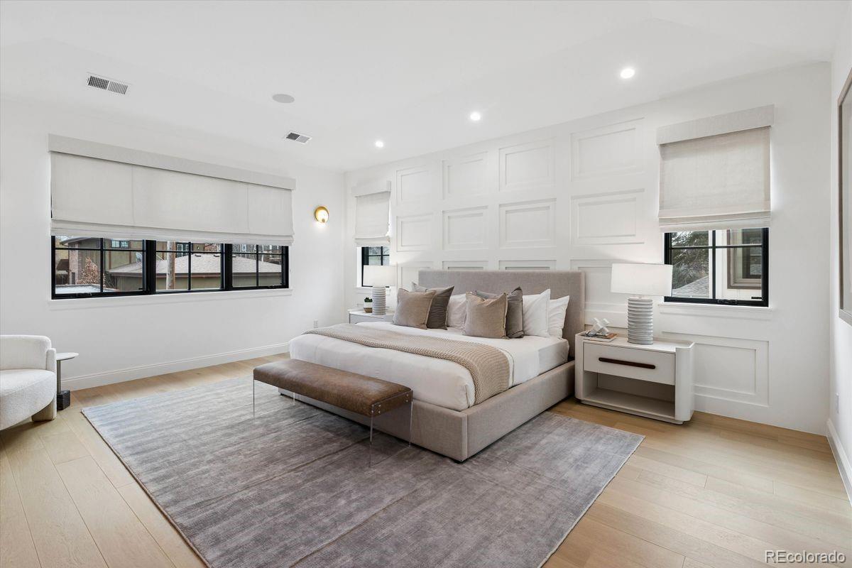 Transitional-style luxury just 4 blocks to Wash Park and 2 blocks to Old South Gaylord shops and dining. This sun-drenched home welcomes you with a grand entry boasting expansive windows, a private color-drenched study with custom built-ins, and a warm, organic kitchen featuring Wolf and Sub-Zero appliances, titanium leathered granite countertops, and a butler’s pantry with extensive cabinetry. The open-concept layout includes a stunning dining room surrounded by windows and a great room that opens to the outdoors, complete with a focal-point fireplace with wood detailing and an art TV. Upstairs offers four ensuite bedrooms, including a stunning primary suite with marble finishes, a soaking tub, and an oversized shower. The finished basement features dramatic 12-foot ceilings, a spacious family room with a bar area, two additional bedrooms (one ideal for a home gym), and an oversized bath with double sinks. Ten-foot ceilings on the main level, Marvin windows, motorized shades, and beautiful millwork details throughout. Excellent backyard space with so much potential. This is a quiet block within Wash Park — hard to beat this location. Come see for yourself.