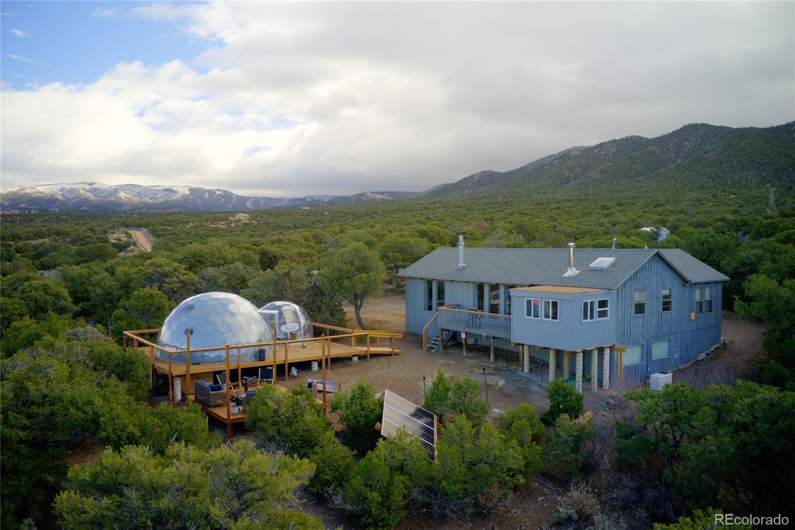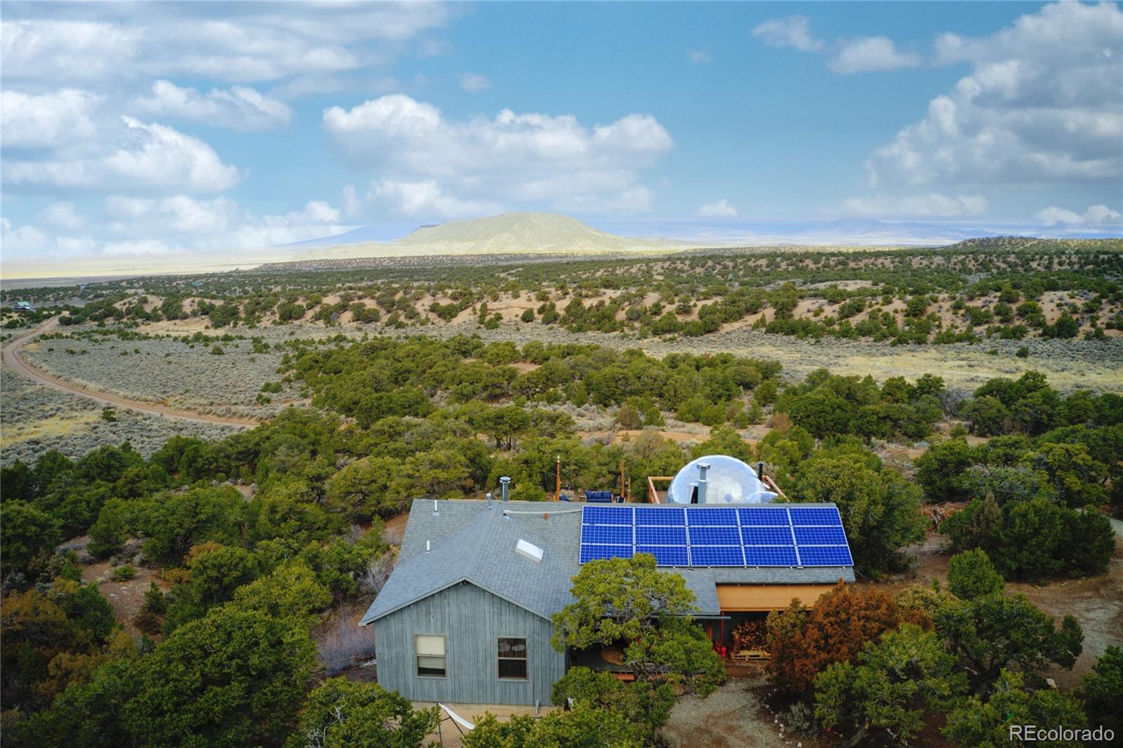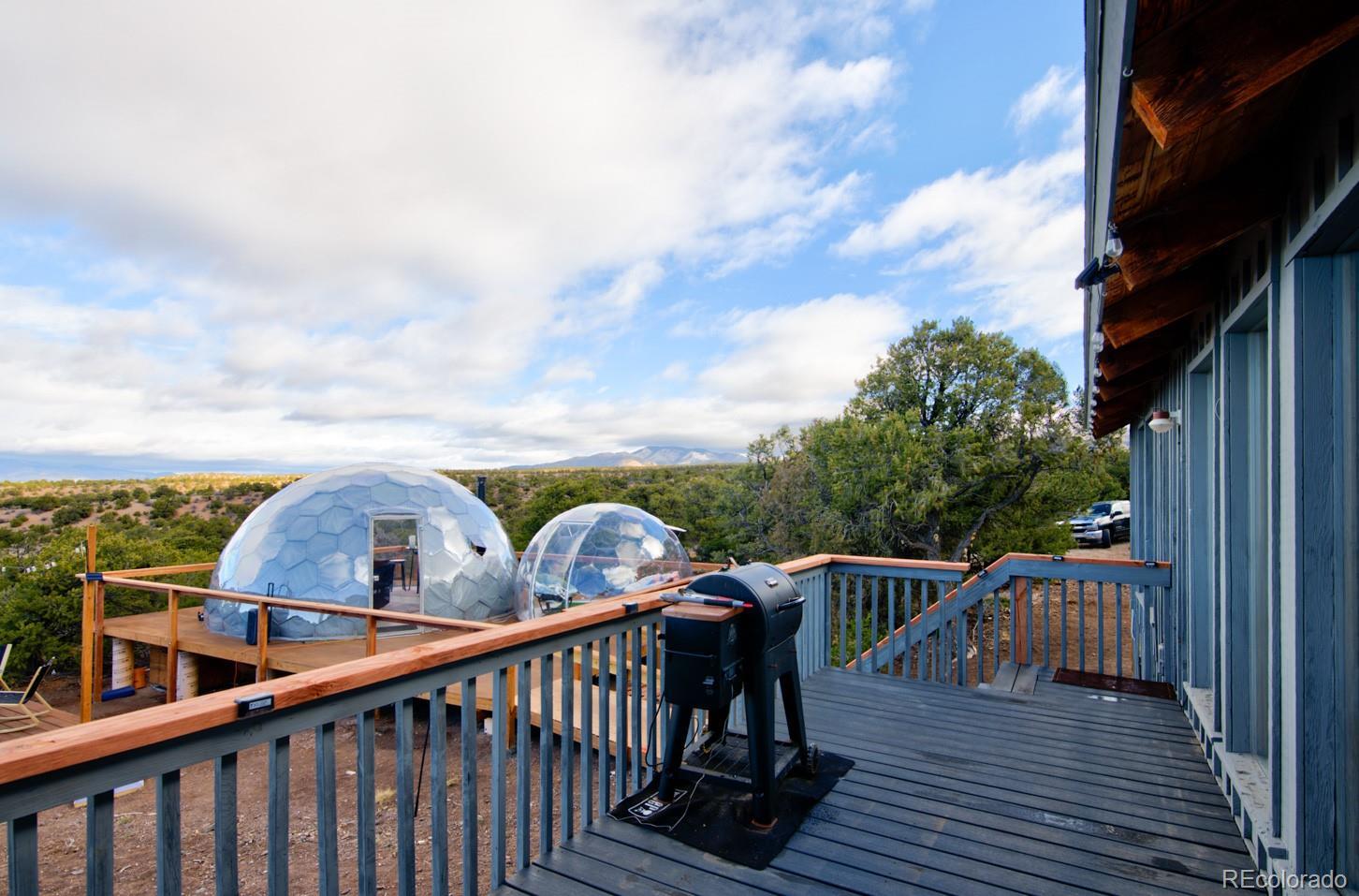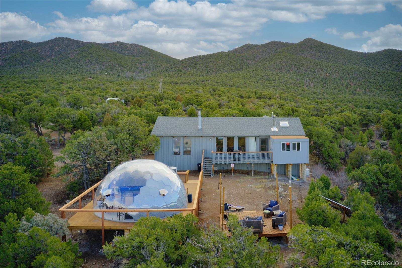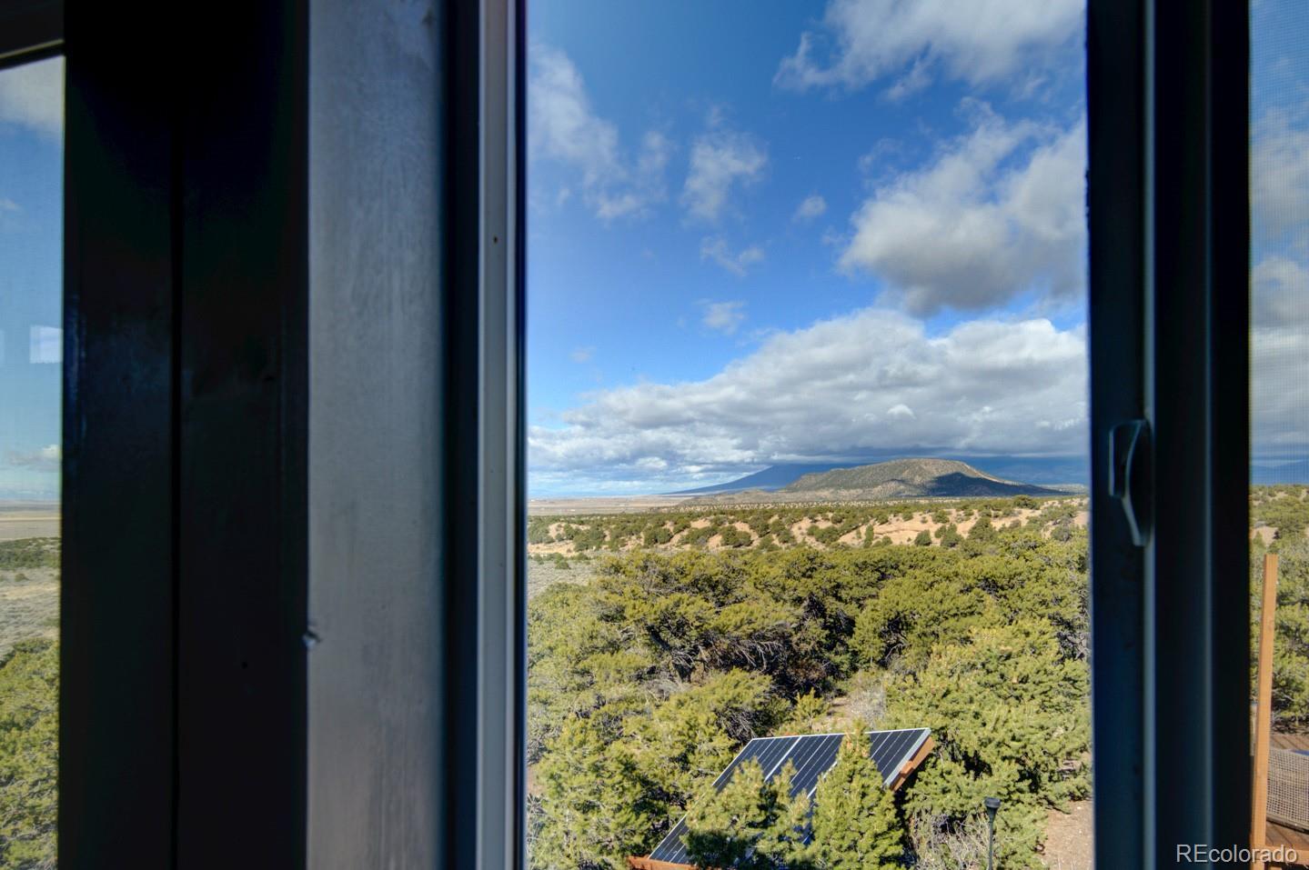 Escape to your own private 11-acre off-grid luxury retreat with million-dollar mountain views and complete sustainability. This well-maintained 3 bed, 2 bath, 1,340 sq ft home offers comfort, seclusion, and impressive upgrades throughout. The inviting living room features a fireplace, sofa set, recliner, and 65" TV. The kitchen includes a gas stove, refrigerator, microwave, reverse osmosis system, and a $12,000 full-home water filtration system. Propane heaters warm each room, complemented by a wood-burning stove in the kitchen. The primary bedroom includes a king bed, dresser, nightstands, and 42" TV. Additional bedrooms include one queen room with desk space and a separate twin room. A dedicated hot tub room (with a new, never-used hot tub) adds a relaxing bonus. Outdoor living is exceptional! A 40x40 deck showcases two transparent domes perfect for stargazing or entertaining. The large furnished dome features an 85" TV, leather sofa, pool table, arcade games, bar table, rugs, a wood stove, and small refrigerator. A second dome and a 10x16 storage shed add extra flexibility. A fire pit with outdoor furniture and solar lighting creates the ideal gathering spot. This property is fully sustainable with 15 owned solar panels, 8 batteries, a new hard-wired 18kw Generac propane backup generator, and a 500-gallon leased propane tank. The private well (Permit #42752-F) and 1,250-gallon septic system support true independent living. Jade Wireless fiber internet ensures modern connectivity. Recent upgrades include a 6-month-old water heater, flex-hose plumbing, electricity to the well, and a repaired shower line. Voluntary Sangre De Cristo Ranches POA is just $25/year (paid through 2026). Trash pick-up is bi-weekly. Fort Garland is minutes away, where you can find a post office, gas, diners, and more! SDCR is home to over 4000 acres of greenbelt for recreation and nature preservation. This property is the perfect blend of privacy, views, and turnkey off-grid living!
