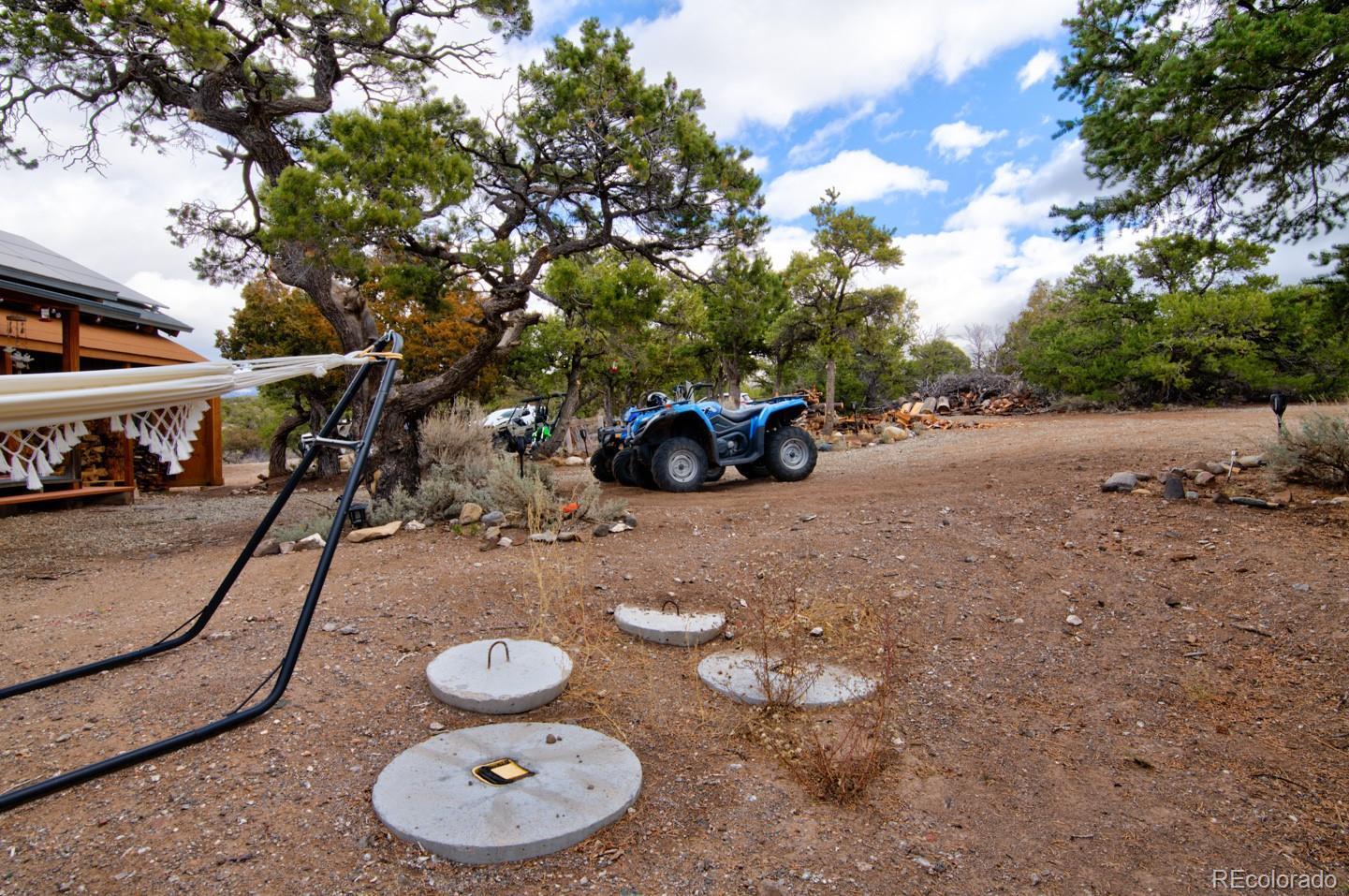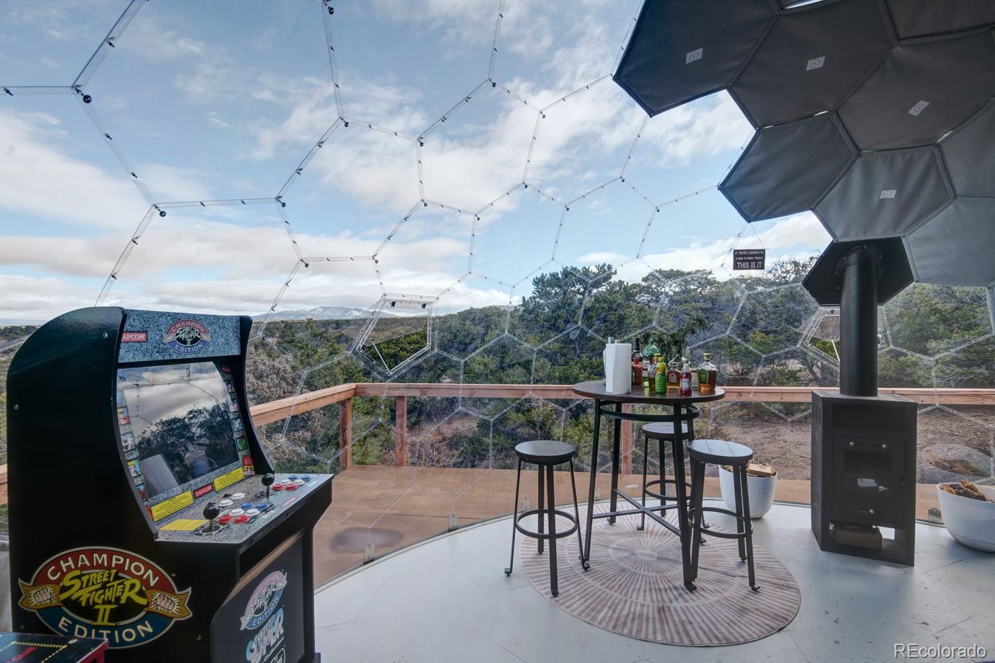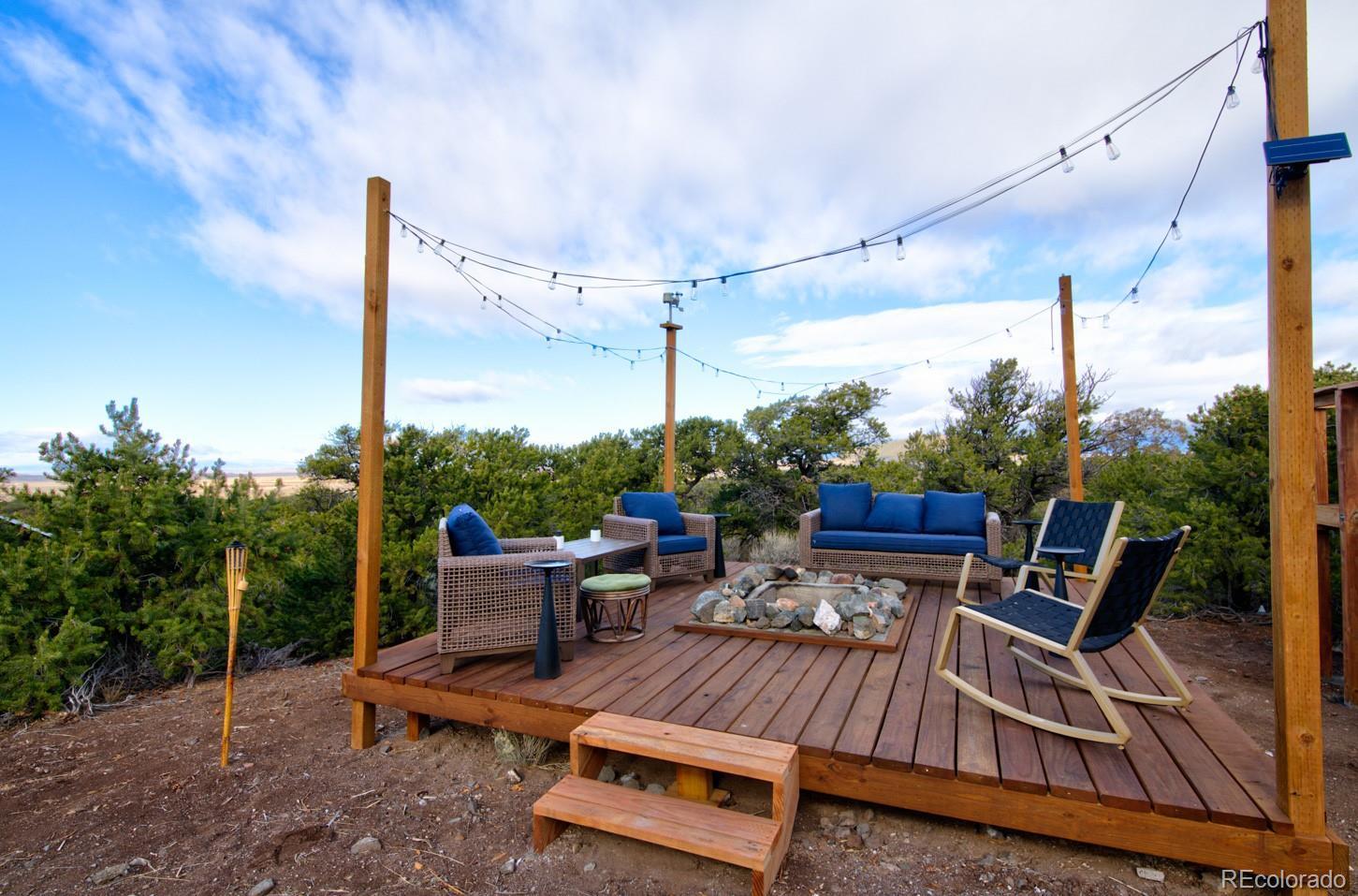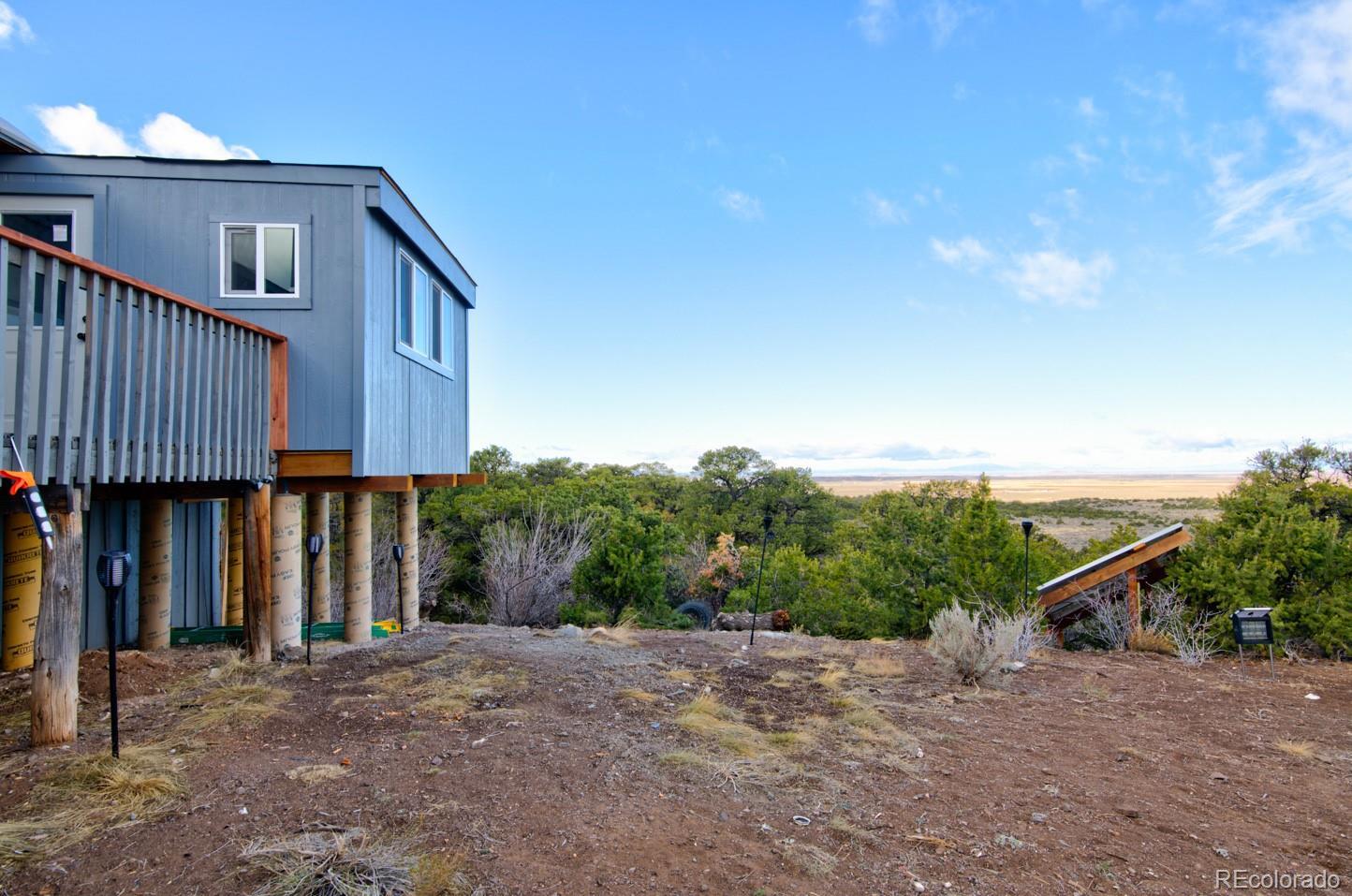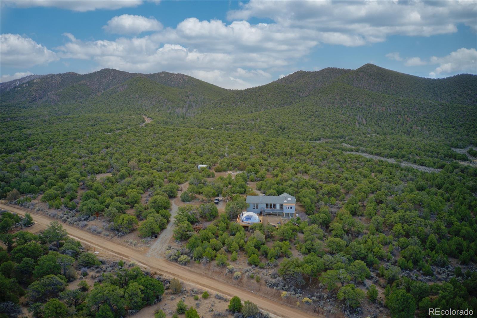 Escape to your own private 11-acre off-grid luxury retreat with million-dollar mountain views and complete sustainability. This well-maintained 3 bed, 2 bath, 1,340 sq ft home offers comfort, seclusion, and impressive upgrades throughout. The inviting living room features a fireplace, sofa set, recliner, and 65" TV. The kitchen includes a gas stove, refrigerator, microwave, reverse osmosis system, and a $12,000 full-home water filtration system. Propane heaters warm each room, complemented by a wood-burning stove in the kitchen. The primary bedroom includes a king bed, dresser, nightstands, and 42" TV. Additional bedrooms include one queen room with desk space and a separate twin room. A dedicated hot tub room (with a new, never-used hot tub) adds a relaxing bonus. Outdoor living is exceptional! A 40x40 deck showcases two transparent domes perfect for stargazing or entertaining. The large furnished dome features an 85" TV, leather sofa, pool table, arcade games, bar table, rugs, a wood stove, and small refrigerator. A second dome and a 10x16 storage shed add extra flexibility. A fire pit with outdoor furniture and solar lighting creates the ideal gathering spot. This property is fully sustainable with 15 owned solar panels, 8 batteries, a new hard-wired 18kw Generac propane backup generator, and a 500-gallon leased propane tank. The private well (Permit #42752-F) and 1,250-gallon septic system support true independent living. Jade Wireless fiber internet ensures modern connectivity. Recent upgrades include a 6-month-old water heater, flex-hose plumbing, electricity to the well, and a repaired shower line. Voluntary Sangre De Cristo Ranches POA is just $25/year (paid through 2026). Trash pick-up is bi-weekly. Fort Garland is minutes away, where you can find a post office, gas, diners, and more! SDCR is home to over 4000 acres of greenbelt for recreation and nature preservation. This property is the perfect blend of privacy, views, and turnkey off-grid living!