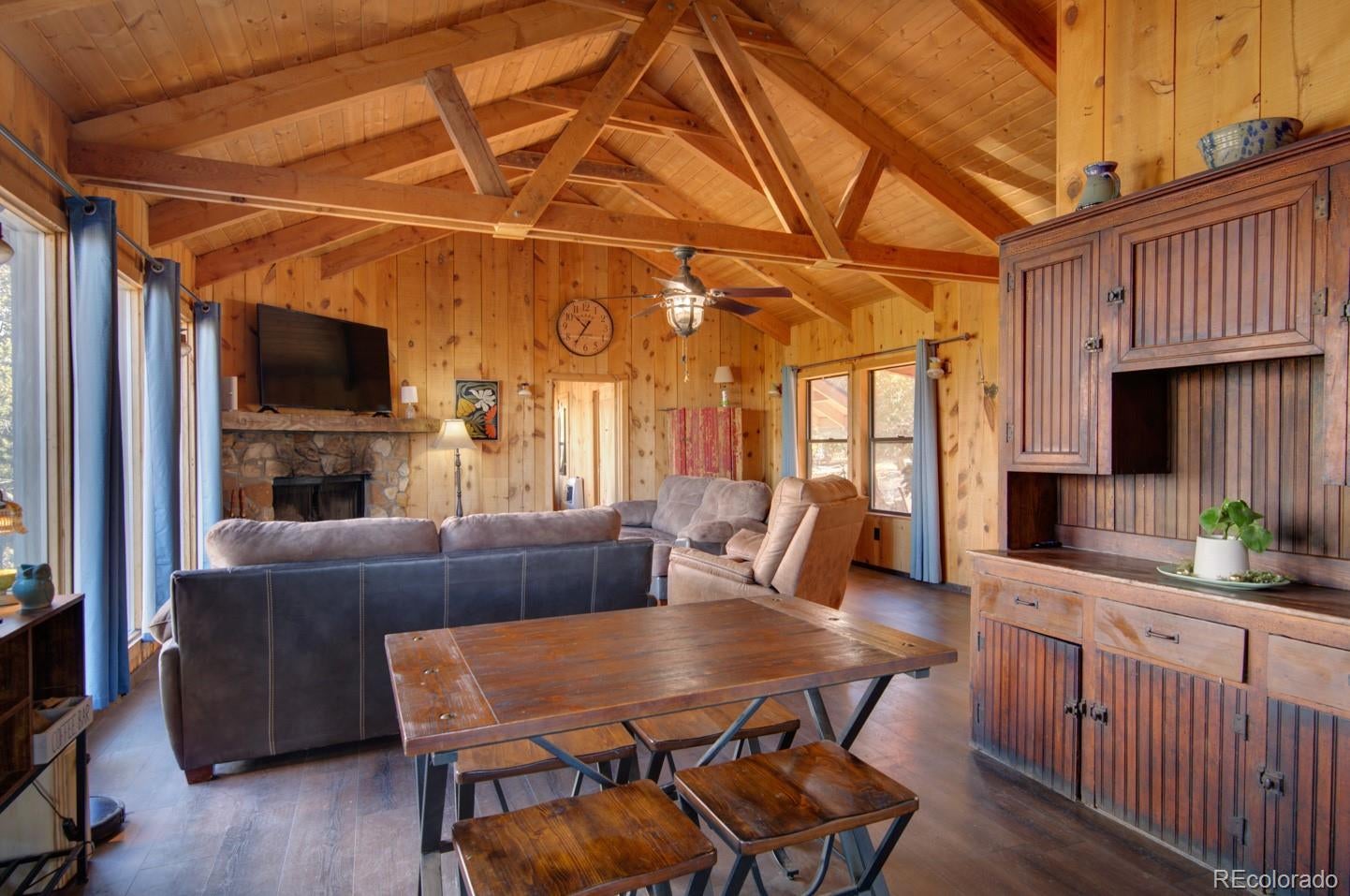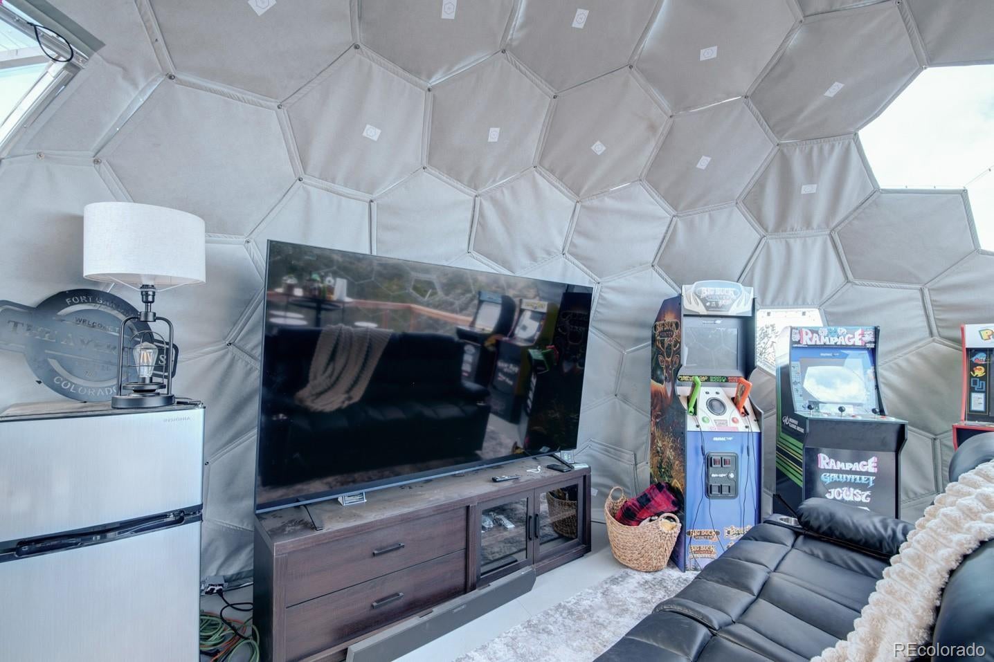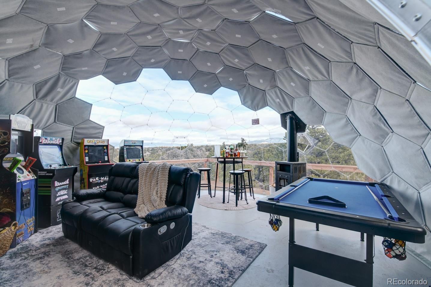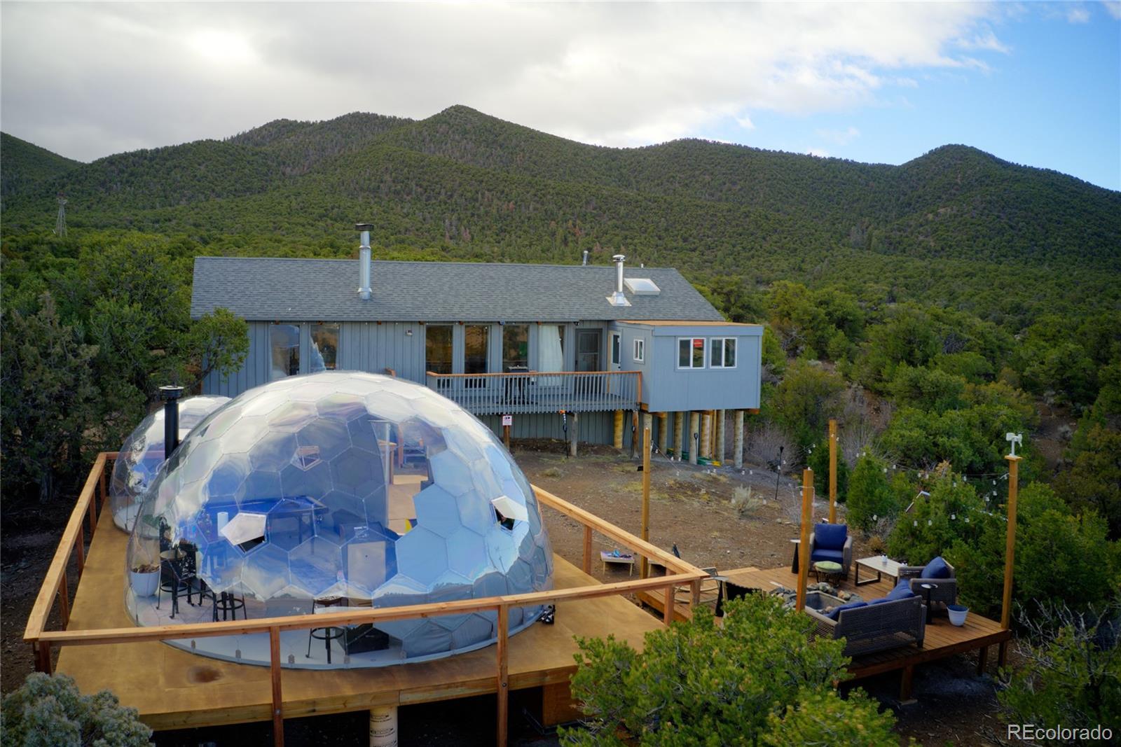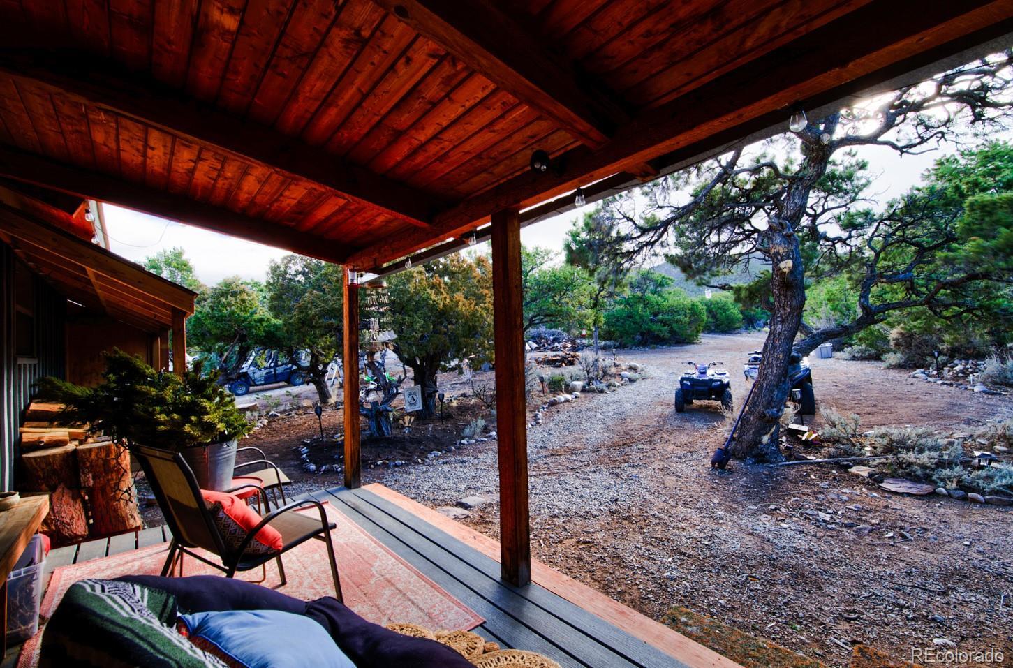 Escape to your own private 11-acre off-grid luxury retreat with million-dollar mountain views and complete sustainability. This well-maintained 3 bed, 2 bath, 1,340 sq ft home offers comfort, seclusion, and impressive upgrades throughout. The inviting living room features a fireplace, sofa set, recliner, and 65" TV. The kitchen includes a gas stove, refrigerator, microwave, reverse osmosis system, and a $12,000 full-home water filtration system. Propane heaters warm each room, complemented by a wood-burning stove in the kitchen. The primary bedroom includes a king bed, dresser, nightstands, and 42" TV. Additional bedrooms include one queen room with desk space and a separate twin room. A dedicated hot tub room (with a new, never-used hot tub) adds a relaxing bonus. Outdoor living is exceptional! A 40x40 deck showcases two transparent domes perfect for stargazing or entertaining. The large furnished dome features an 85" TV, leather sofa, pool table, arcade games, bar table, rugs, a wood stove, and small refrigerator. A second dome and a 10x16 storage shed add extra flexibility. A fire pit with outdoor furniture and solar lighting creates the ideal gathering spot. This property is fully sustainable with 15 owned solar panels, 8 batteries, a new hard-wired 18kw Generac propane backup generator, and a 500-gallon leased propane tank. The private well (Permit #42752-F) and 1,250-gallon septic system support true independent living. Jade Wireless fiber internet ensures modern connectivity. Recent upgrades include a 6-month-old water heater, flex-hose plumbing, electricity to the well, and a repaired shower line. Voluntary Sangre De Cristo Ranches POA is just $25/year (paid through 2026). Trash pick-up is bi-weekly. Fort Garland is minutes away, where you can find a post office, gas, diners, and more! SDCR is home to over 4000 acres of greenbelt for recreation and nature preservation. This property is the perfect blend of privacy, views, and turnkey off-grid living!