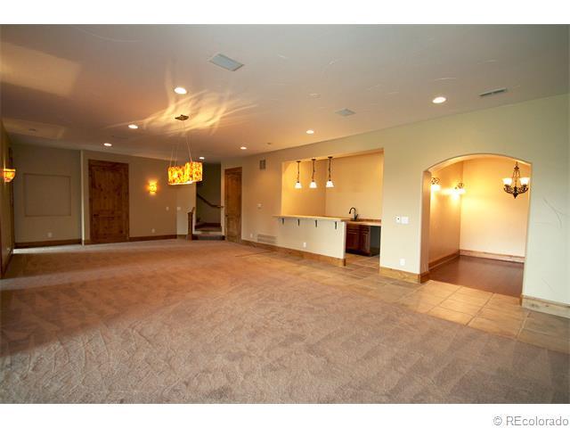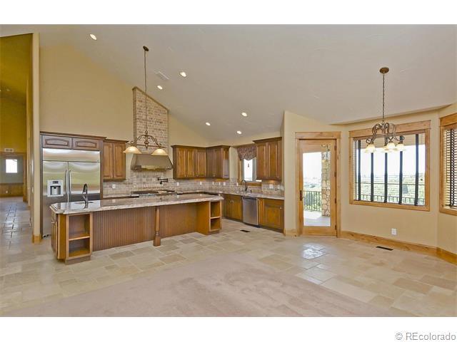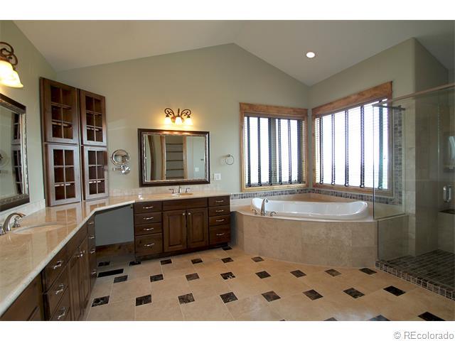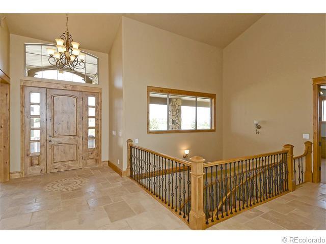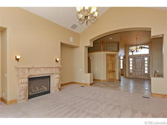This absolutely gorgeous custom ranch home perfectly complements the stunning Colorado views that this home offers. The large spacious driveway with 4 car attached garage and beautiful low maintenance landscaping is captivating. Windows and doors have been added to make this a very bright and sunny home. The many unique architectural features of this home are enchanting and quite magnificent. You will love the gourmet chef’s kitchen that includes a pot filler, a vegetable sink, steamer, 2 dishwashers and much more. The main floor master suite has exquisite views, a cozy fireplace and glass doors to the deck. There are 5 possible bedrooms all with their own bath. This wonderful home also has an elevator shaft, 2 secret rooms, a billiard room with wet bar, card table or poker room and family area. The earthy colors, 8 foot natural wood doors and mill work, 9 foot and vaulted ceilings give this home the rustic and elegant charm cherished in Colorado.
