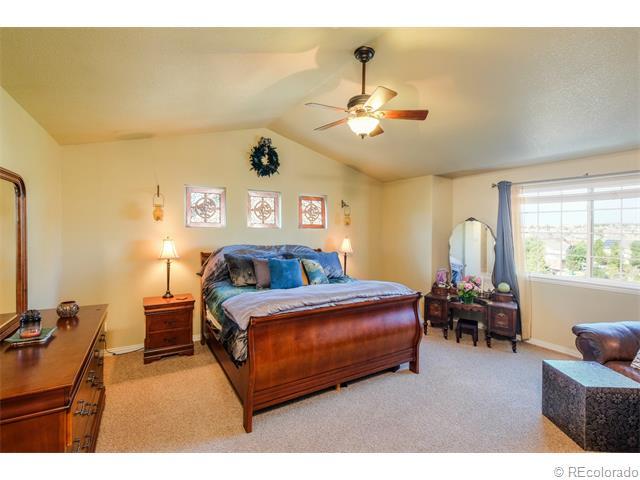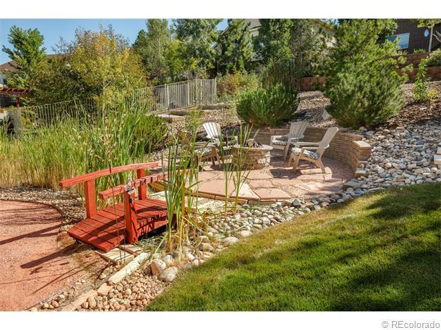 Gorgeous Saddle Rock Golf Club 2-Story home. GIANT PRIVATE LOT..ALMOST 1/2 ACRE. Why buy new?..80k in landscaping installed! HUGE 4 CAR GARAGE (1,031 s.f.!), Awesome Cherry Creek School District! Pride of Ownership truly shows here...10++ & Immaculate! Large home = Giant rooms throughout! Main Level Features: Volume 2-story ceiling at entry. Front formal living room and dining. Gorgeous gourmet kitchen w/huge island/seating, double ovens, cook-top, giant pantry..Kitchen opens to the family room w/gas fireplace, wired for 5.1 surround...great home for entertaining! Large bedroom/study & full bath on the main! Huge laundry/mudroom on main. Upper Level:Has large secondary bedrooms & a loft! Vaulted Master suite w/rotunda entrance, huge walk-in closet, large tiled 5 piece bath! Oil rubbed bronze! Giant open basement for future growth w/rough-in. DON'T MISS YARD: terraced wall/garden area, stamped patio, hot tub, playground, gas & wood fire-pits included..w/seating! Home Warranty included!