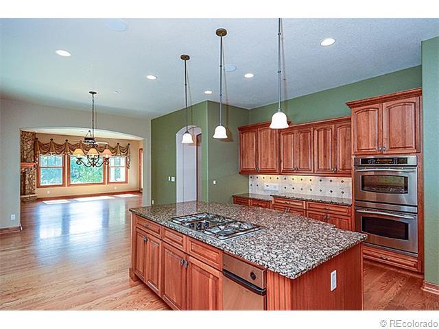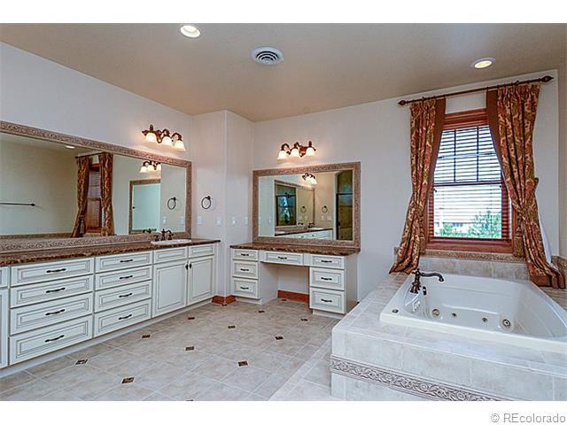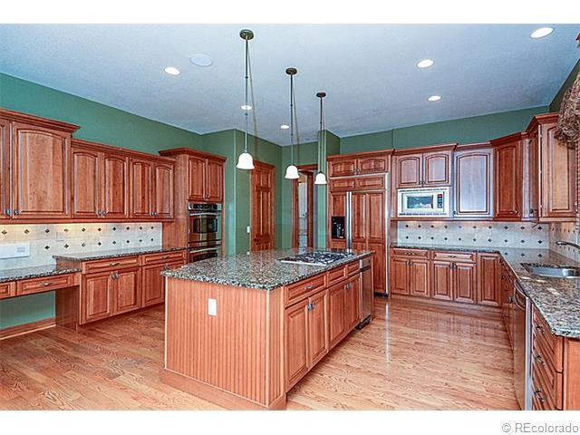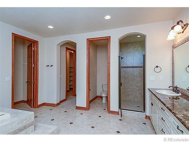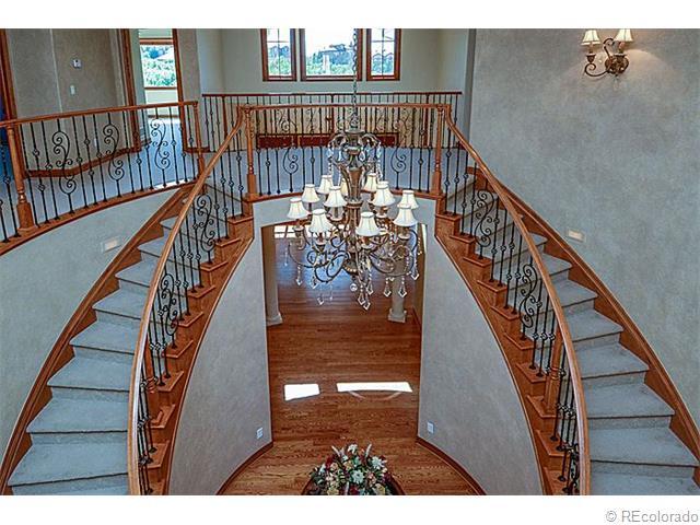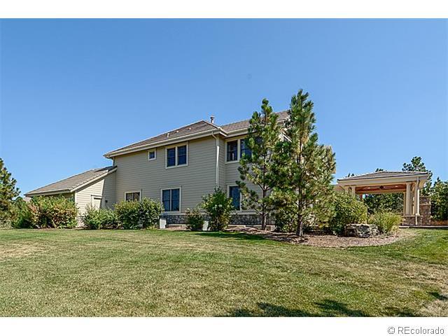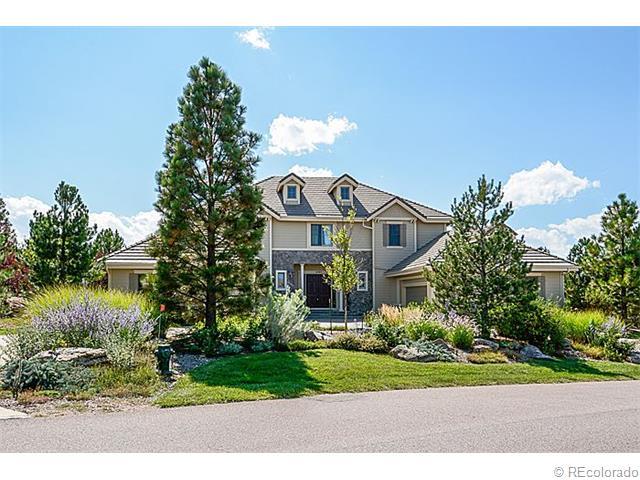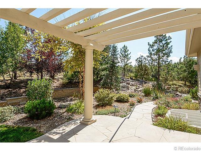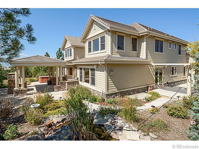 This “Colorado” style residence is sited perfectly on a large lot that affords great privacy, tranquility and captures open space and mountain views. Features two patios with pergola, outdoor fireplace and surrounded by gorgeous perennial gardens and waterfall, the perfect outdoor retreat. The main floor has a dramatic entry showcasing dual staircases to the upper level, formal dining room leading to a butler’s pantry and temp controlled wine room, formal living room, dream kitchen with stainless appliances, slab granite counters and rich wood cabinetry, private study, and guest suite. The second floor hosts 3 spacious bedrooms, all with generous closets, plus 3 baths, including the luxurious master suite with sitting room, “spa” style bath and generous walk-in closets. Also on the second floor is a spacious loft area and bonus room that could serve as second office or exercise room. Lower level includes family/billiards room, theater with tiered seating, and 5th bedroom suite.