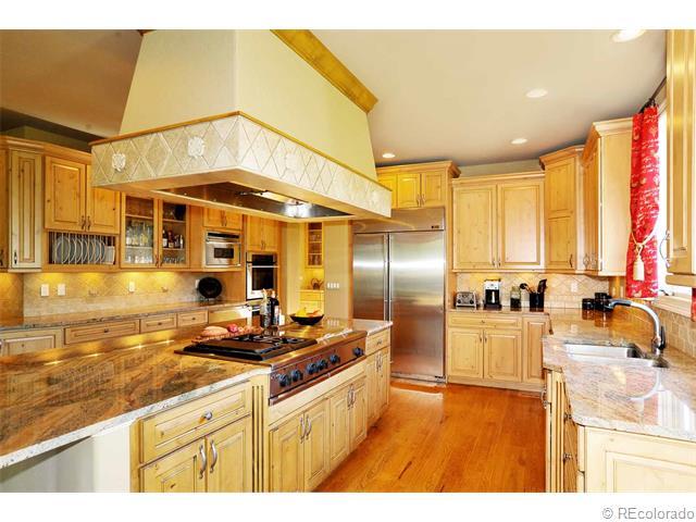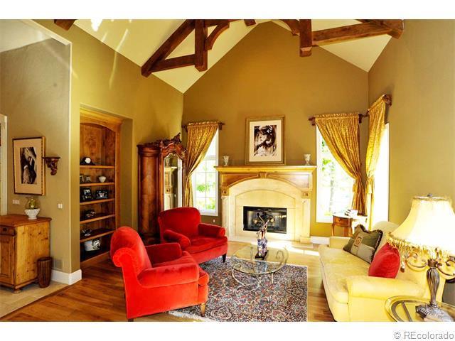 Price Reduced.Tremendous curb appeal! Exceptional quality of design and construction. Beautifully appointed with beams and timbers, stone, knotty alder wood cabinets and doors, ash 5”plank wood floors, stainless steel appliances, soaring ceilings and craftsmanship detailing. Every bedroom has a private bath. Mountain views. This home is located on a cul-de-sac and backs to a trail that leads to the Preserve Recreation Center with a pool, tennis courts, playground and the Highline Canal. The incredible gourmet kitchen is fully appointed for the family chef. Great for home entertaining! It includes granite counter tops, a huge center island, custom knotty alder wood cabinets, stainless steel appliances, and a planning desk. The gracious living room has beautiful windows, a vaulted beamed ceiling, gleaming hardwood floors and a traditional stone fireplace. The layout is great for entertaining and flows to the dining room.