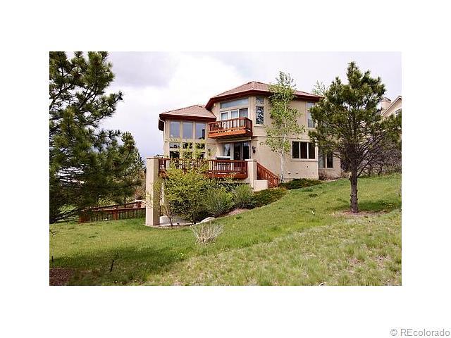 Contract just fell, Buyers changed their mind right before closing. This is one of the lowest priced properties in Castle Pines Village backing to the Country Club Golf Course and adjacent to open space. This two-story home with finished walkout basement is a great value in Castle Pines Village and is priced right to sell. The two-story great room features expansive windows and is adjacent to the kitchen and breakfast area with slab granite counters and stainless appliances. The formal living and dining rooms are perfect for entertaining and the main floor study with built-ins is a great retreat. The second floor hosts four spacious bedrooms each with an en-suite bath including the master suite with spa style bath. The lower level features a family/recreation room with wet bar and 5th bedroom and additional bath along with a dog grooming/kennel area and rarely available fenced dog yard off of the lower level patio.