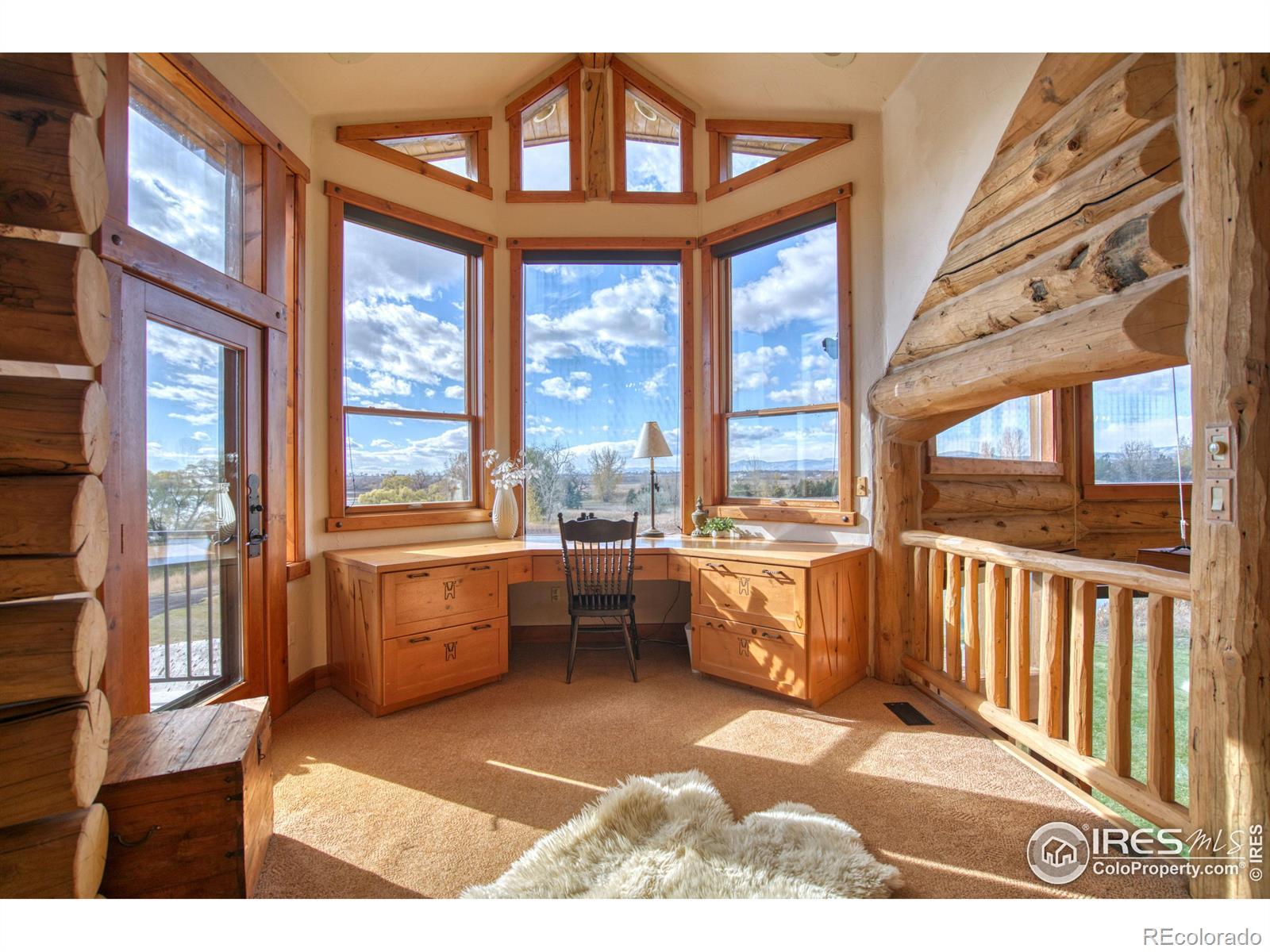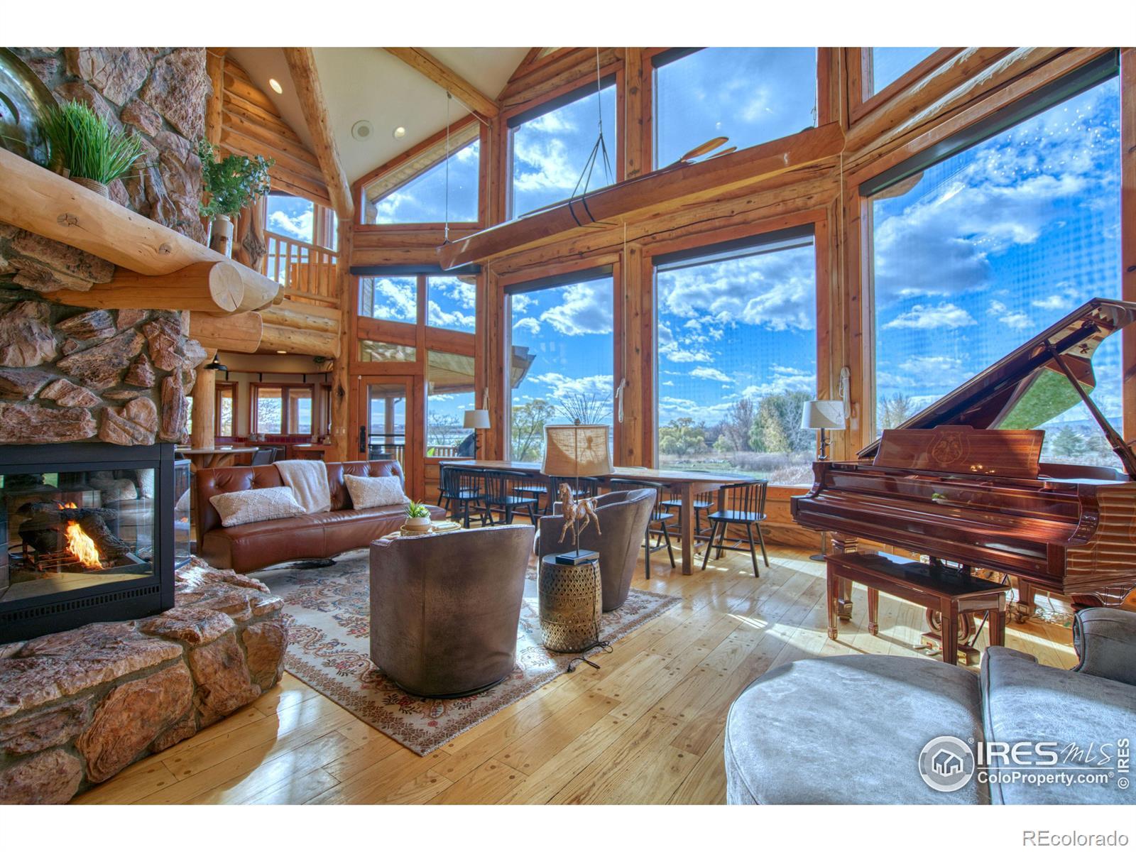 Discover unmatched luxury on 18.82 private acres in Fort Collins, Colorado. This lakeside estate, adjacent to Fossil Creek Reservoir Nature Preserve, features panoramic 360 views of mountains and water, a custom log home with soaring vaulted ceilings, and a chef's kitchen. Perfect for equestrians, it includes a 4-stall barn, fenced pastures, and versatile event spaces. A serene, exclusive retreat minutes from shopping, dining, and I-25 access.Wake up to uninterrupted, panoramic 360 views of Longs Peak, Horsetooth Mountain, and the shimmering Fossil Lake Reservoir. From dawn to dusk, the spectacular Colorado sunrises and sunsets are enjoyed from the home's multiple vantage points, including an observatory tower that offers unmatched vistas of northern Colorado.Designed with a focus on natural beauty and functionality, this custom-built luxury log home features are incredible. A great room with soaring 30-foot vaulted ceilings, creating a stunning space for gatherings, celebrations, or simply relaxing. A grand porch with sitting areas offering 180 views, perfect for morning coffee or evening cocktails. Multi-use spaces, including a bar and game room, a spiral staircase to the tower, and private TV rooms, are ideal for entertaining. The chef's kitchen has three ovens and abundant counter space to cater any occasion. The accommodations include 4 bedrooms and 4.5 bathrooms designed with picturesque views. Additionally, This property has over 10 acres of fenced pastures, providing an exceptional environment for horses, whether owned or boarded-a four-stall barn with a tack room, workroom, entertainment space, and parkour course.Located in the vibrant city of Fort Collins, 3480 Egret Lane offers the perfect blend of serene privacy and urban convenience. Just minutes from the I-25 corridor, the property provides easy access to Denver International Airport. Come discover a life of unparalleled luxury, natural beauty, and endless potential.