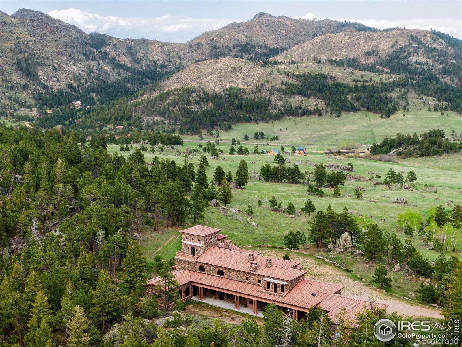 Stove Prairie Ranch & The Villa ~ A Legacy Estate on 52 Pristine Acres (Additional 103 acres available)Nestled in one of Northern Colorado's most scenic and historic valleys, Stove Prairie Ranch is a rare convergence of heritage, nature, and luxury. Once sacred Ute land and a passage for westward explorers and The Pony Express, this estate's story began in 1828 near Laporte-the historic "door" to the Rockies. Located at the junction of Rist, Buckhorn, and Poudre Canyons, it offers both seclusion and accessibility.Founded in 1896, the ranch welcomed its first homestead and schoolhouse-still Colorado's oldest in operation. For over a century, it thrived through cattle and timber. In 1990, it was reimagined into a world-class equestrian estate and premier destination venue for weddings, retreats, and events.At its heart lies The Villa, a 2007 Italian-inspired masterpiece set beside a spring-fed pond and granite outcroppings. Built with hand-picked granite and full-thickness concrete block, its walls exceed two feet in depth-offering durability and timeless elegance. Inside, curated European artifacts include a 2,000-year-old Roman mosaic anchoring the grand foyer.The Villa features soaring 14-ft ceilings, expansive windows, dual elevators, and radiant in-floor heating. The master suite includes dual baths, walk-in closets, and private elevator access. A 32-ft indoor saltwater pool and wellness lounge offer serene mountain views. Guest quarters include a full kitchen, private living room, and balcony.Additional highlights: a formal dining room with wine service access, gourmet and prep kitchens, a third-floor atelier bathed in natural light, and a library with a ceiling of 30 original paintings. Fireplaces are crafted from full-thickness coral.Up to 155 acres with cottages and a state-of-the-art indoor arena available. Inquire to experience this extraordinary legacy estate.