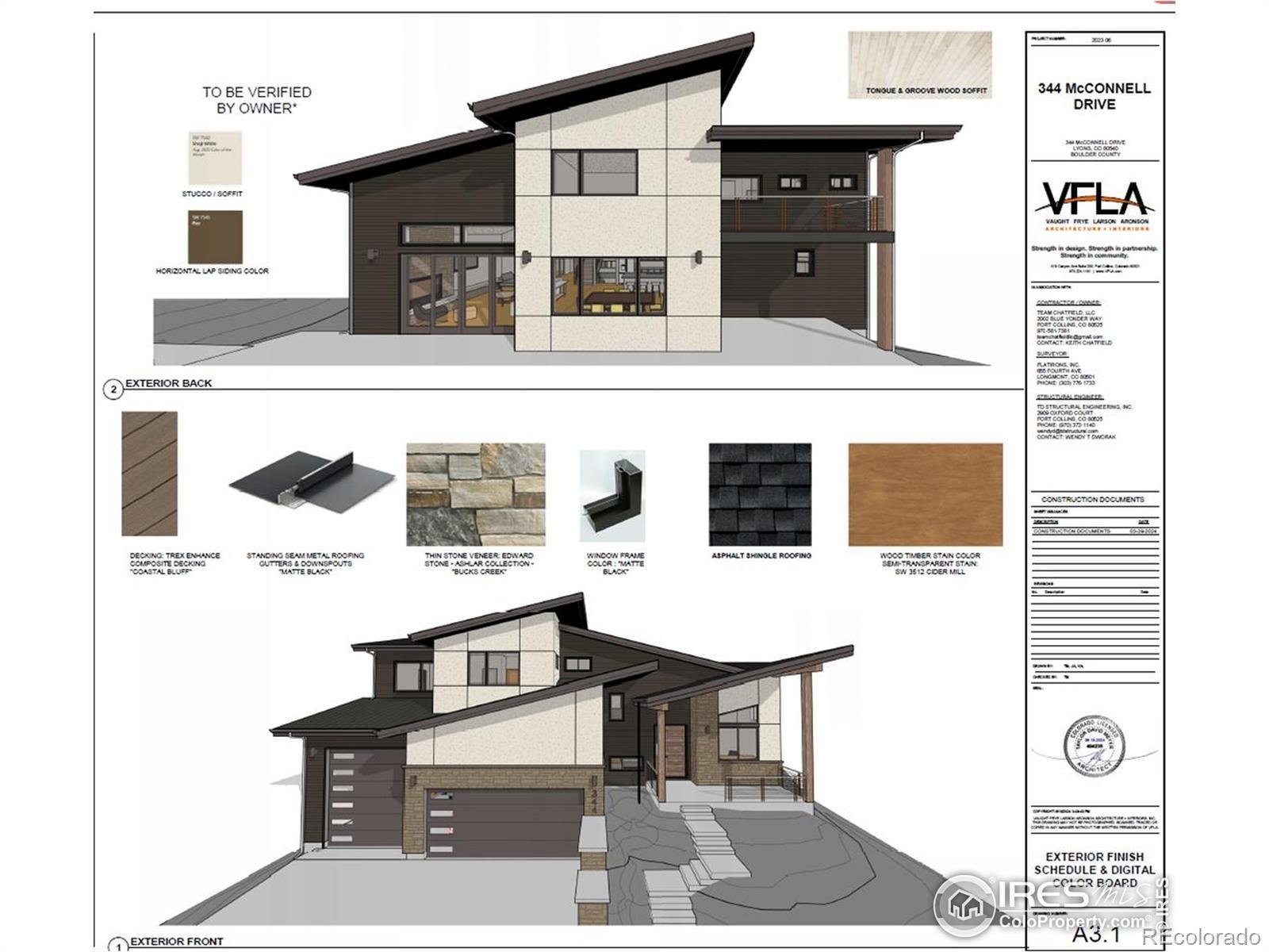 Considering Boulder? Upscale to a better home and life in Lyons. Professionally designed plans have been completed for this home and it's ready to build on one of the last available building lots in town. This semi custom home is light and open with plenty of windows to enjoy the unspoiled scenery. Outside, the house shows its flair with its unique fly away roofline. Inside the house is light and open with generous living room that opens to a covered patio. There's a separate dining area, large kitchen with 4 seat island, pantry, and combined mudroom/laundry. Ascend the stairs to the loft above. This is a great spot to view the living room below with its dramatic full height fireplace or look Northwest to take in the view from the outside covered balcony. Travel the catwalk sweeping across the entryway to the 3 bedrooms. The basement is finished with large family/media room that adjoins a large bonus room perfect for activities or fitness. There's a 4th bedroom and 3/4 bath and space for optional sauna. For the outdoor enthusiast, the oversize 3 car garage with its deep bay and 10' door takes most boats or toys with ease. As for recreation, Lyons is second to none with world class cycling, hiking, fishing, you name it right out your doorstep. A second patio pad and wiring is included for your hot tub. This home was designed by award winning architects and will be built by talented people who take pride in their work. Contact the agent below for more information about this special home, review plans, and a complete list of design options. The seller is a licensed broker and general contractor in the state of Colorado. Exclusively Offered by Team Chatfield LLC a Licensed General Contractor.