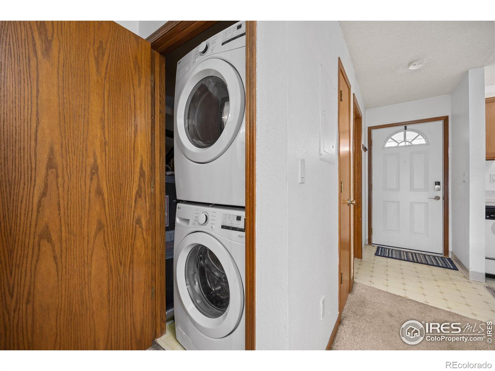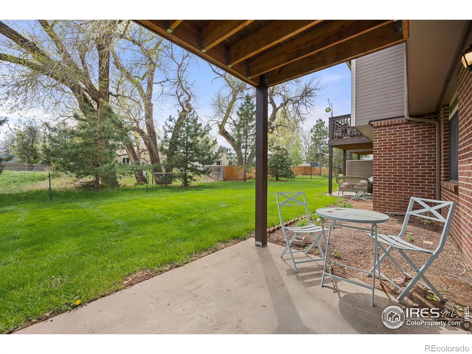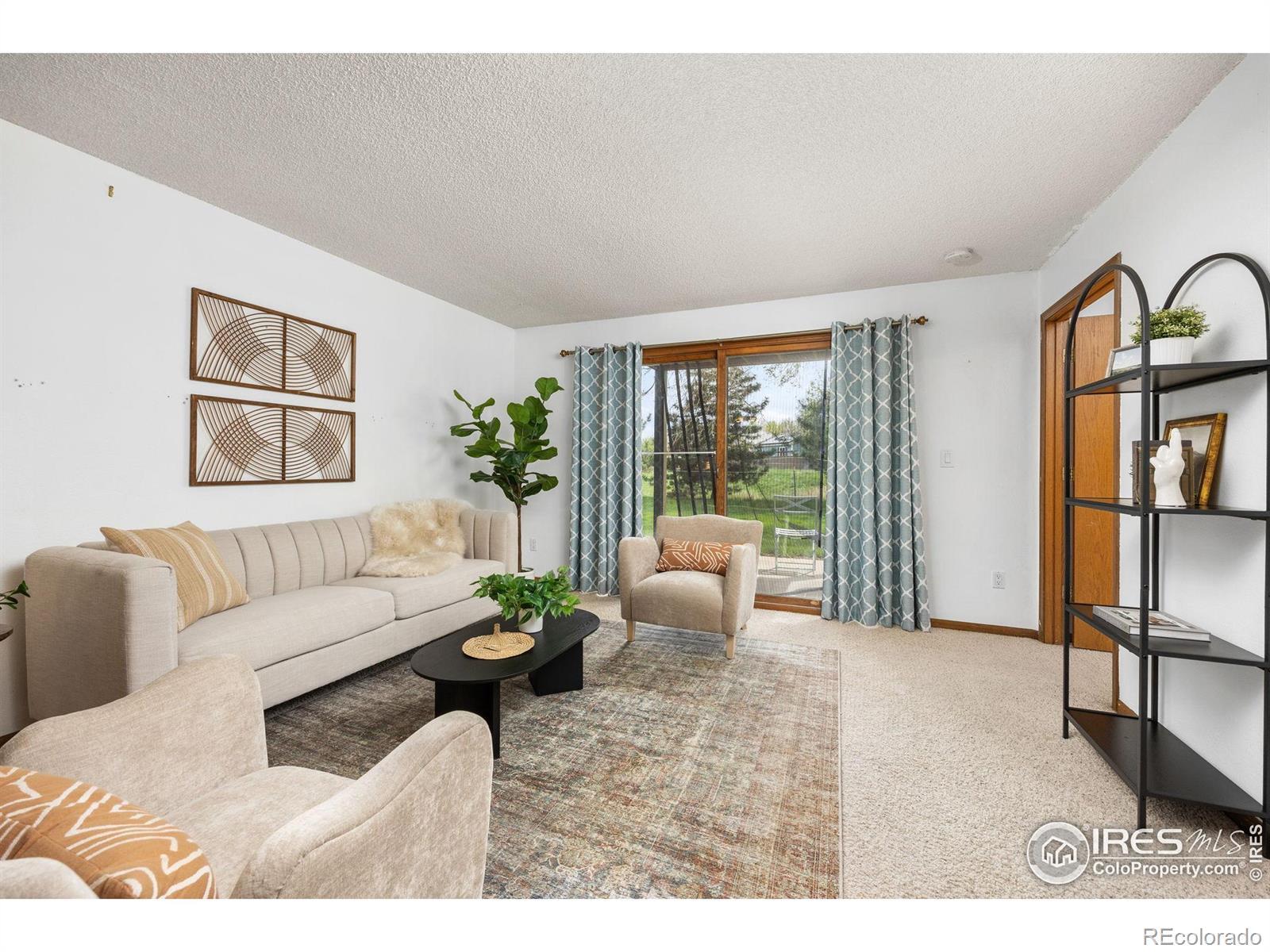 This light-filled, ground floor condo offers a rare combination of comfort, convenience, and location in the heart of Fort Collins. Featuring two spacious bedrooms and one well-appointed bath, the unit is move-in ready or perfect as an investment property. The open living room is anchored by a cozy wood-burning fireplace and opens through a large sliding glass door to a generous patio and expansive private green space, surrounded by mature trees for privacy and tranquility. The kitchen connects seamlessly to the dining area via a passthrough bar, making entertaining easy. A quiet community setting just minutes from CSU, Rossborough Park, Spring Creek Trail, and numerous amenities, this condo offers the best of Fort Collins living in a well-maintained, charming setting.
