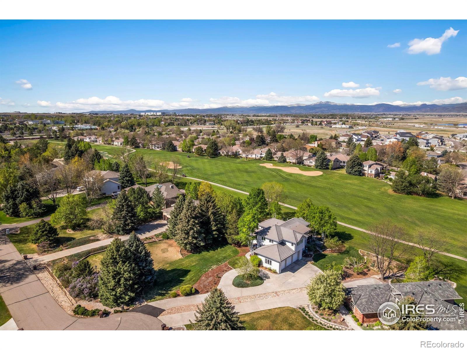 Backs to the 2nd hole at Ptarmigan Golf Course, this beautifully designed custom 2-story home sits on an estate-sized lot just under half an acre, surrounded by mature, lush landscaping. From the inviting covered front porch, step into an open floor plan featuring dramatic vaulted ceilings, gleaming wood floors throughout most of the main level, and stunning views from nearly every room. The chef's kitchen offers quartz countertops, stainless steel appliances, an island, and a cozy nook. The living room features a corner fireplace and flows seamlessly into the sunroom and media room. Upstairs, you'll find a spacious primary suite with an adjoining flex space, along with two guest bedrooms, and full guest bathroom. The finished basement includes a second fireplace, rec room, theater room, wet bar, and a fourth bedroom. Relax on the deck at sunset or unwind in the hot tub on the patio. You'll love calling Ptarmigan home!