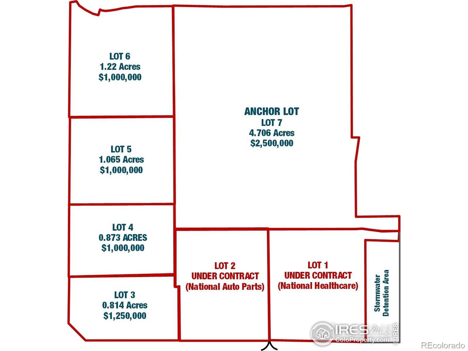 PADS COMPLETED! New construction, retail shopping center in fast growing Berthoud community. Hard corner/lighted intersection. Approved site plan of box-anchored shopping center with flexible spaces. Close proximity to TPC Colorado Golf Course. Anchor site ideal for grocer, farm & ranch, dollar store, pet store, etc. No natural grocers in rapidly growing community. Pad sites for restaurants, automotive, daycare, quick lube, banks, fast food, gas/convenience, etc. LOT 6 IS 1.2 ACRES. SALE PRICE $1,000,000.