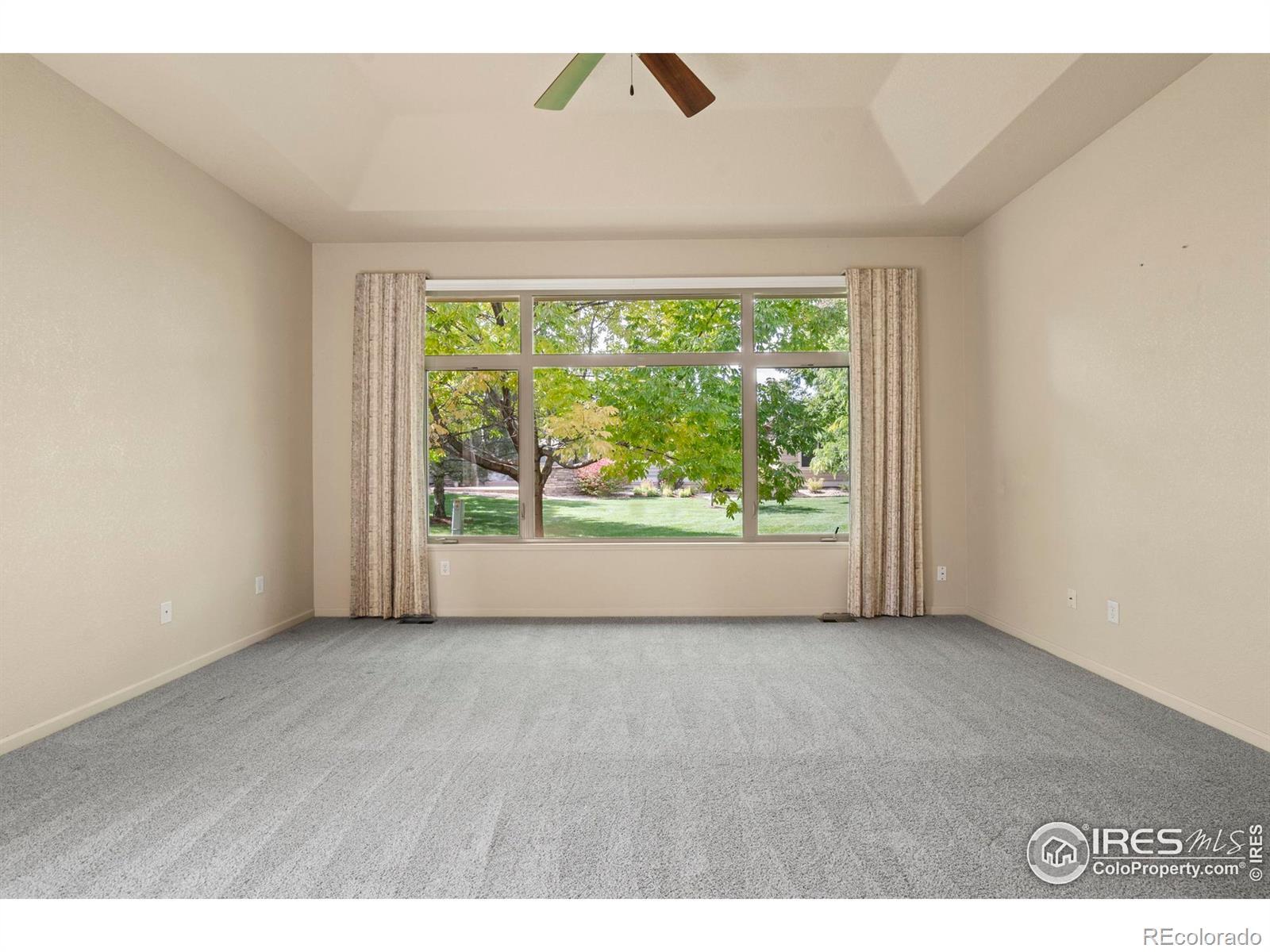 Meticulously maintained 4-bedroom, 4-bathroom ranch-style residence offers seamless main-level living with thoughtful upgrades throughout. Step into a bright, open layout that connects an elegant great room with custom built-ins to a gourmet kitchen and cozy hearth room-perfect for entertaining and everyday comfort. The primary suite offers a retreat-like setting with dual walk-in closets, a luxurious ensuite, and convenient access to the main living areas. The fully finished basement extends your living space with a large family room, fireplace, custom art shelving, a bar, and two generously sized guest bedrooms with supplemental baseboard heating. Enjoy year-round indoor-outdoor living with a stamped concrete front patio and a spacious, partially enclosed west-facing rear patio featuring roll-down screens and a natural gas line-ideal for grilling or outdoor heaters. Three fireplaces, plantation shutters on the east-facing windows, and full surround sound wiring enhance comfort and functionality throughout. Unique features include a true 3-car garage (80 sqft larger than typical models) with a 220-volt outlet, a freshly repainted exterior (August 2024), and a well-maintained HVAC system serviced twice annually. Residents benefit from the low-maintenance lifestyle provided by the Metro, which includes exterior watering, landscaping, snow removal (over 4"), garbage service, and exterior care-ideal for worry-free travel. Located in a very peaceful, quiet, low traffic residential enclave with quick access to I-25, walking trails, parks, and the exclusive Highland Meadows Recreation Center, this home offers a perfect blend of privacy, community, and convenience. Schedule your showing today for this outstanding property in one of Northern Colorado's premier communities.